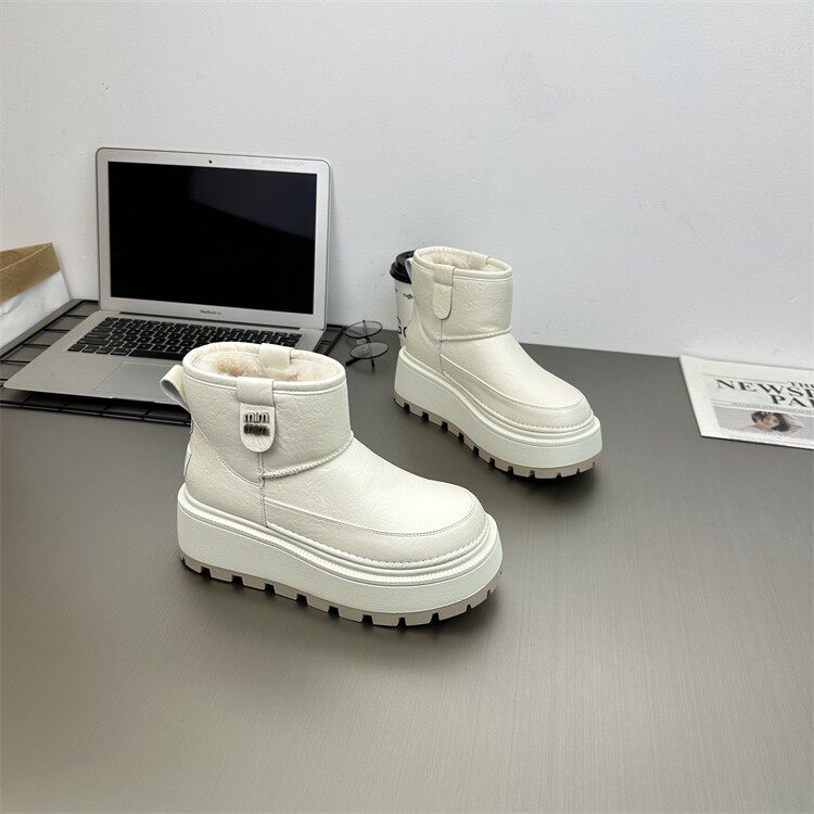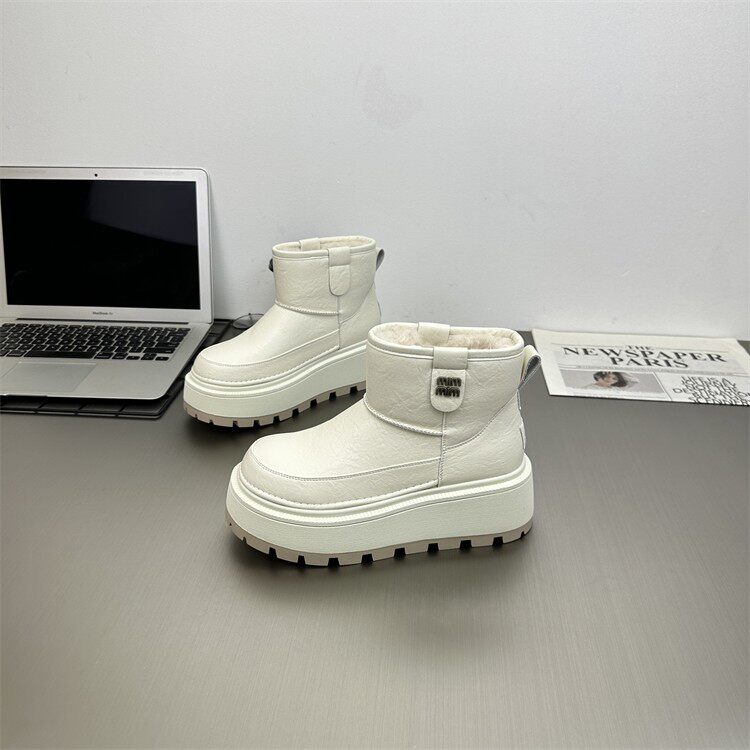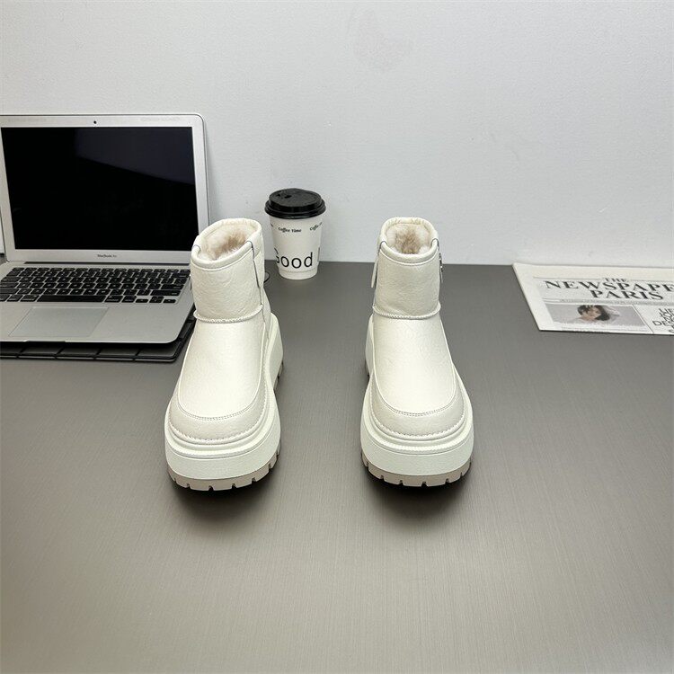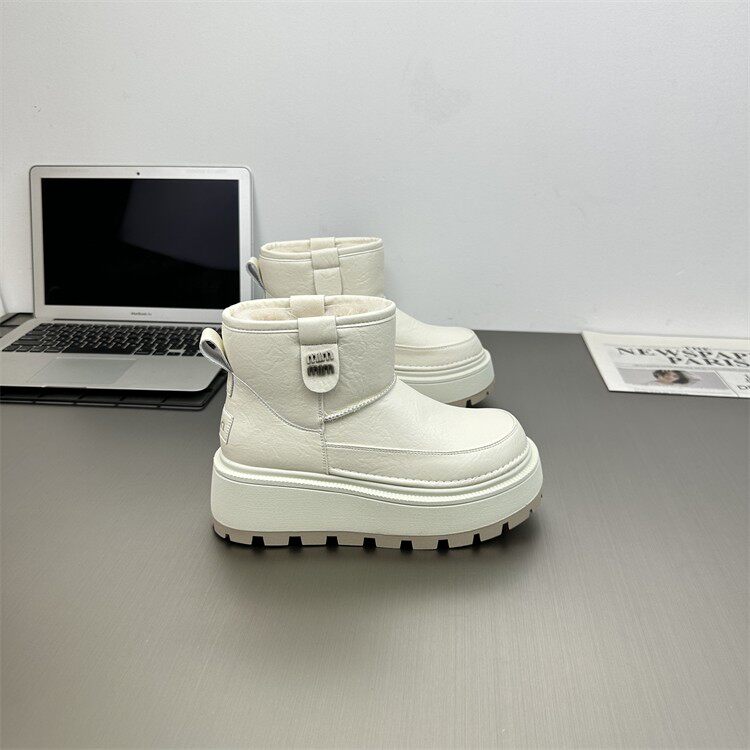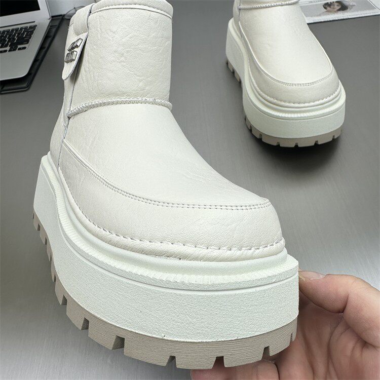 真皮防水防滑雪地靴女2025冬新款小個子6cm厚底時尚加絨保暖棉靴