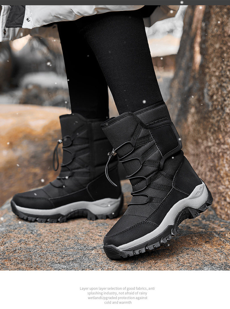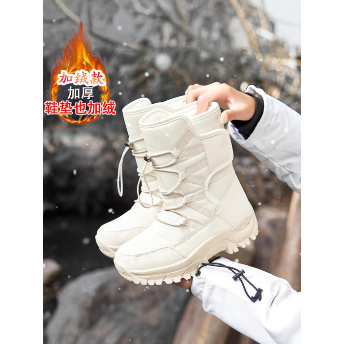 雪地靴女鞋2025新款冬季加絨加厚保暖皮面一體東北厚底高筒大棉鞋