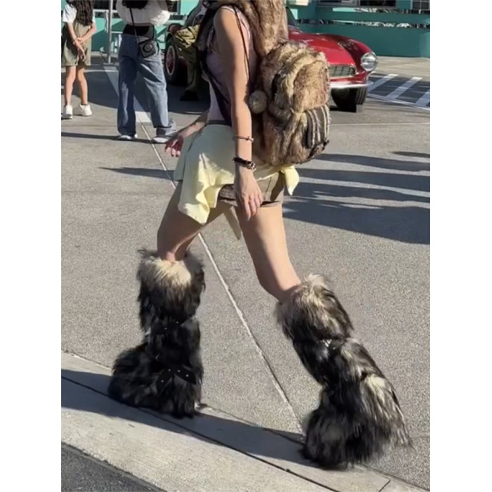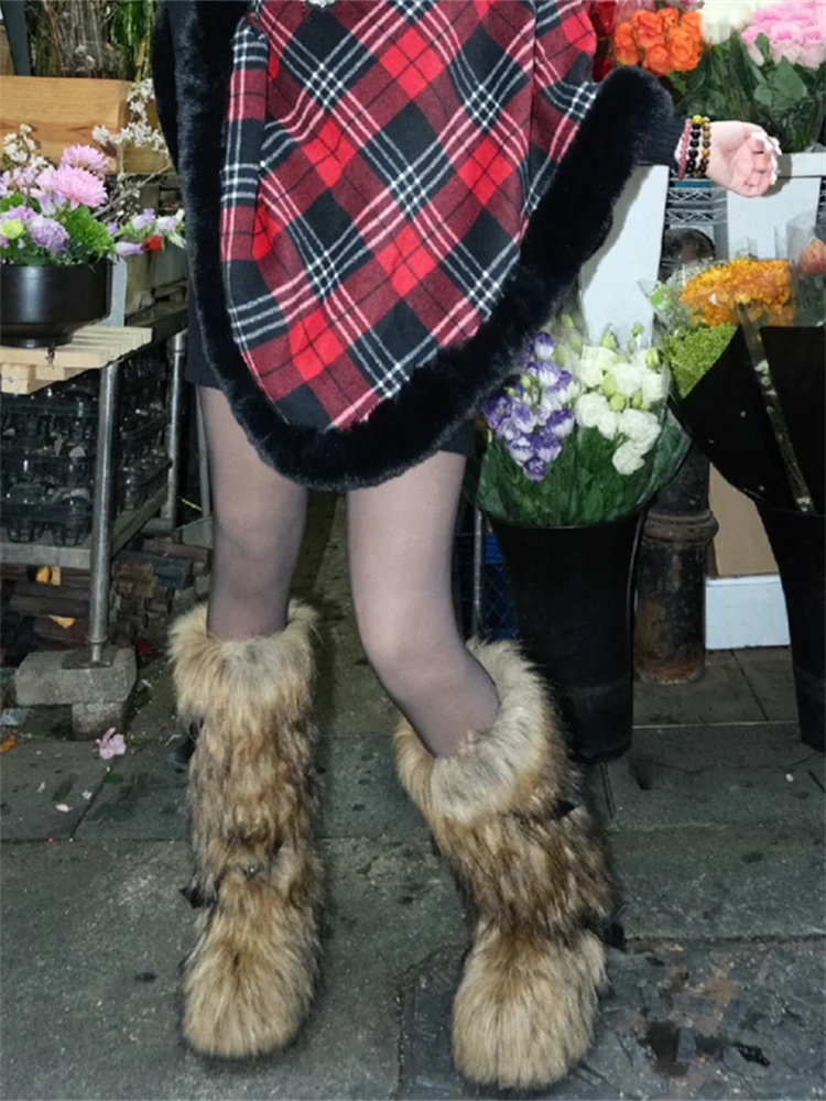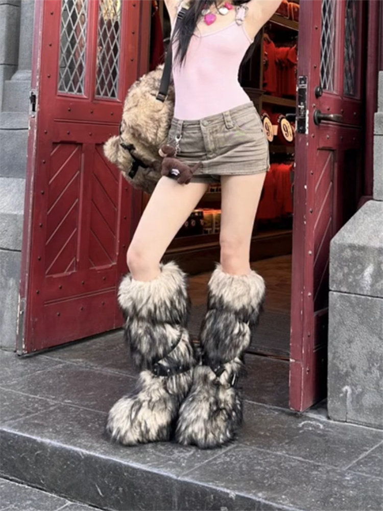 小衆辣妹高筒毛毛靴子女2025年冬季新款亞文化加絨厚底長筒雪地靴