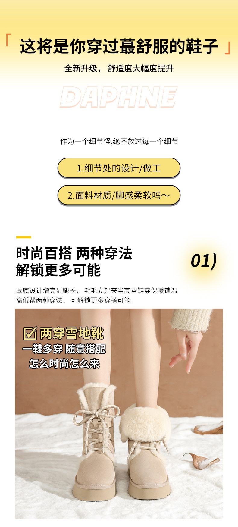 達芙妮雪地靴防水防滑女2026秋冬新款加絨加厚短靴子東北保暖棉鞋