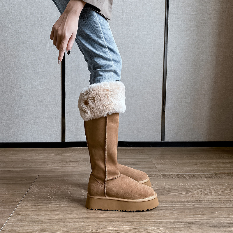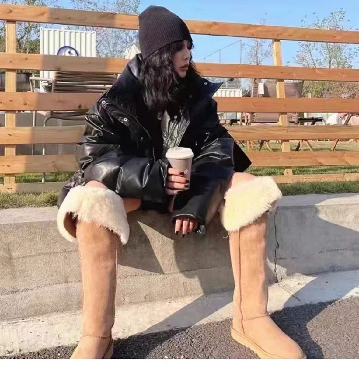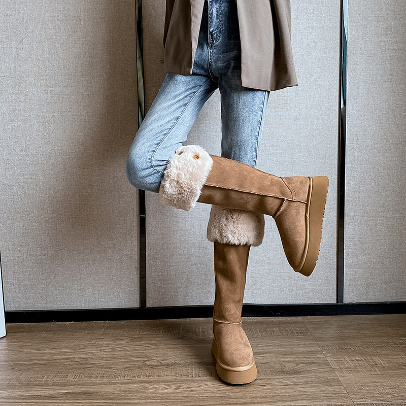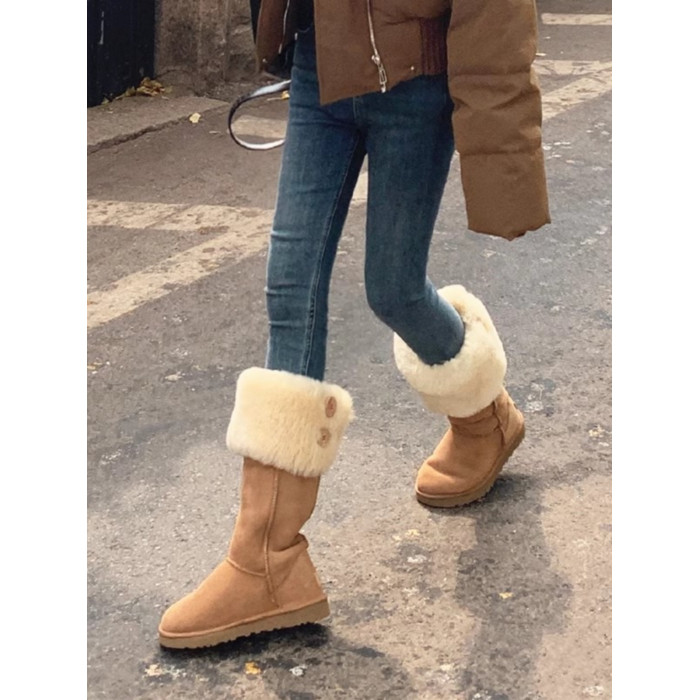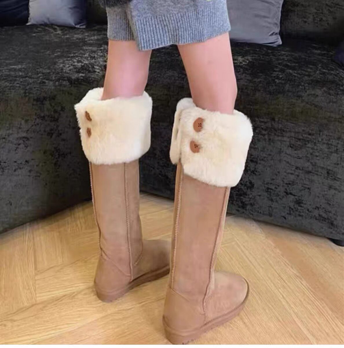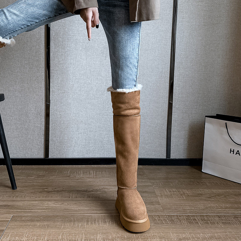 MaxFax長筒雪地靴女2024新款加絨加厚東北棉鞋厚底兩穿過膝長靴冬