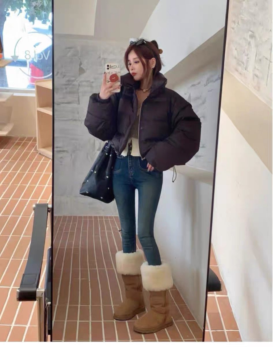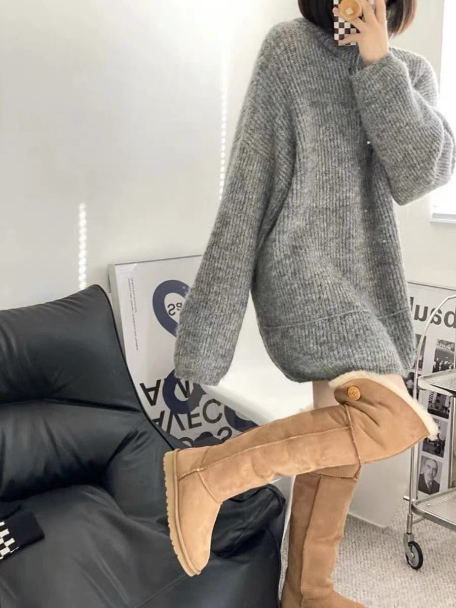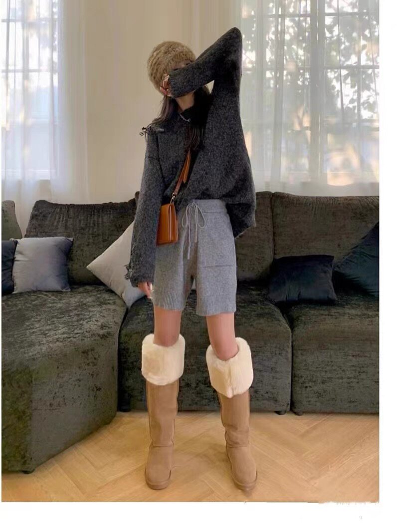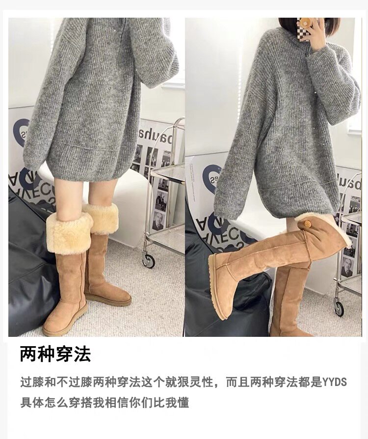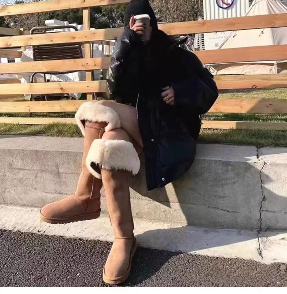 MaxFax長筒雪地靴女2024新款加絨加厚東北棉鞋厚底兩穿過膝長靴冬
