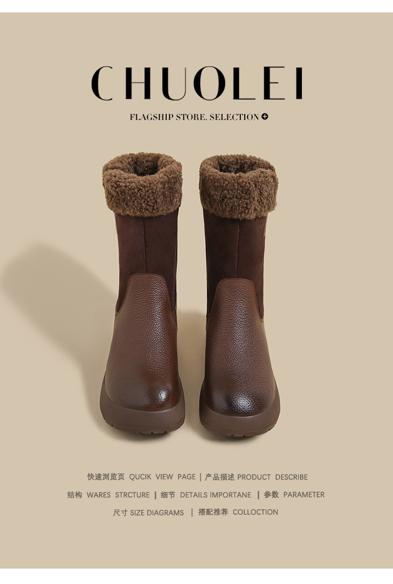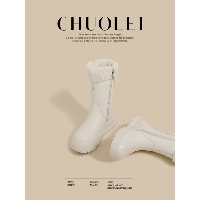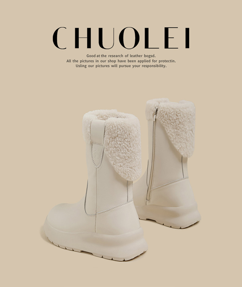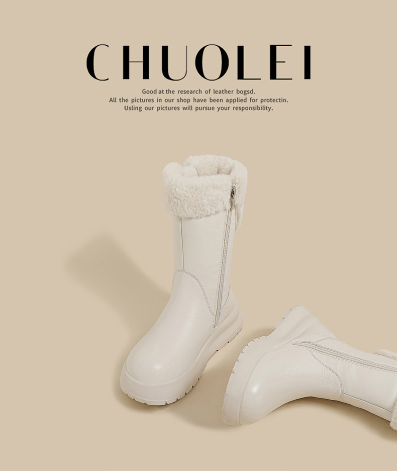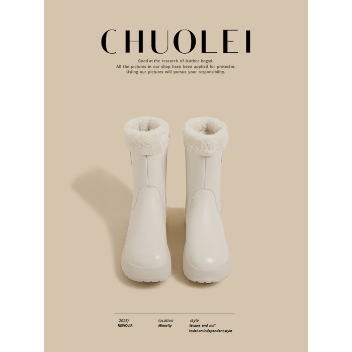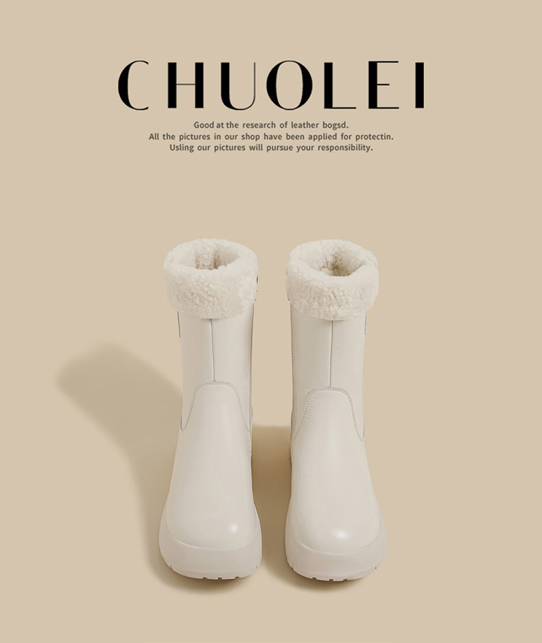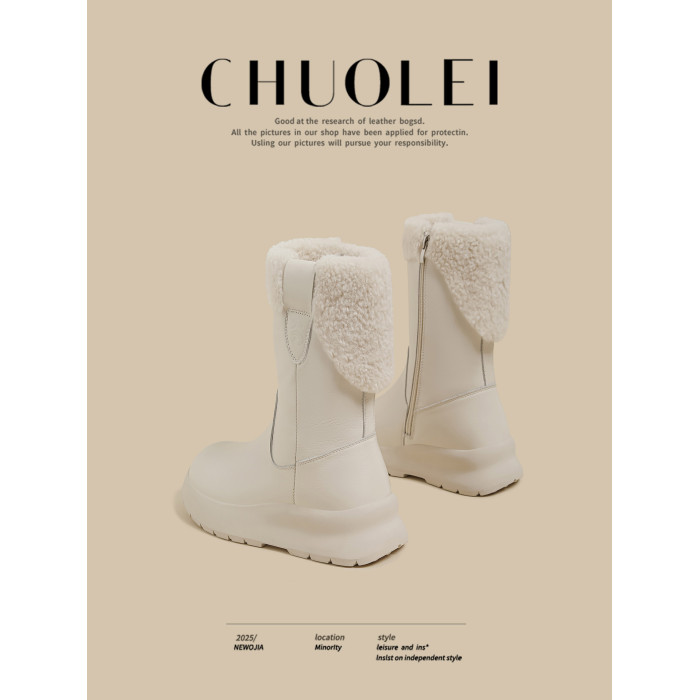 頭層牛皮百搭冬季新款厚底加絨短筒棉鞋女白色防滑保暖時尚雪地靴