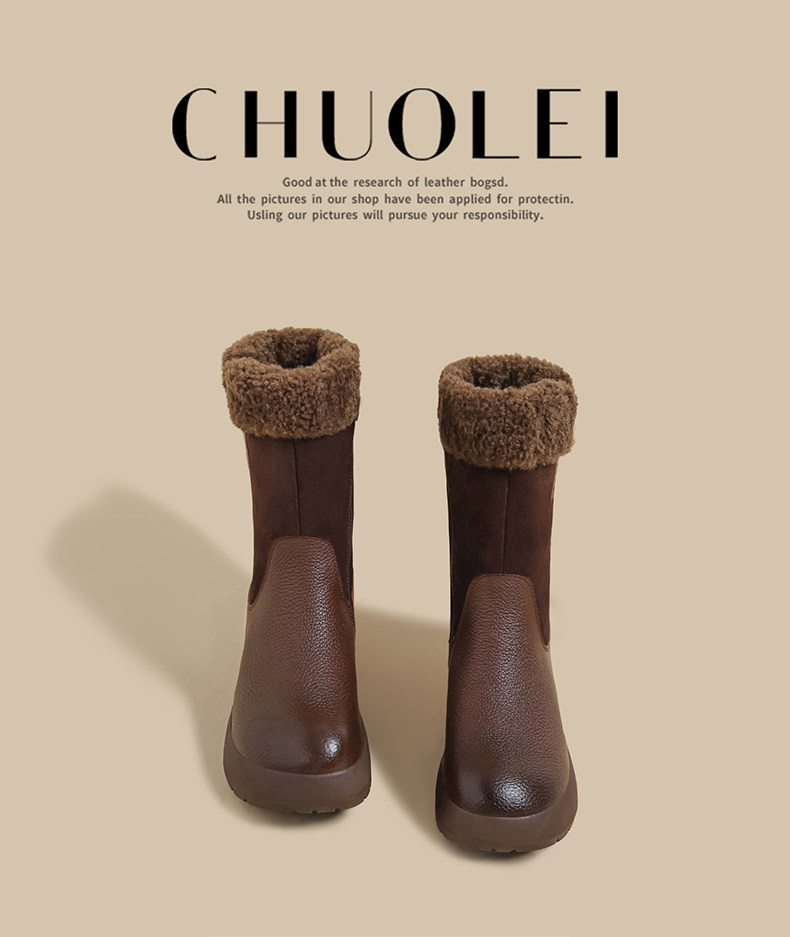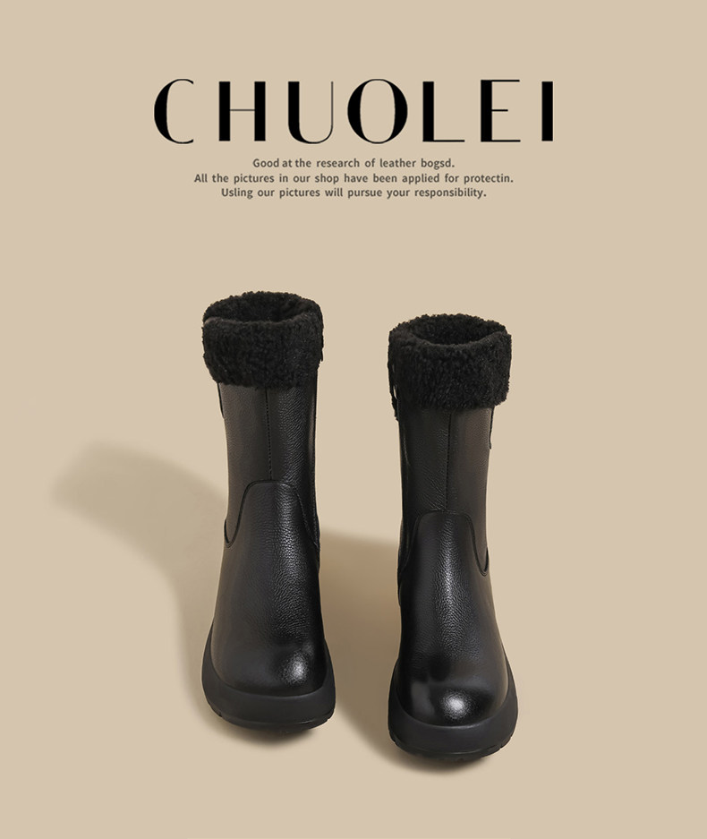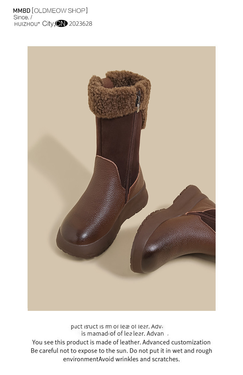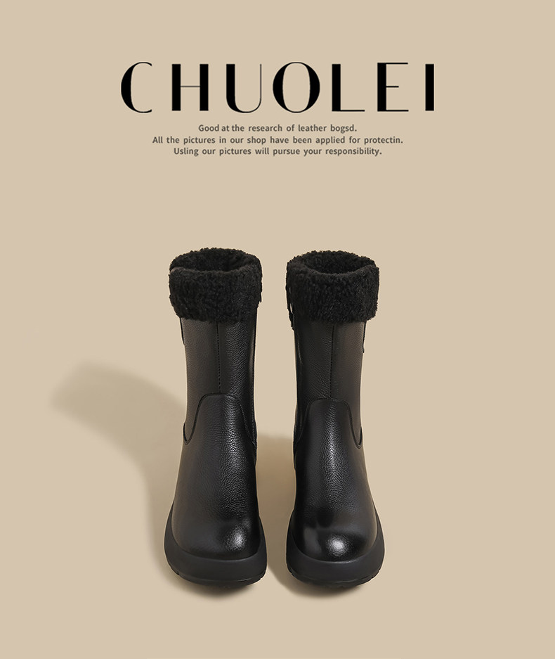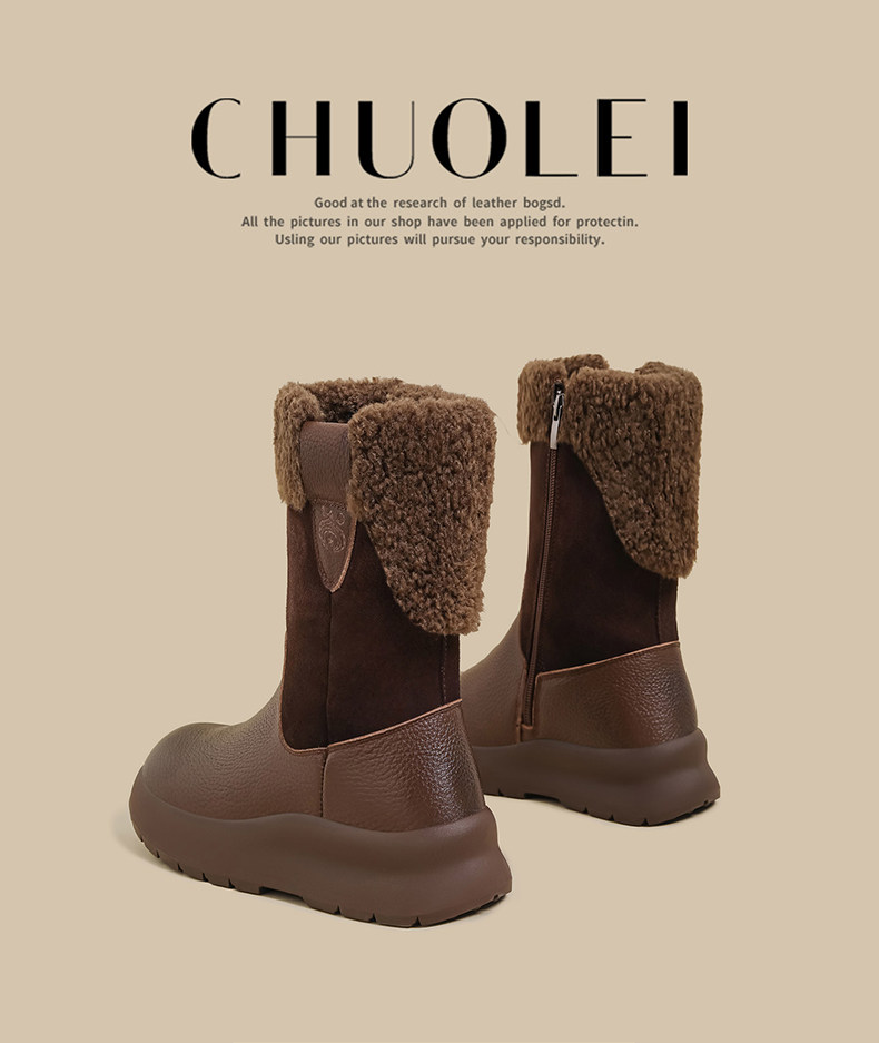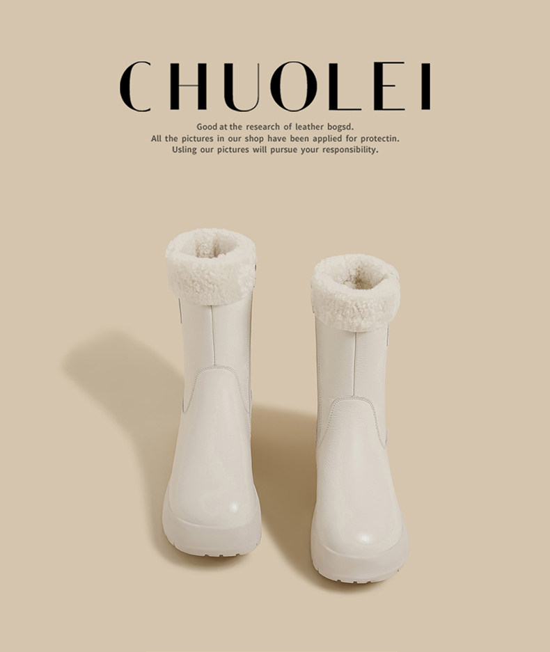 頭層牛皮百搭冬季新款厚底加絨短筒棉鞋女白色防滑保暖時尚雪地靴