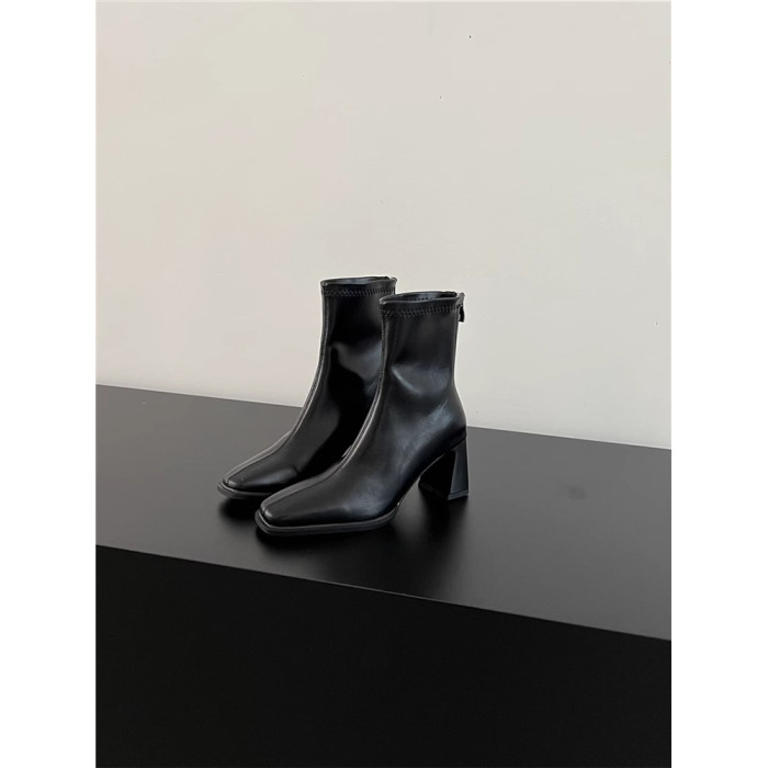 高跟鞋靴子粗跟韓系短靴女2026新款春秋季法式小踝靴馬丁靴瘦瘦靴