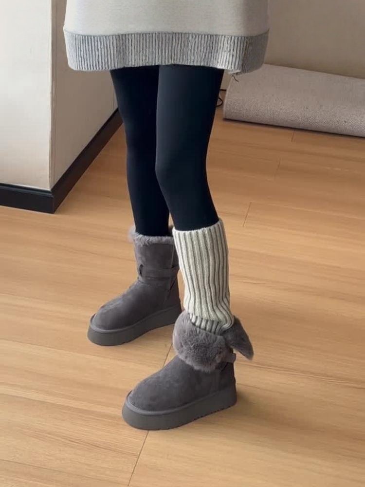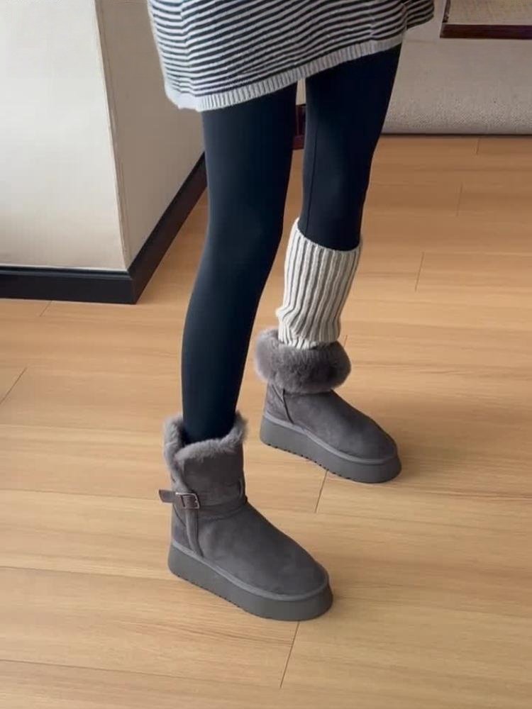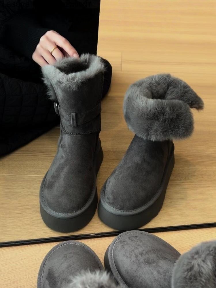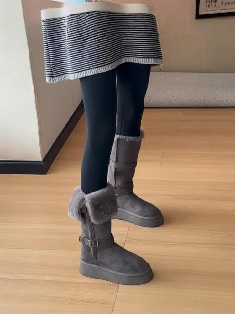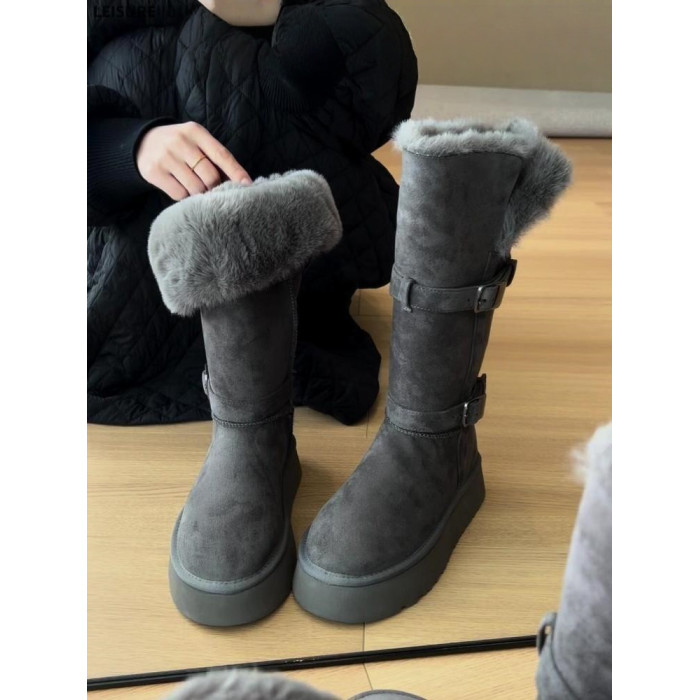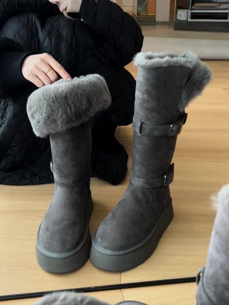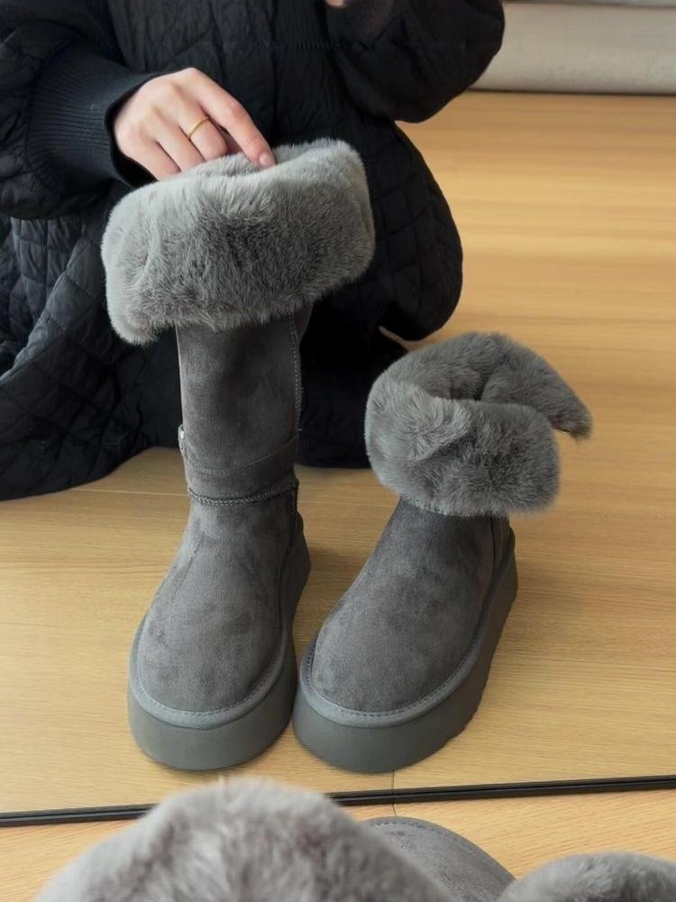 厚底灰色長筒雪地靴女2025冬季新款增高加絨加厚高筒東北大棉鞋子