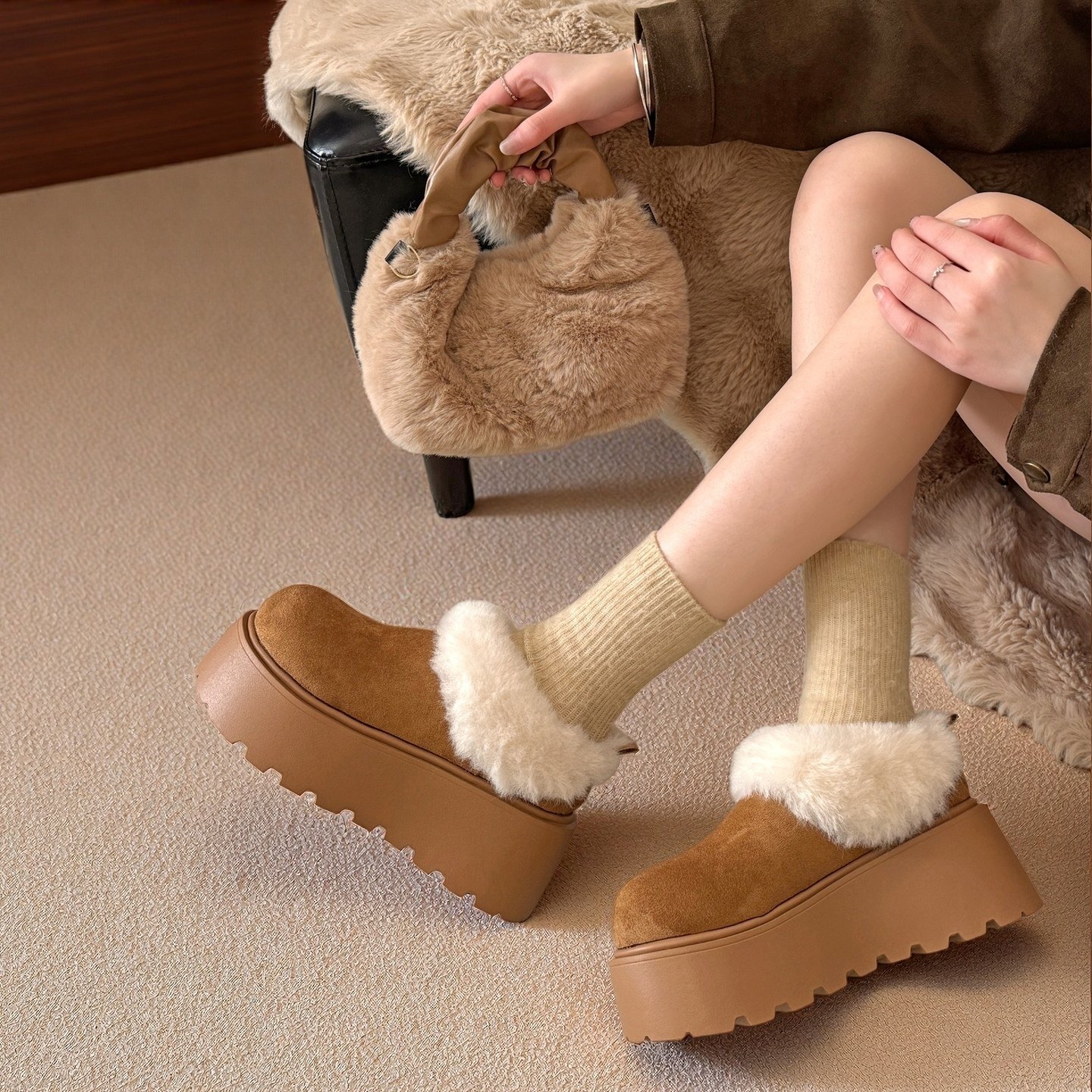 靴筒內裡材質 人造短毛絨