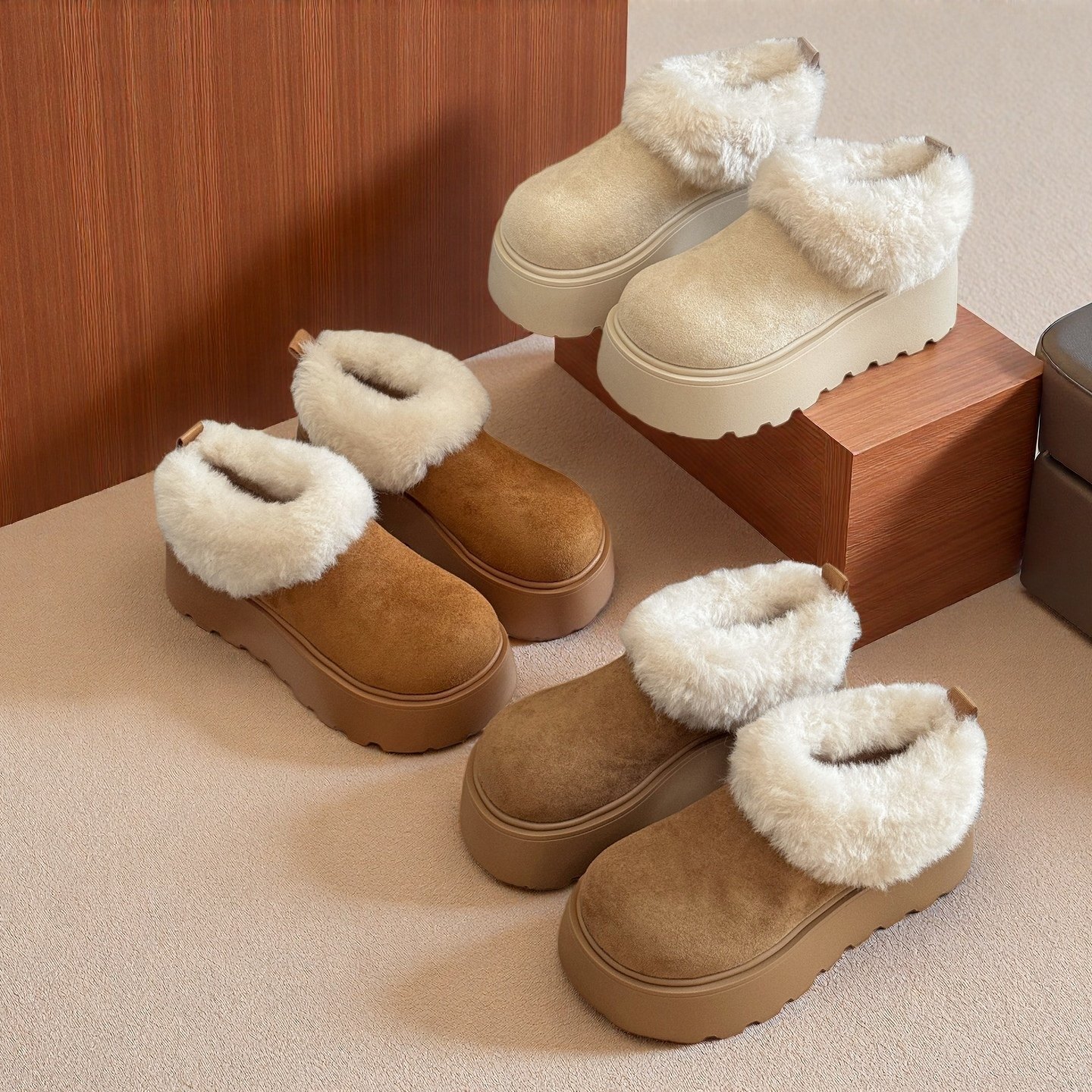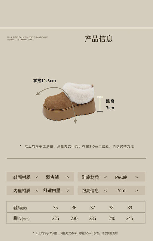 厚底增高加絨保暖勃肯鞋低幫雪地靴女鞋子2026新款冬季毛毛鞋棉鞋