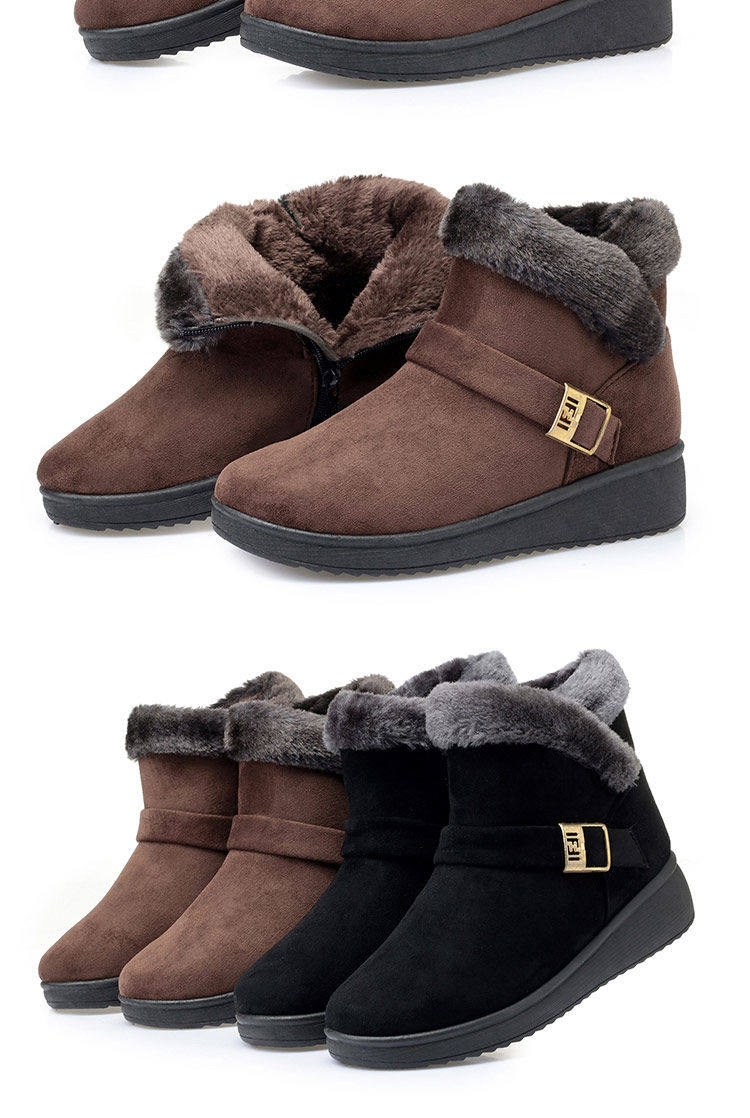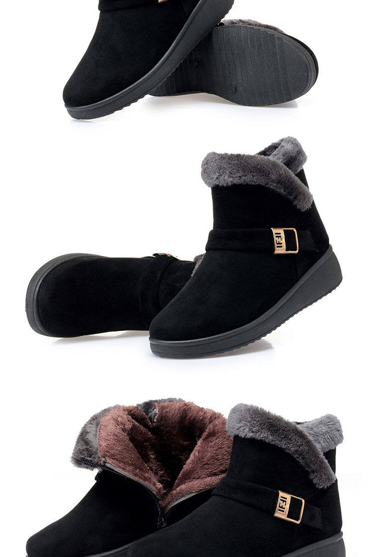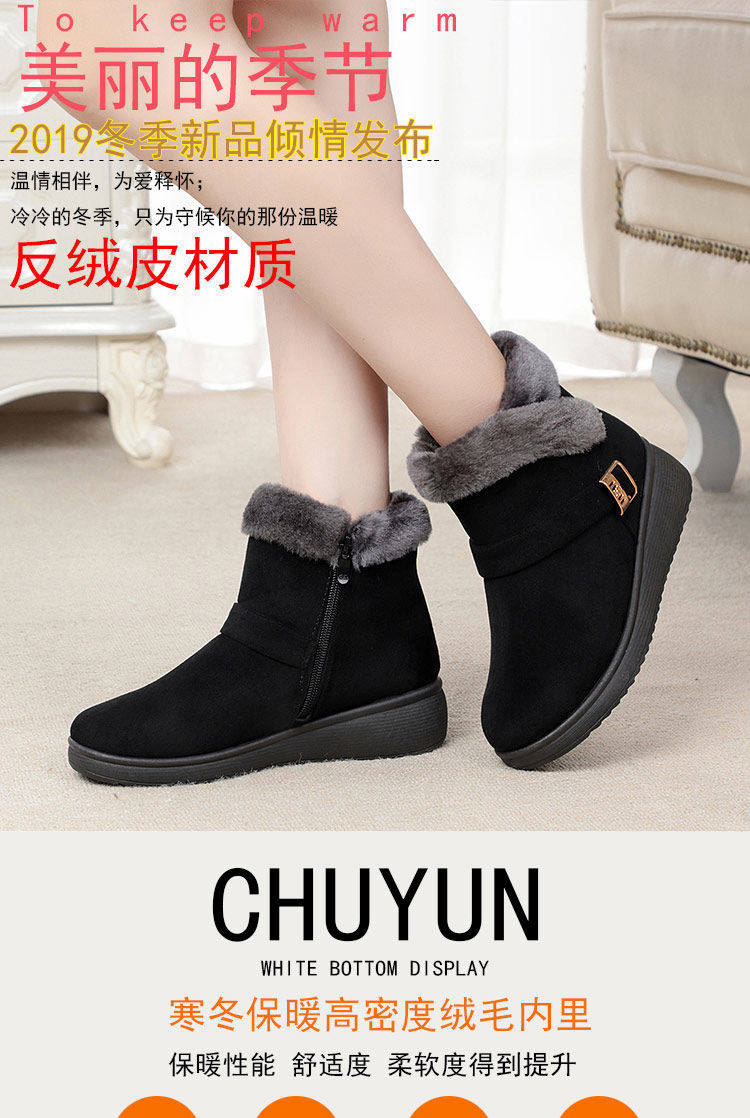 靴一體媽媽加絨女雪地棉鞋新款鞋冬季短靴老人防滑皮毛中老年保暖