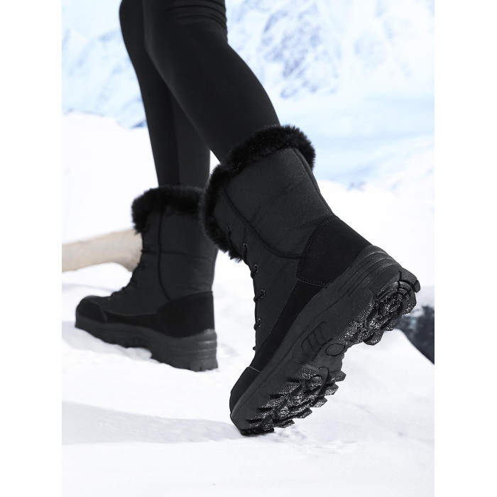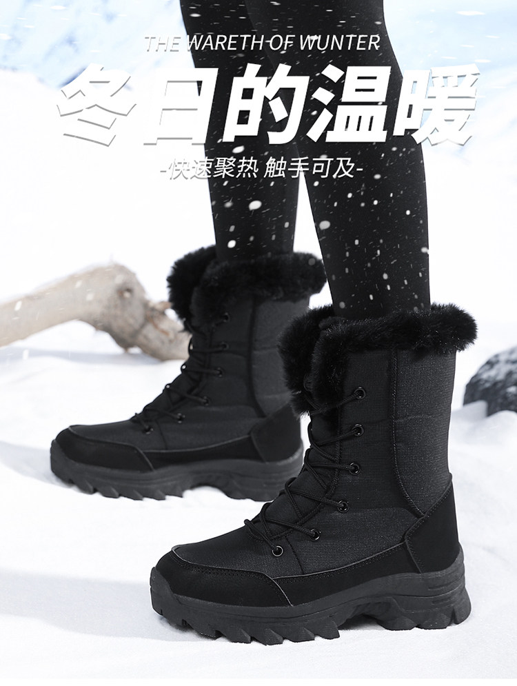 黑色雪地靴女冬季加絨加厚保暖棉鞋防水防滑東北戶外滑雪大棉靴子