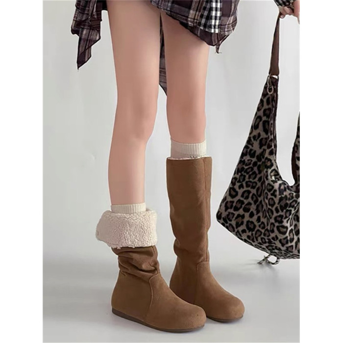 小個子內增高真皮長筒靴女2025冬季新款加絨兩穿顯瘦堆堆雪地靴