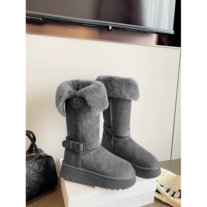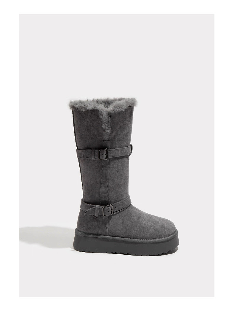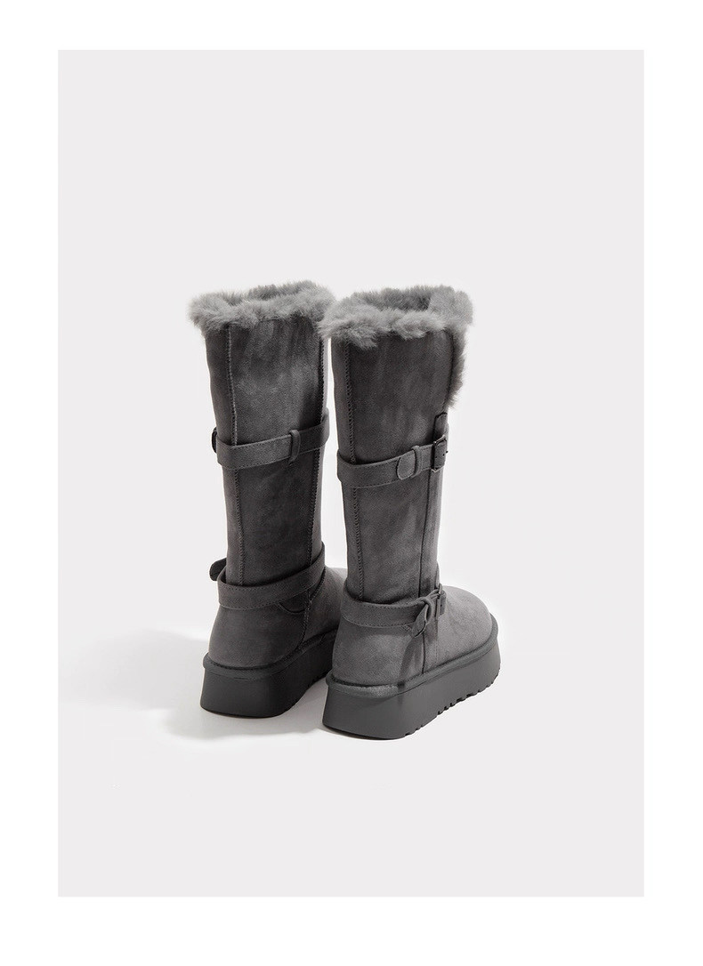 保暖灰色雪地靴女款2026新款冬季爆款加絨加厚東北長筒棉鞋女厚底