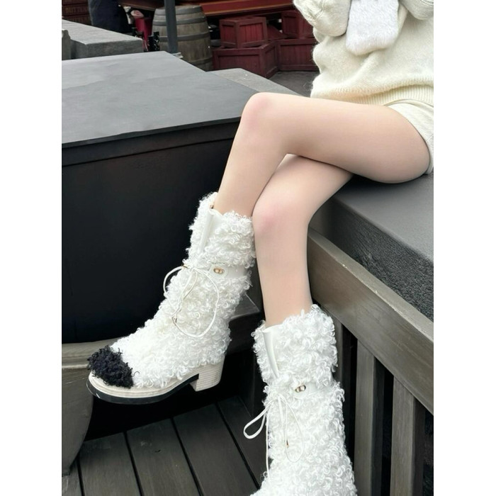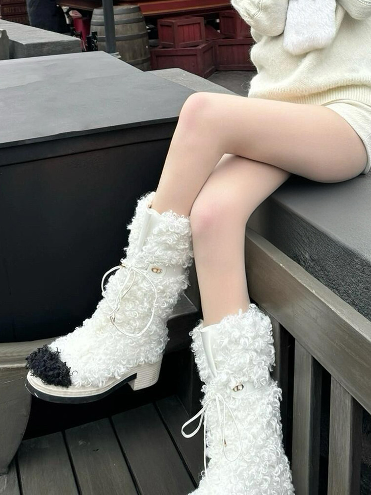 花小姐小香風厚底雪地靴女2026冬季新款氣質百搭加絨加厚毛毛靴子