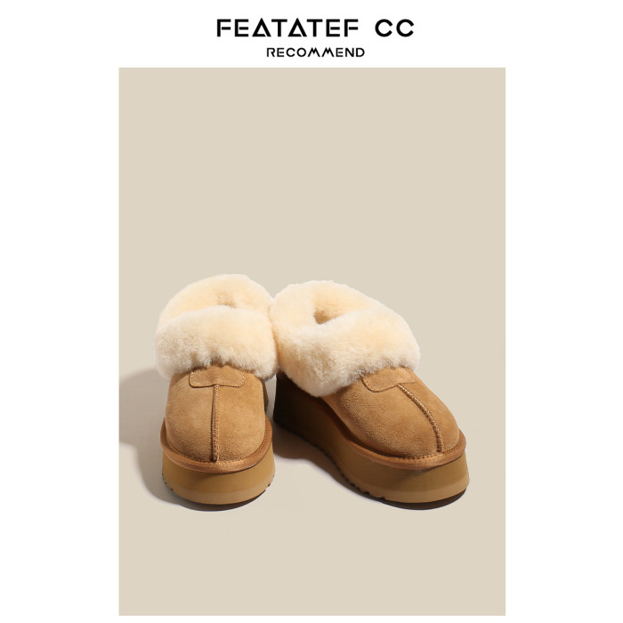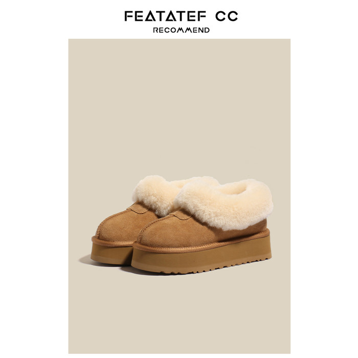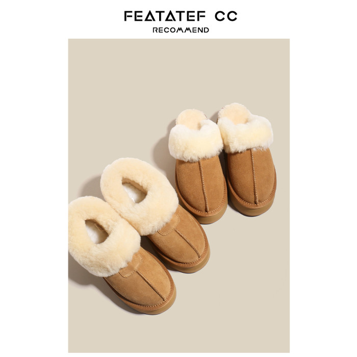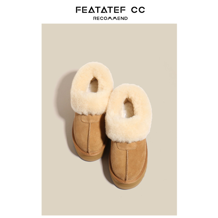 【升級版】輕真皮厚底雪地靴女冬新款皮毛一體加絨毛毛半拖鞋棉鞋