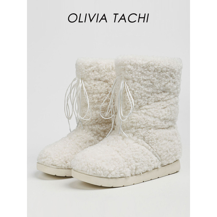 葉舒華同款白色雪地靴女款春夏棉靴厚底毛毛靴東北毛毛鞋保暖棉鞋