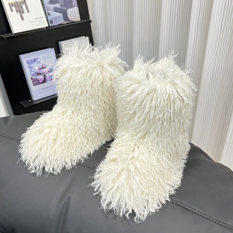 毛毛長筒靴gal系可愛仿貉子狐狸25cm高筒澁穀辣妹y2k歐美雪地靴