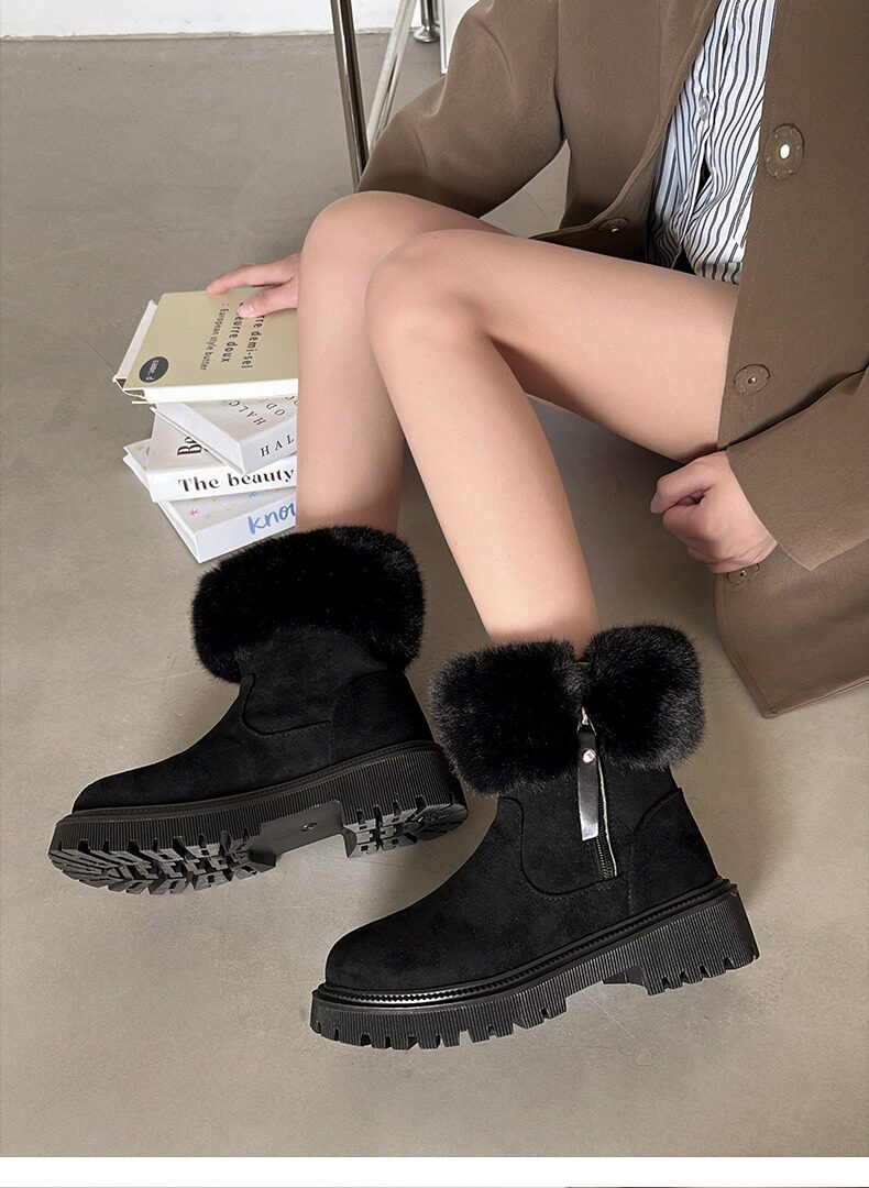 零下40度加絨漠河雪地靴女2026新款厚底東北棉鞋大碼馬丁靴41一43