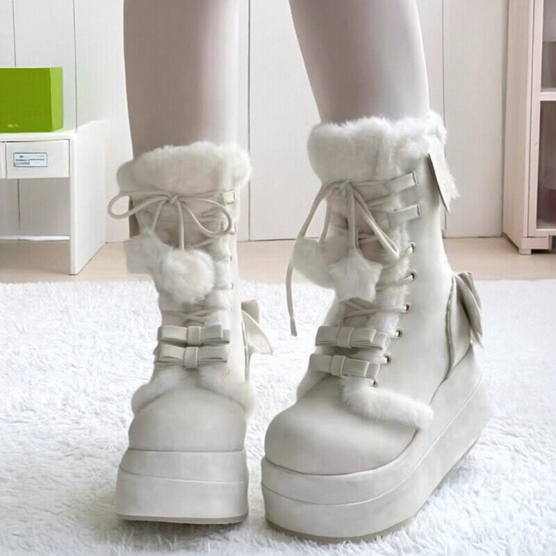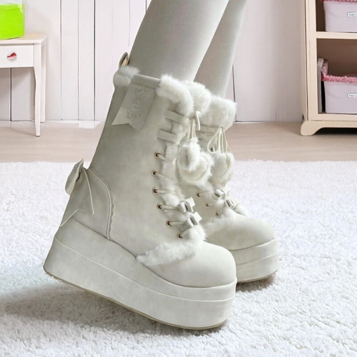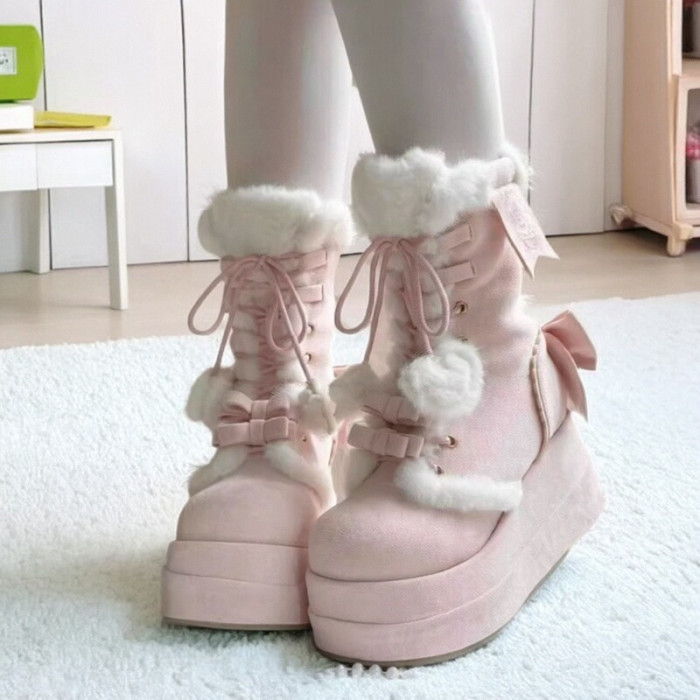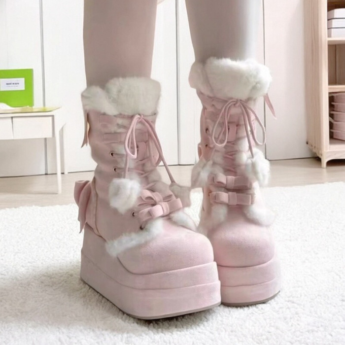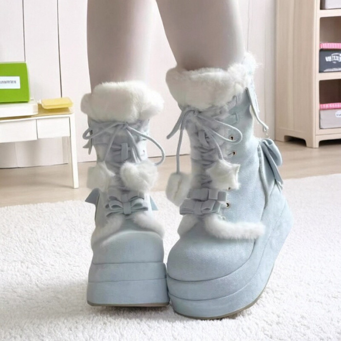 冬季新款加絨保暖甜美Lolita長靴2025可愛松糕底軟妹學生雪地靴