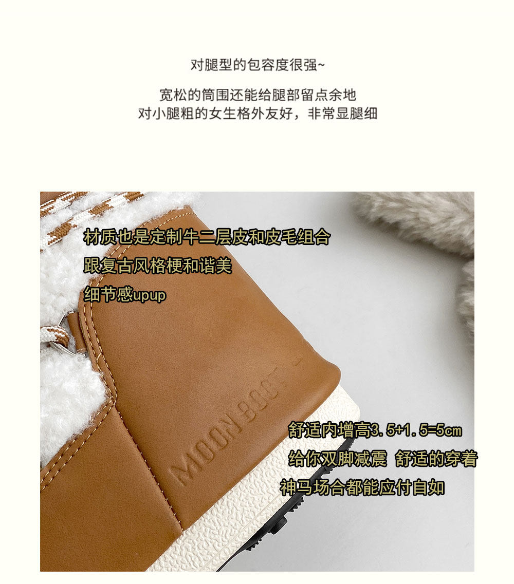 真皮內增高雪地靴女厚底月亮靴冬季新款防滑毛毛靴加絨加厚中筒靴