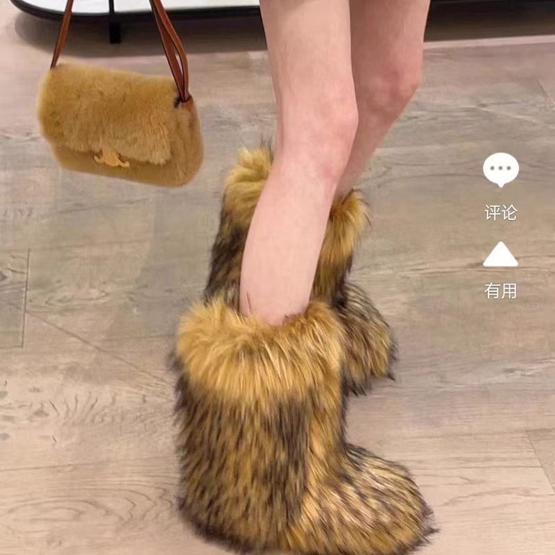 毛毛靴子2025新款冬女毛絨外穿大碼雪地靴毛茸茸短靴鞋子