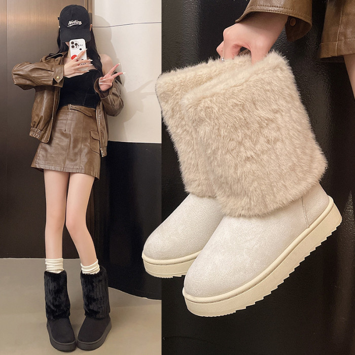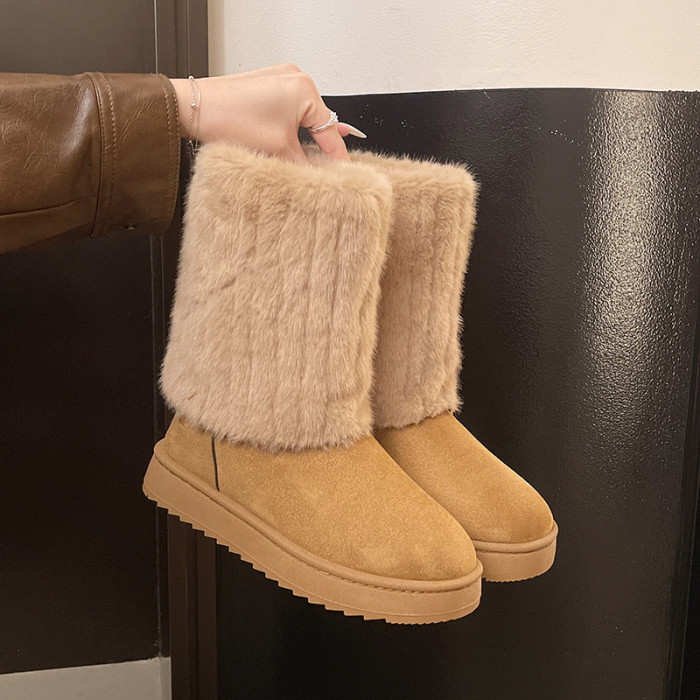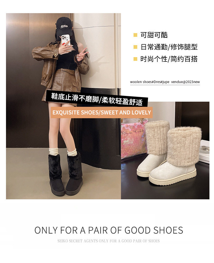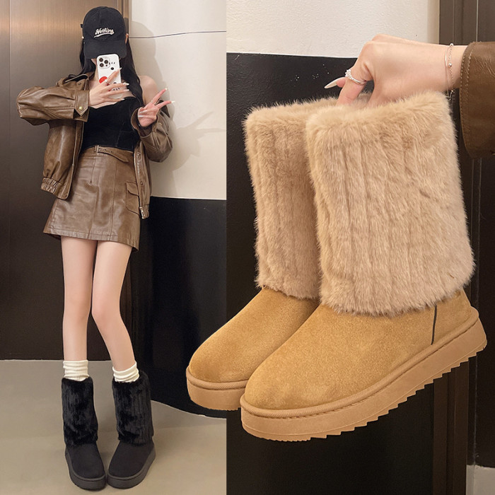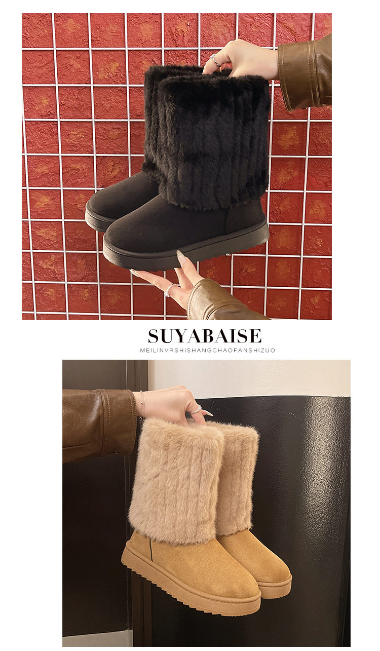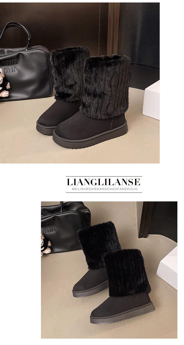 毛毛雪地靴女款冬季2026新款加絨加厚保暖網紅冰島厚底東北大棉鞋