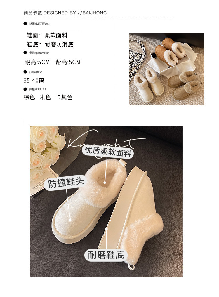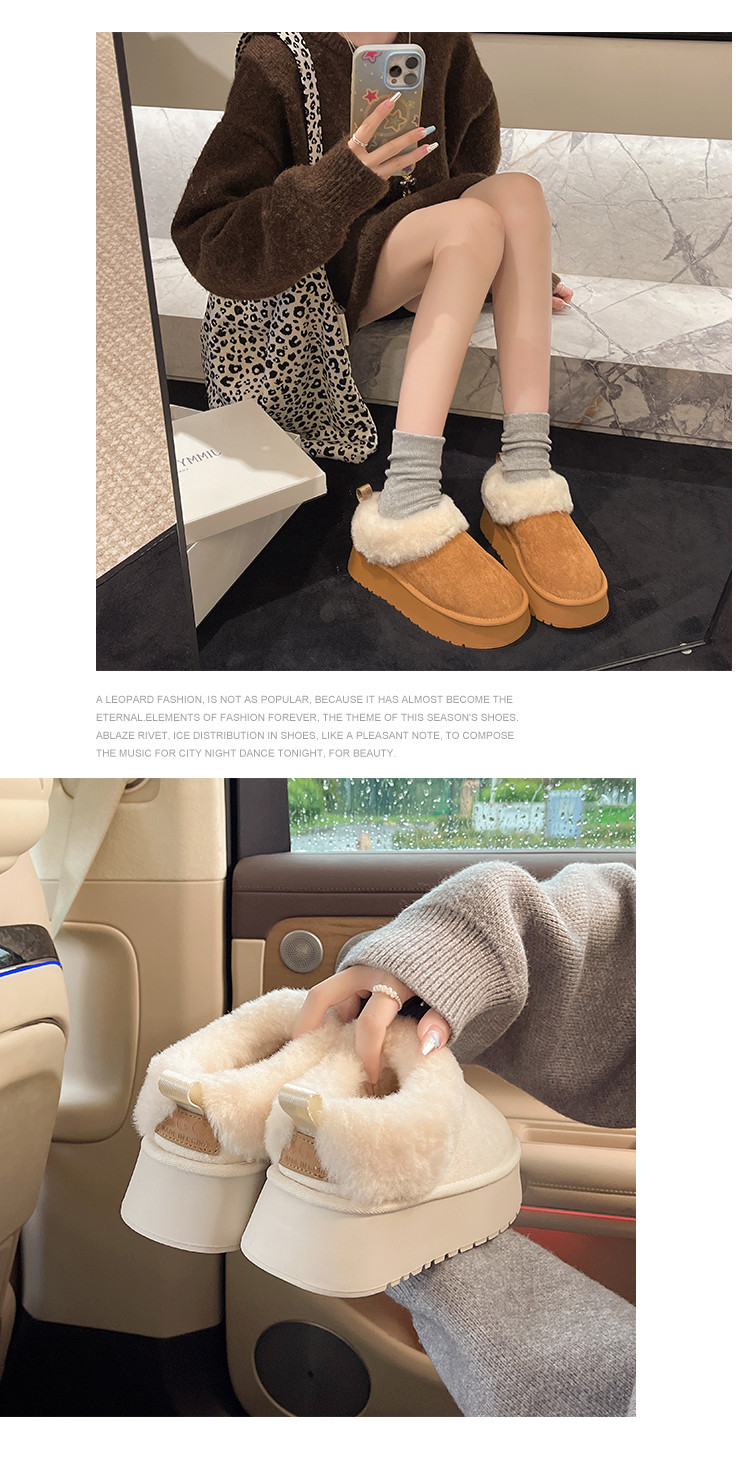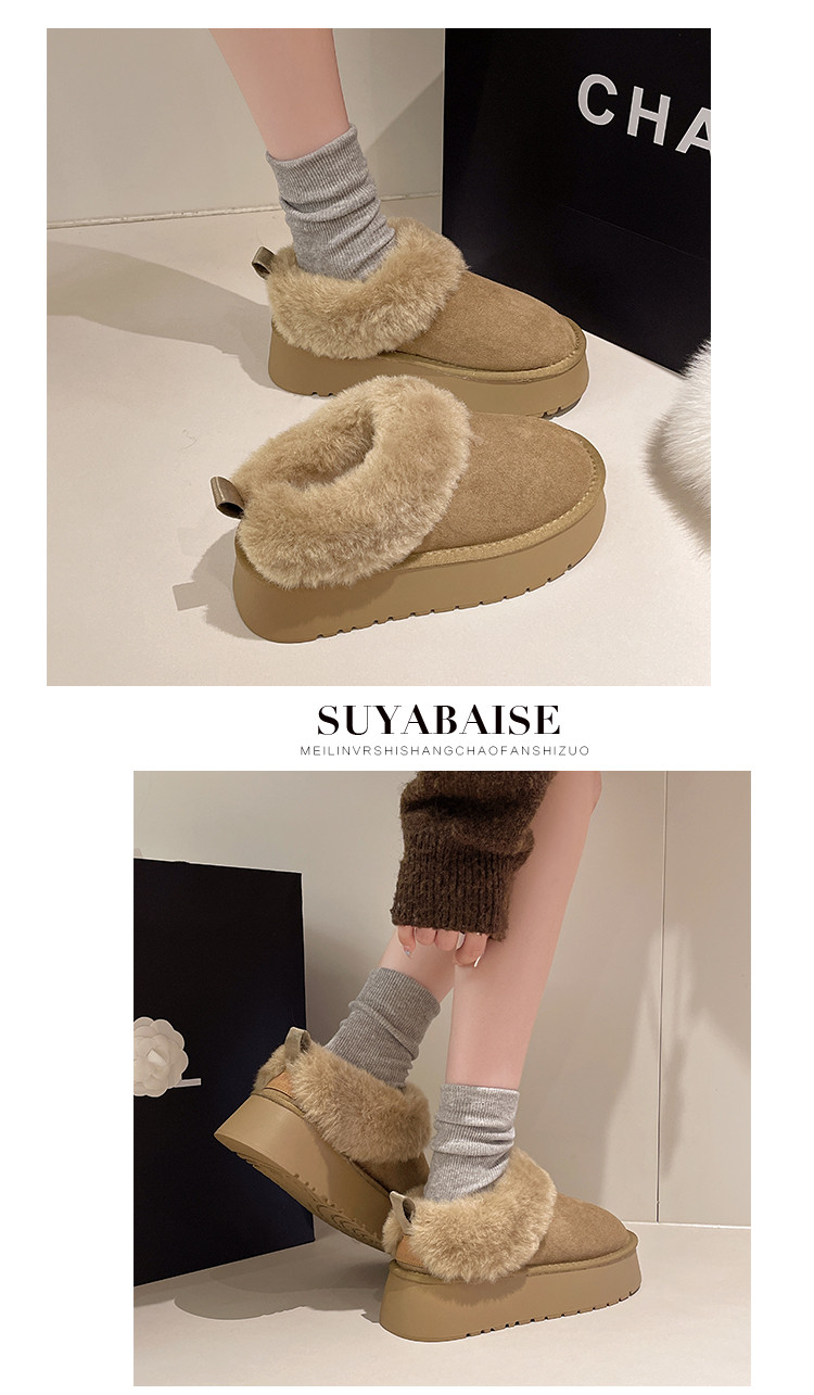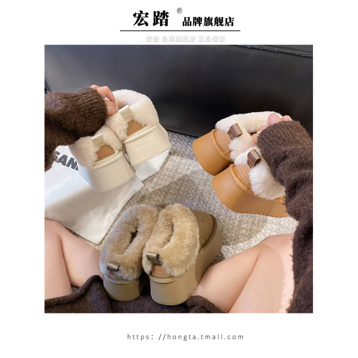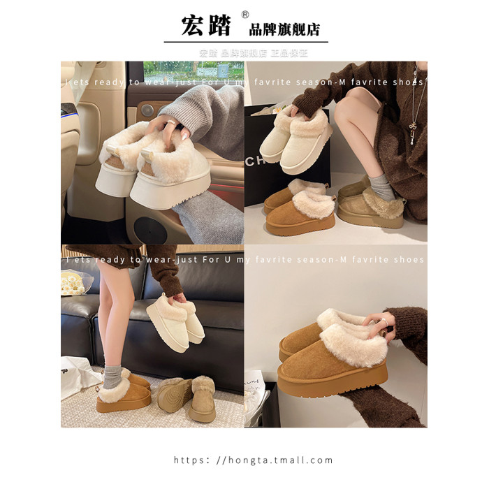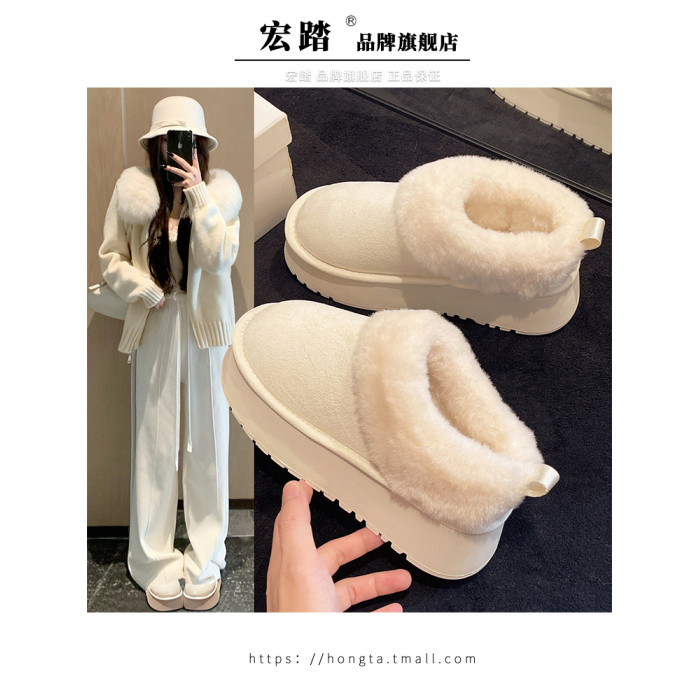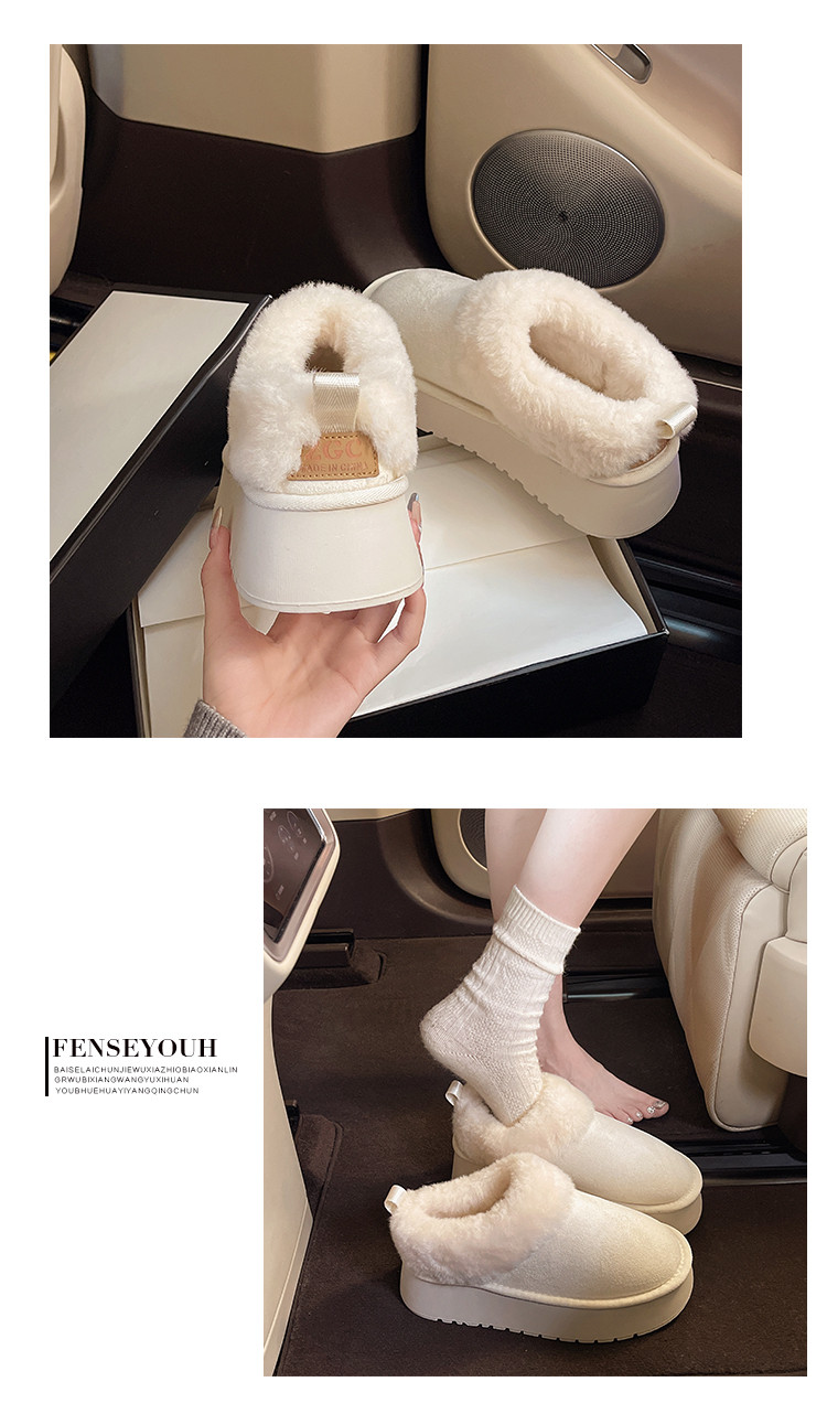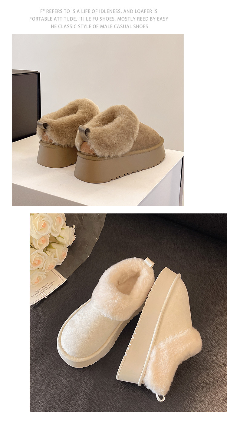 雪地靴女冬季白色厚底加絨保暖增高毛毛鞋2026新款一腳蹬懶人棉鞋
