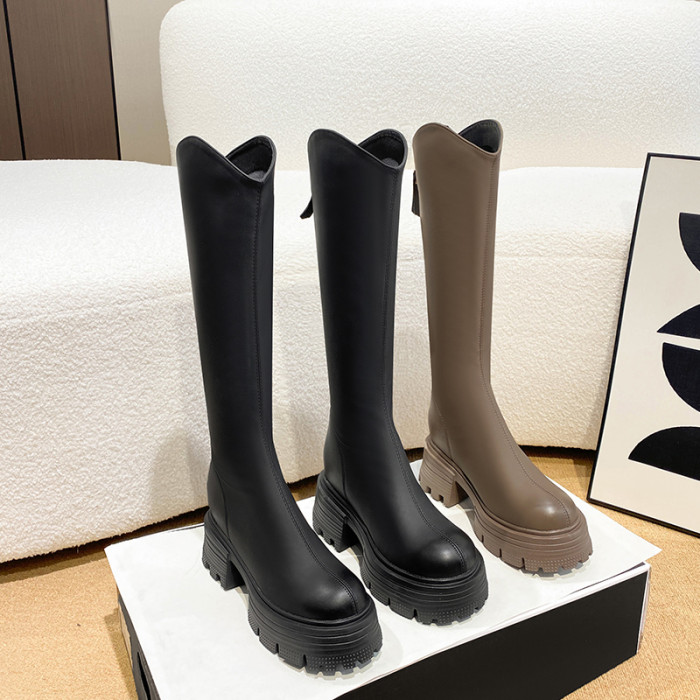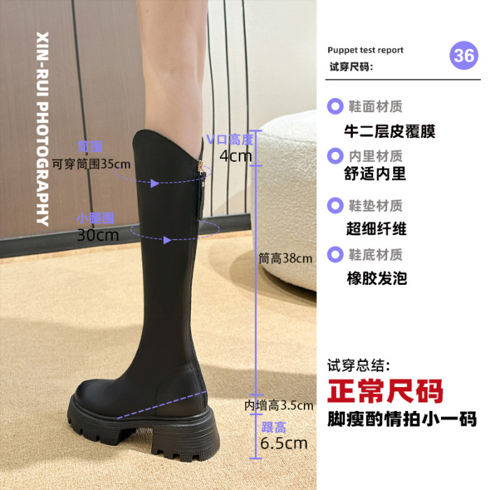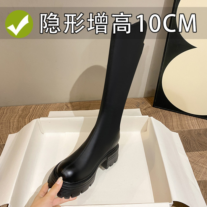 內增高長筒靴女秋冬新款小個子v口不過膝長靴顯瘦高跟厚底騎士靴