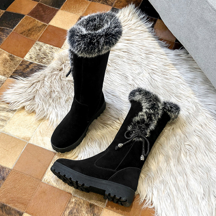 品牌百搭雪地靴女2025新款冬靴子真皮保暖棉鞋加絨厚底女靴長筒靴