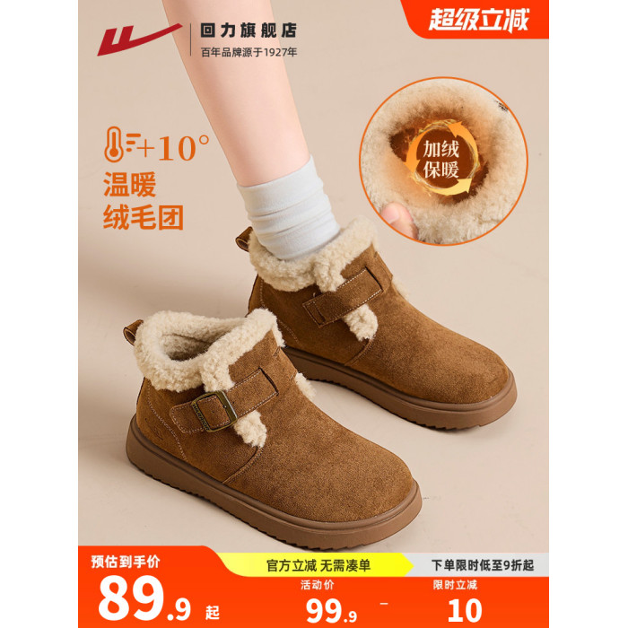 廻力雪地靴女美拉德加絨加厚勃肯鞋2025冬季新款厚底顯高時尚女鞋