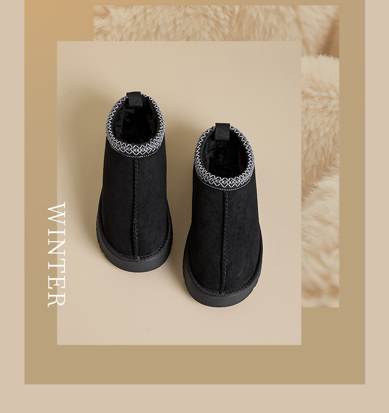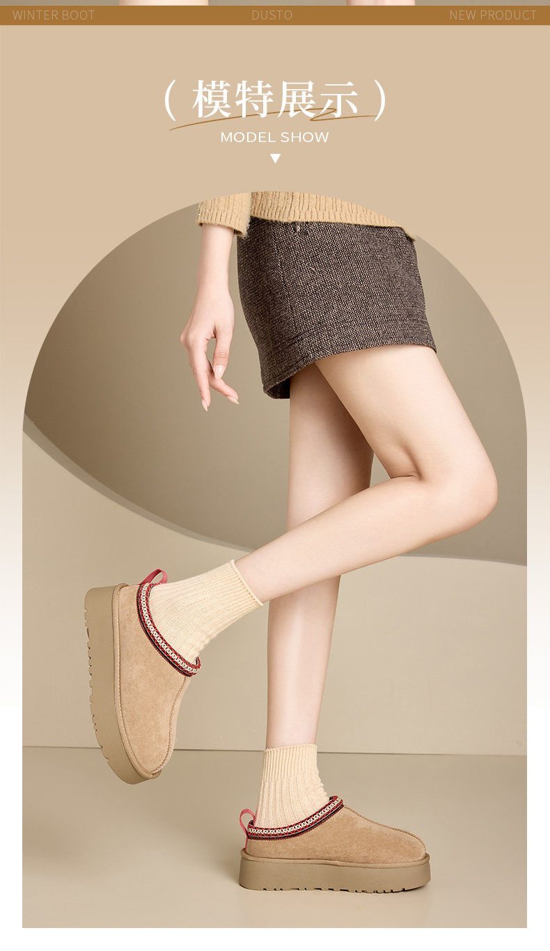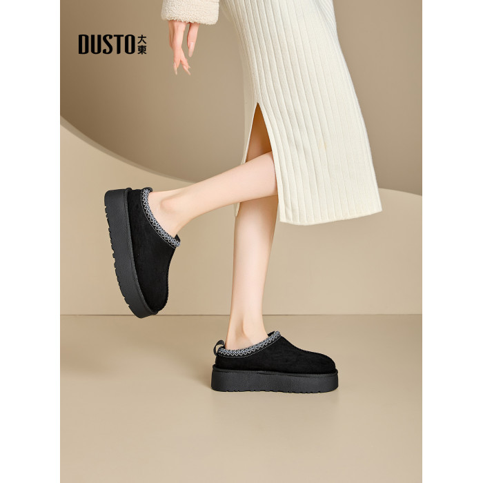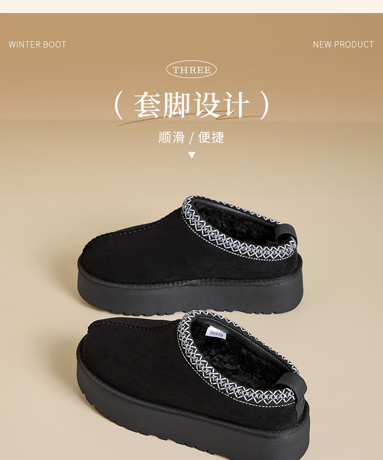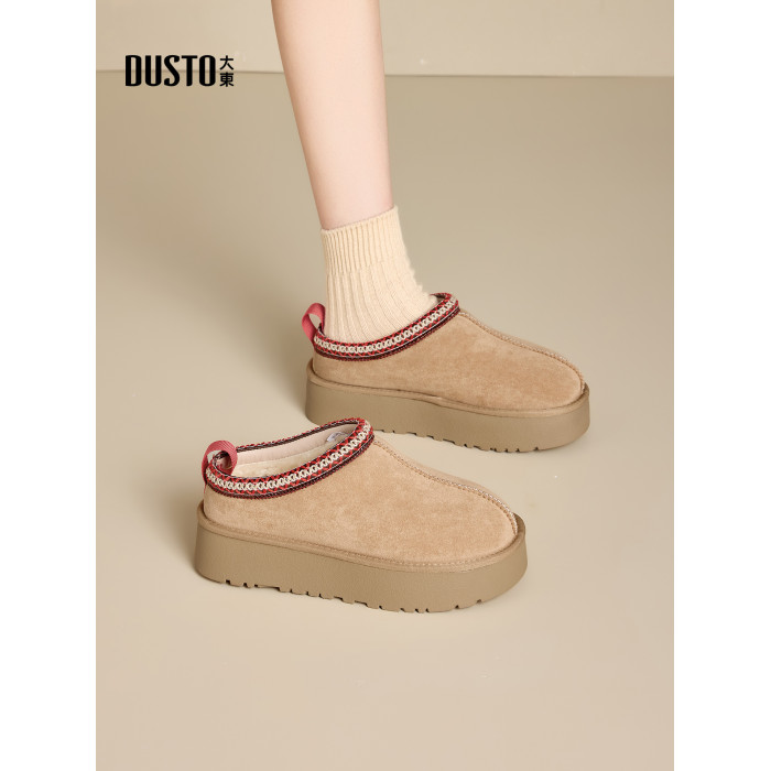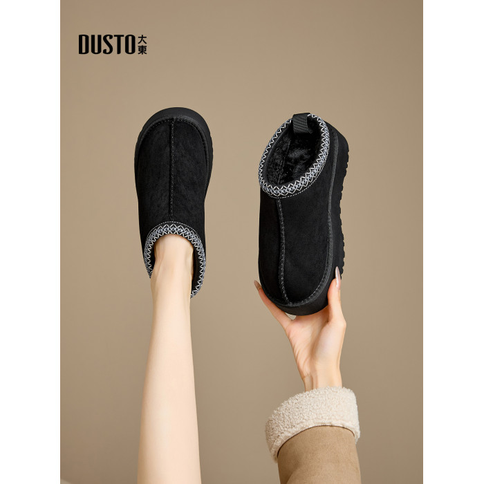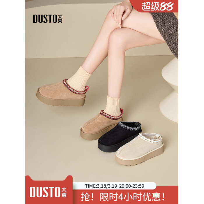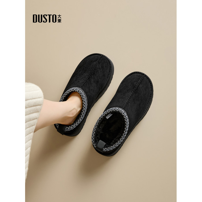 大東雪地靴女鞋2025冬季新款休閒風中跟平底套腳圓頭短靴D0217H