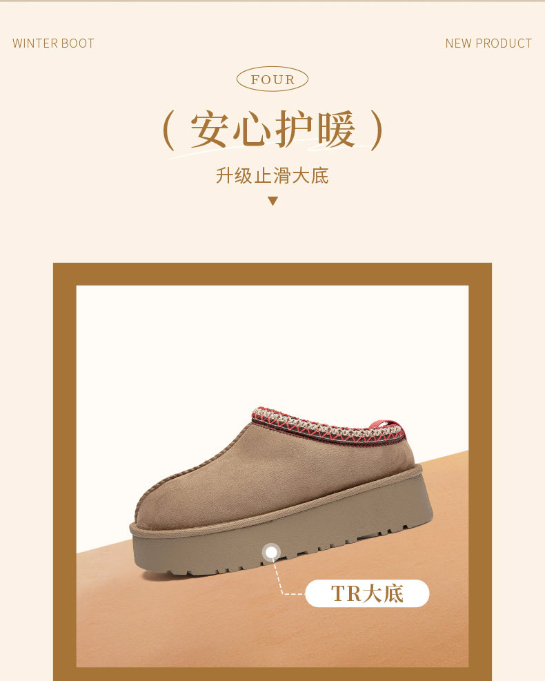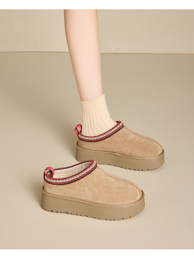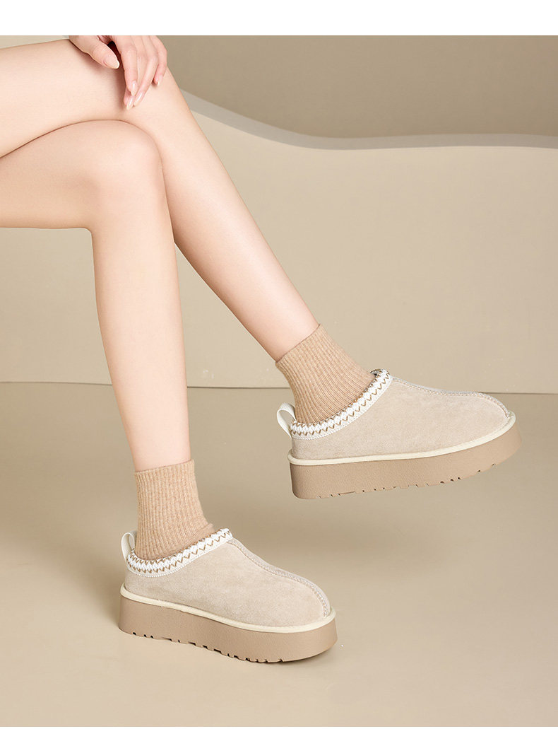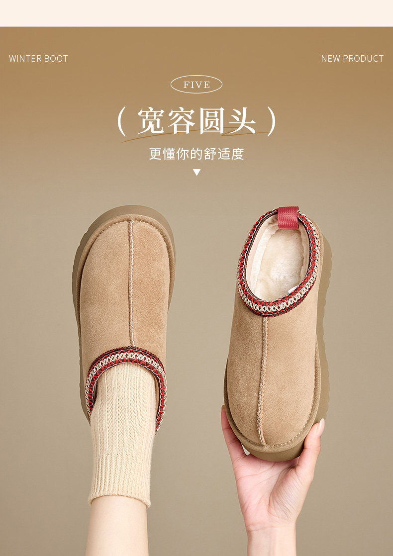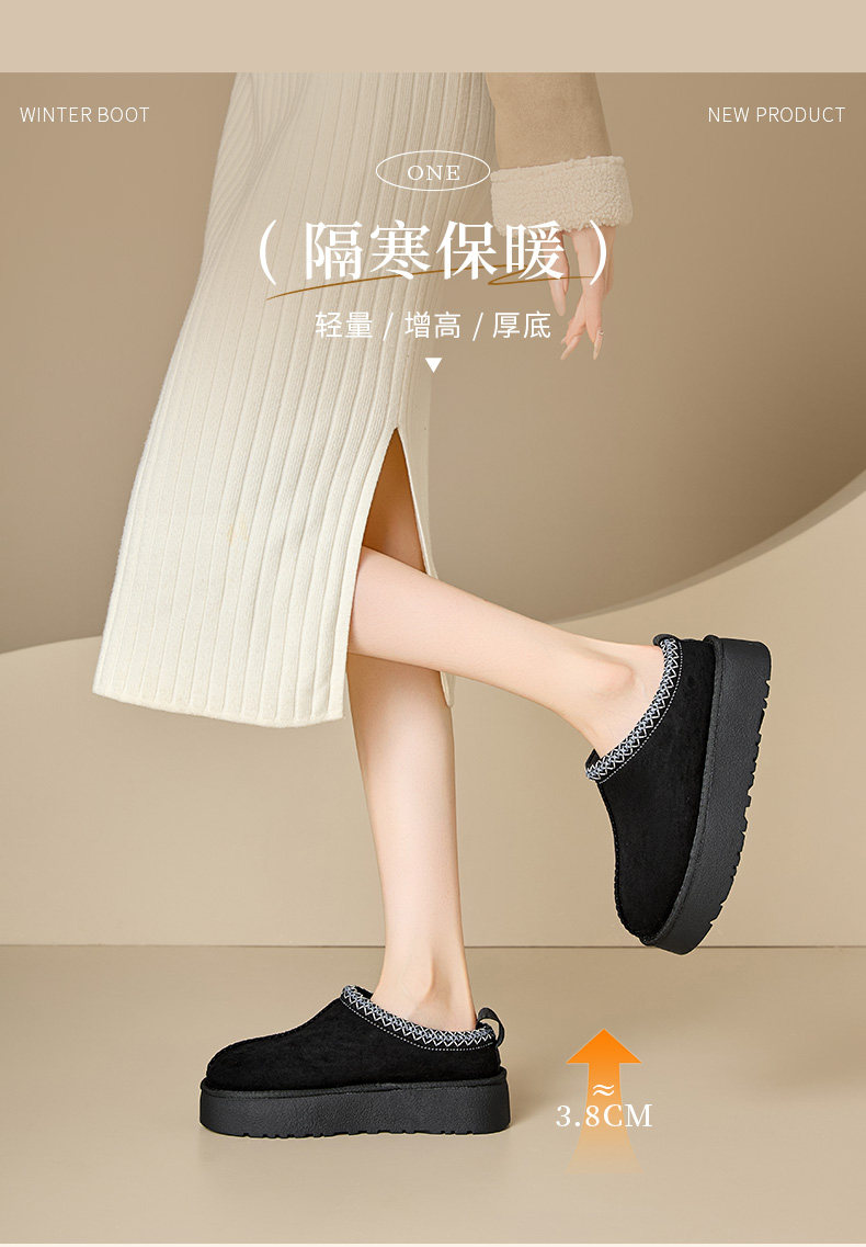 大東雪地靴女鞋2025冬季新款休閒風中跟平底套腳圓頭短靴D0217H