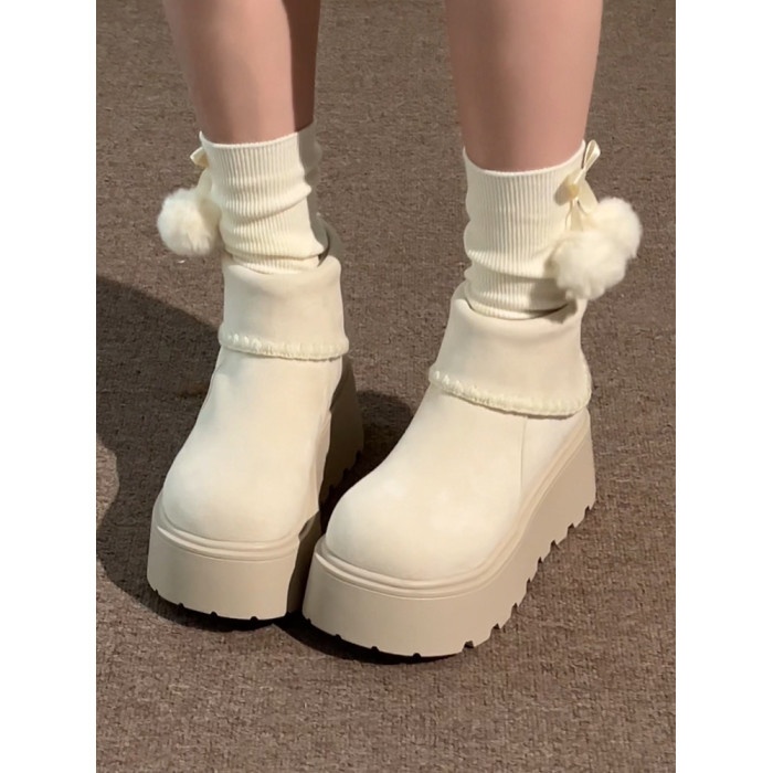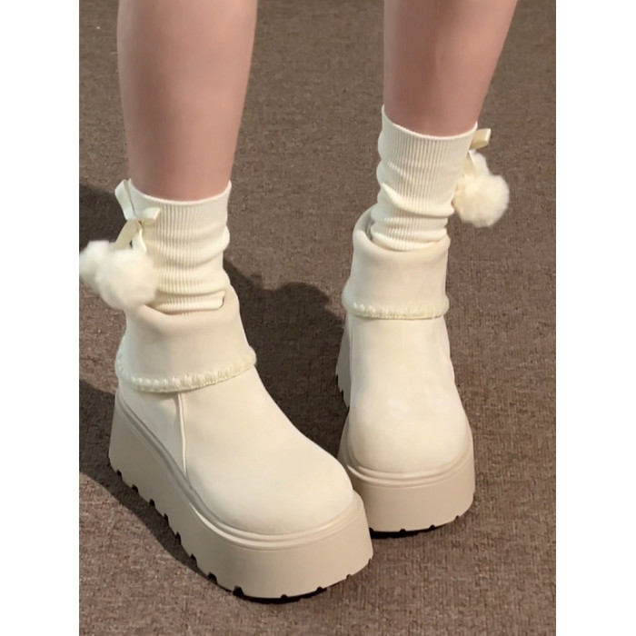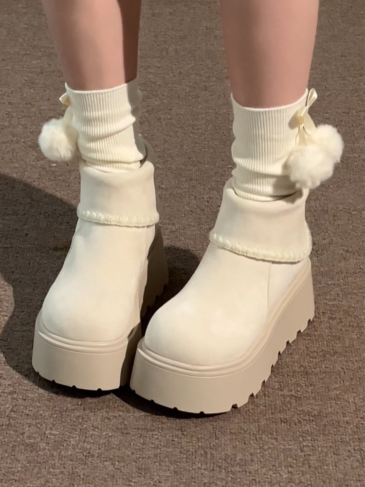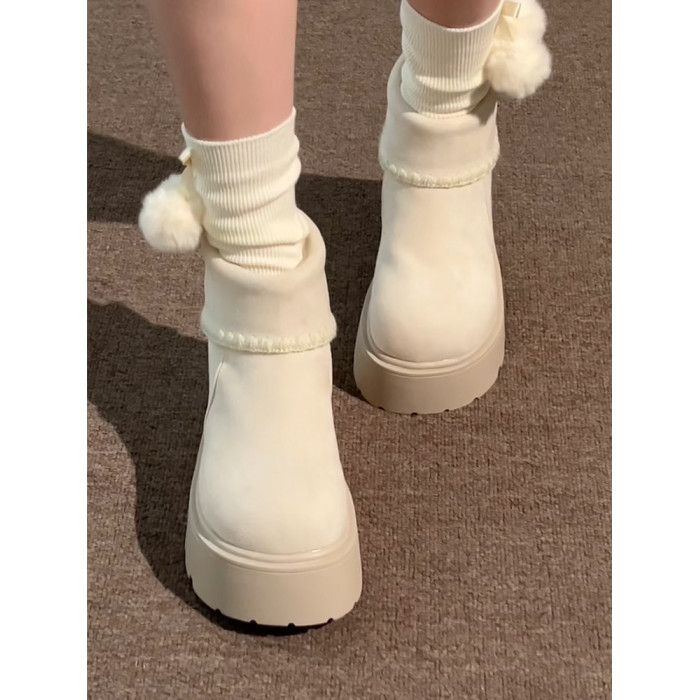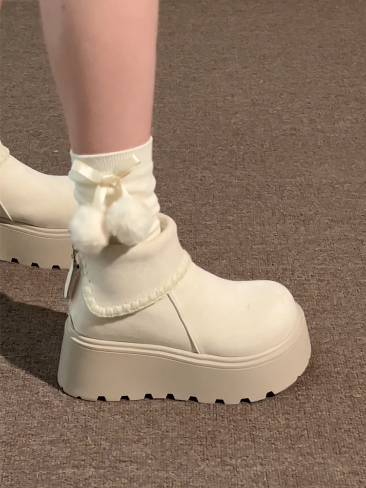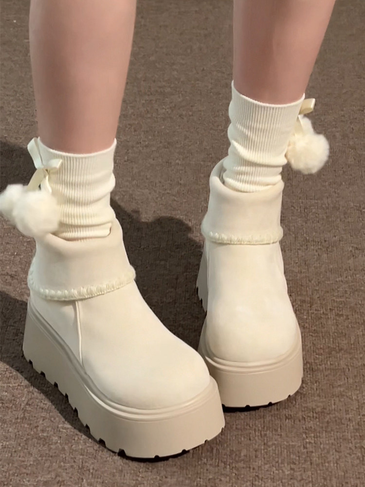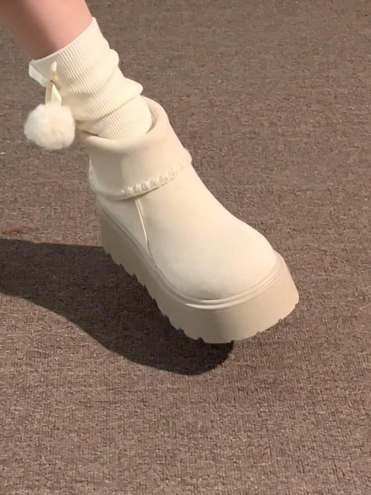白色復古小個子厚底雪地靴女2025年冬季加絨加厚保暖舒適棉鞋增高