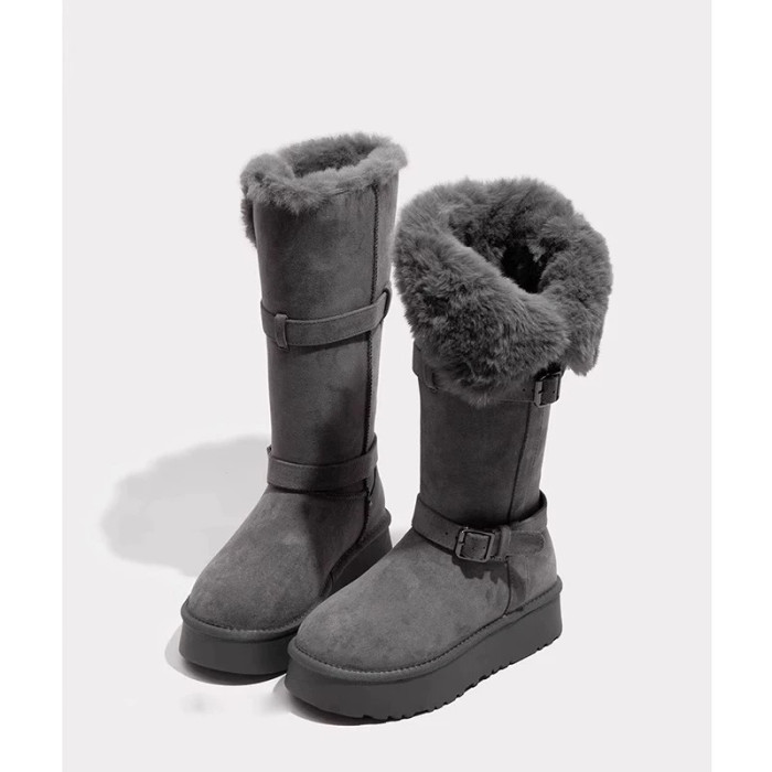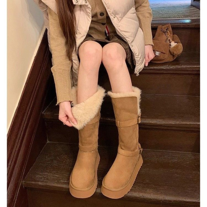 8CM~厚底高筒雪地靴長筒棉靴子2025新款冬季加絨加厚中筒大棉鞋