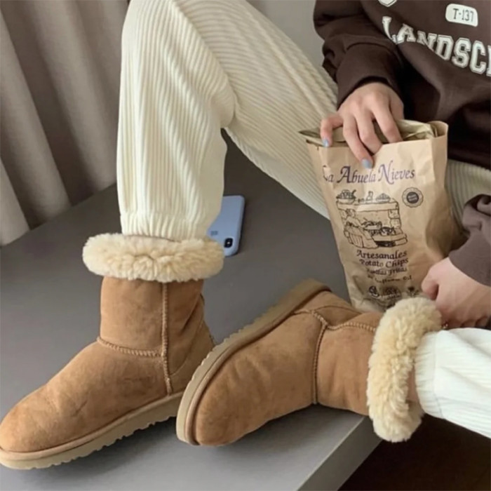 2025年新款羊皮毛一體雪地靴女高筒長筒棉鞋東北厚底大碼中筒靴子