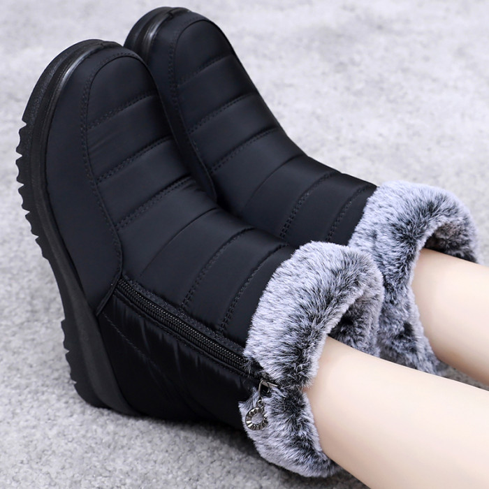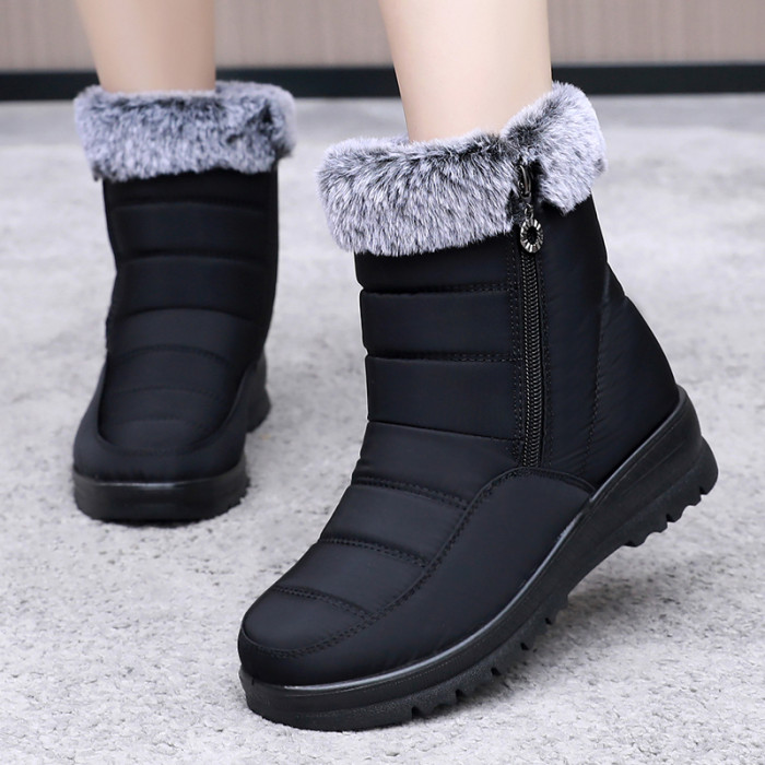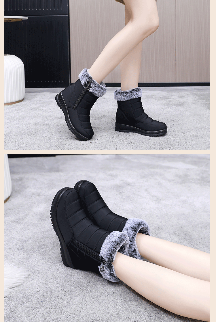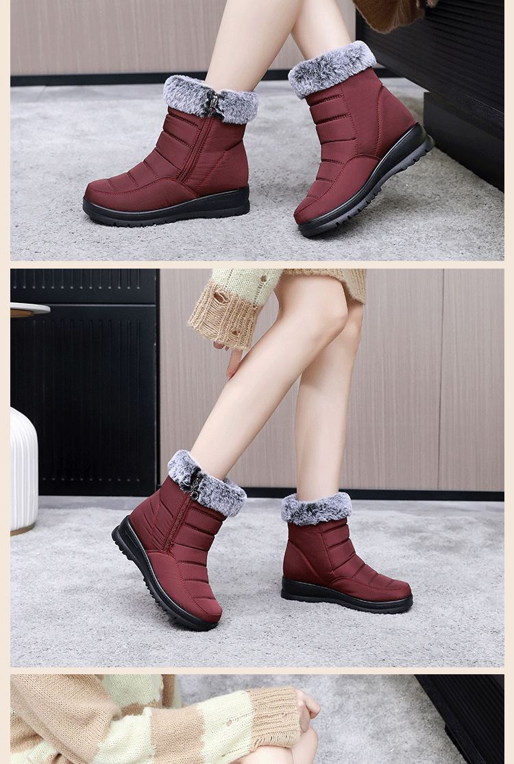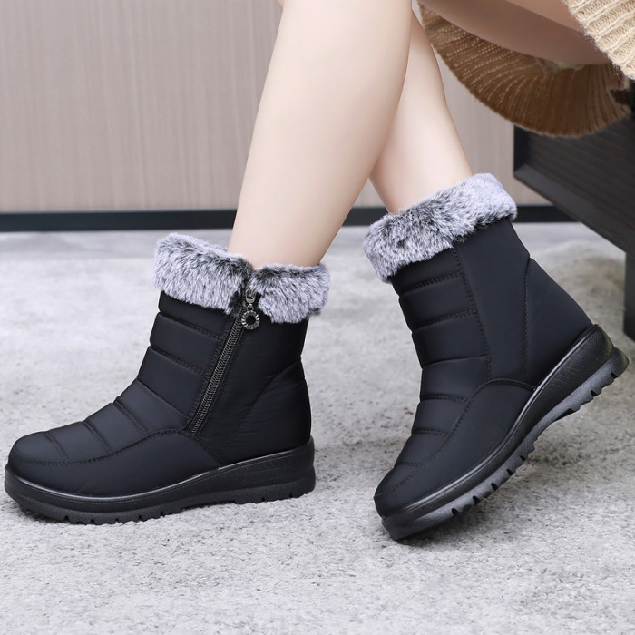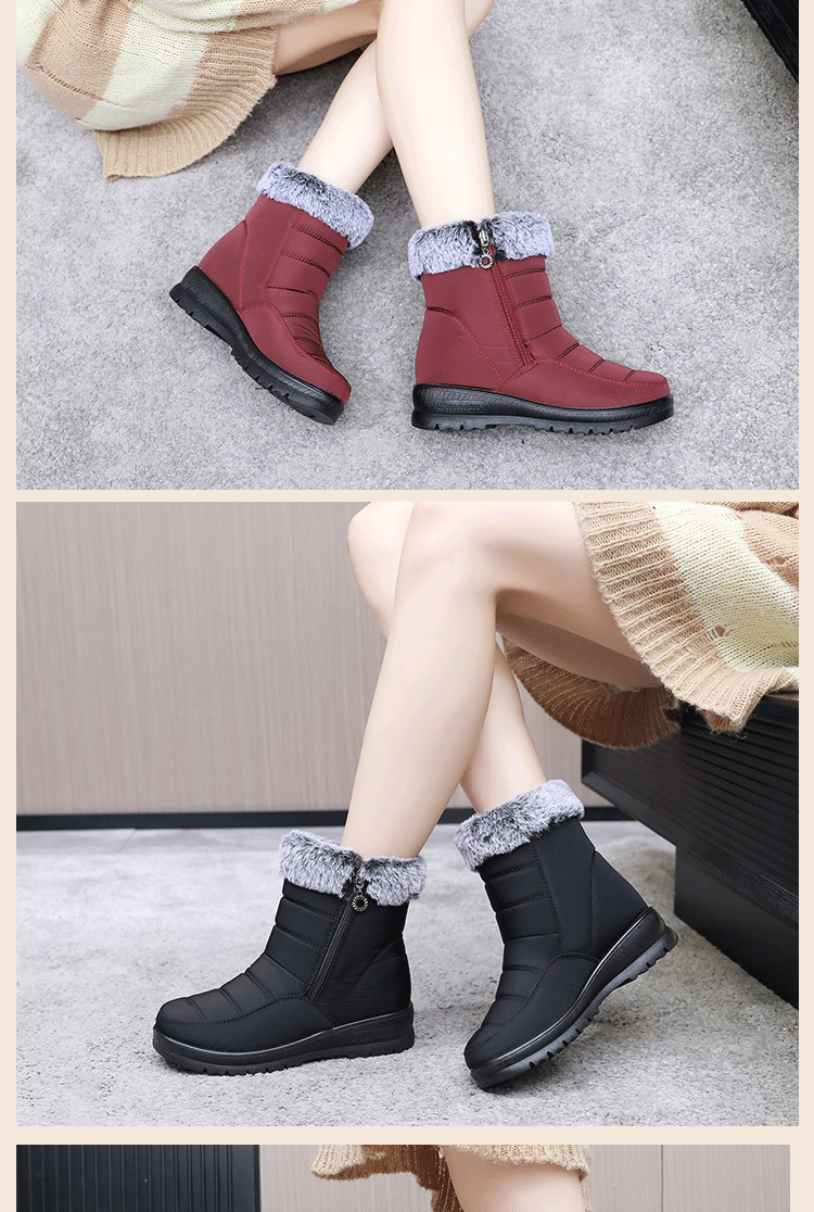 冬季休閒平跟中年加絨防寒加厚棉鞋圓頭中筒保暖雪地靴媽媽靴子女