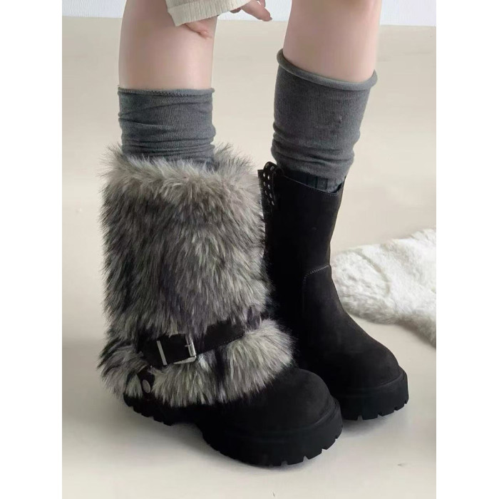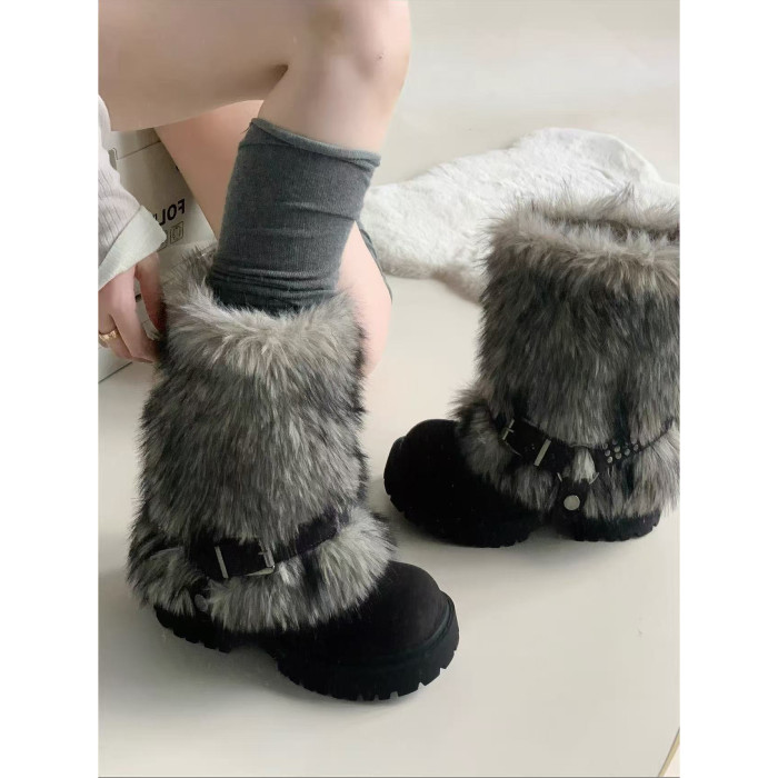 加絨加厚雪地靴女2025年冬季新款靴子中筒棉鞋厚底增高保暖毛毛靴