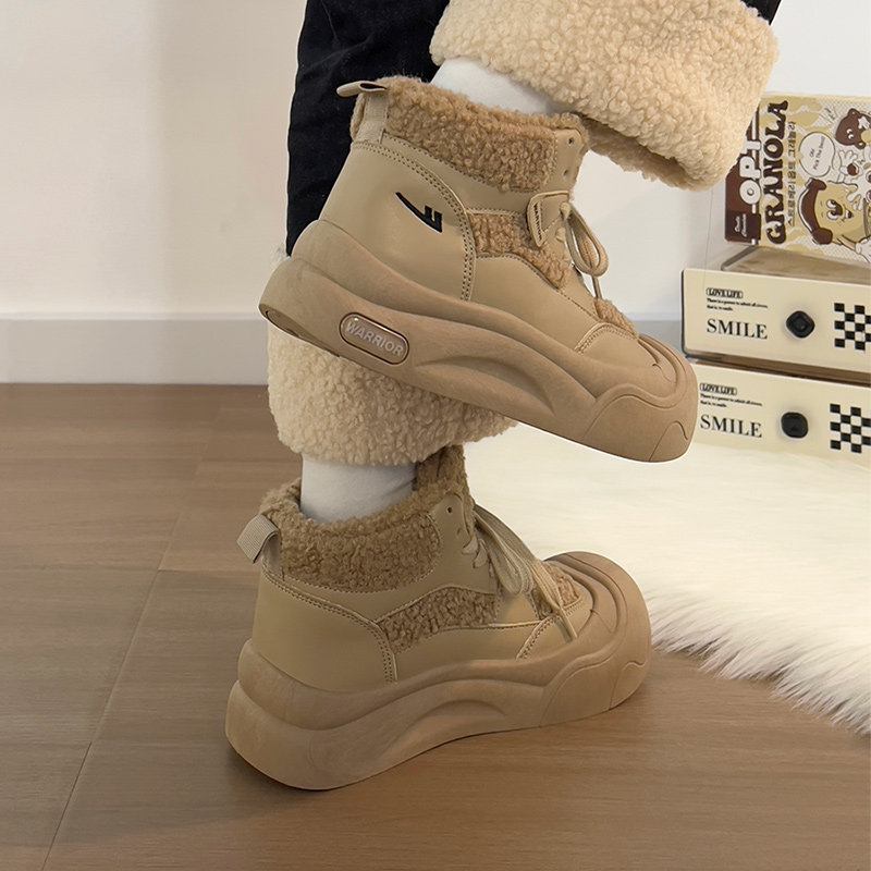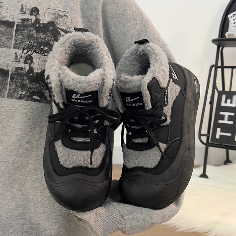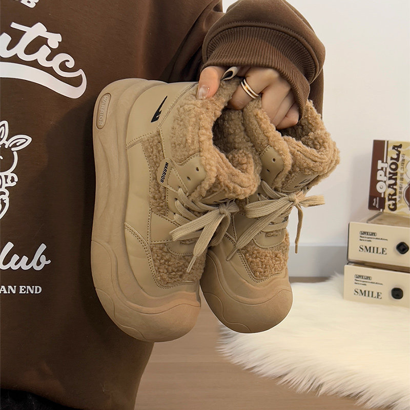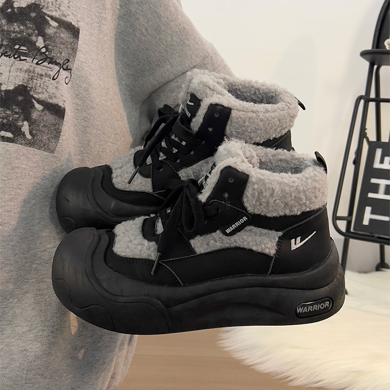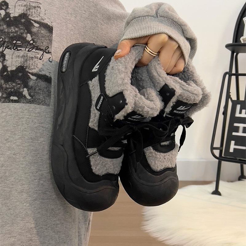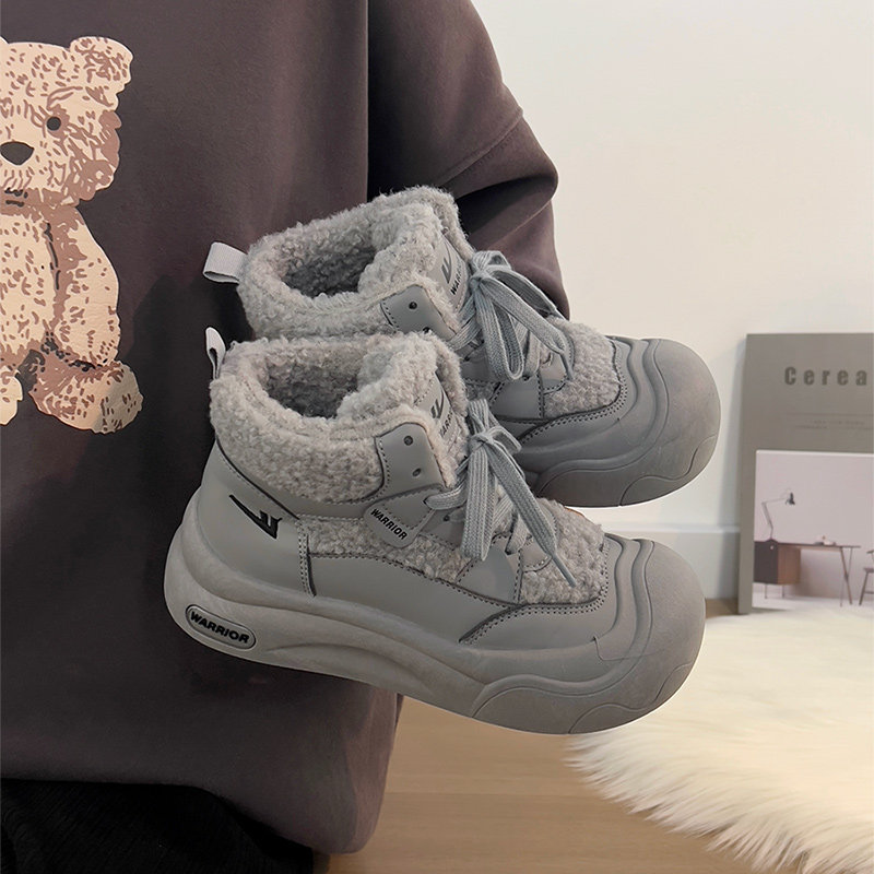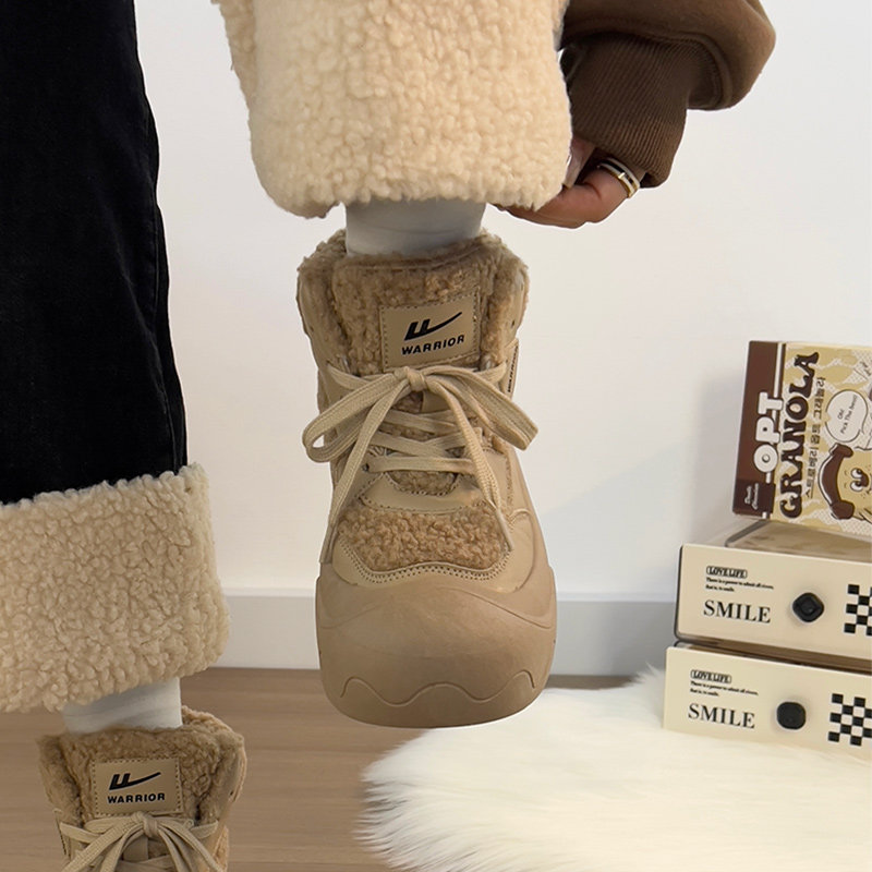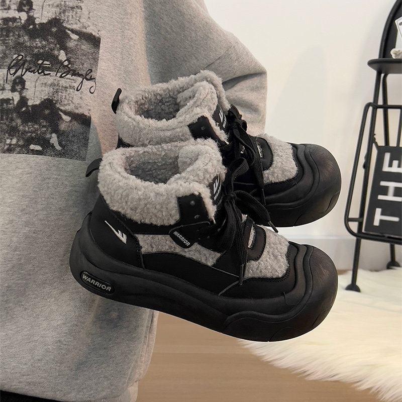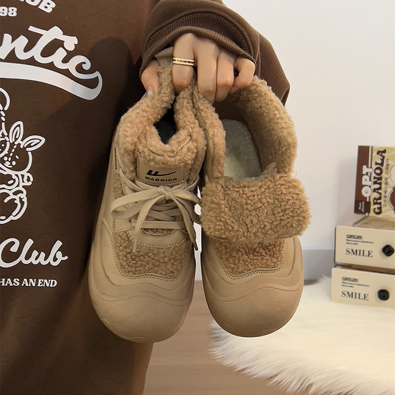 廻力女鞋加絨加厚棉鞋女款2025新款冬季防寒保暖厚底雪地靴毛毛鞋
