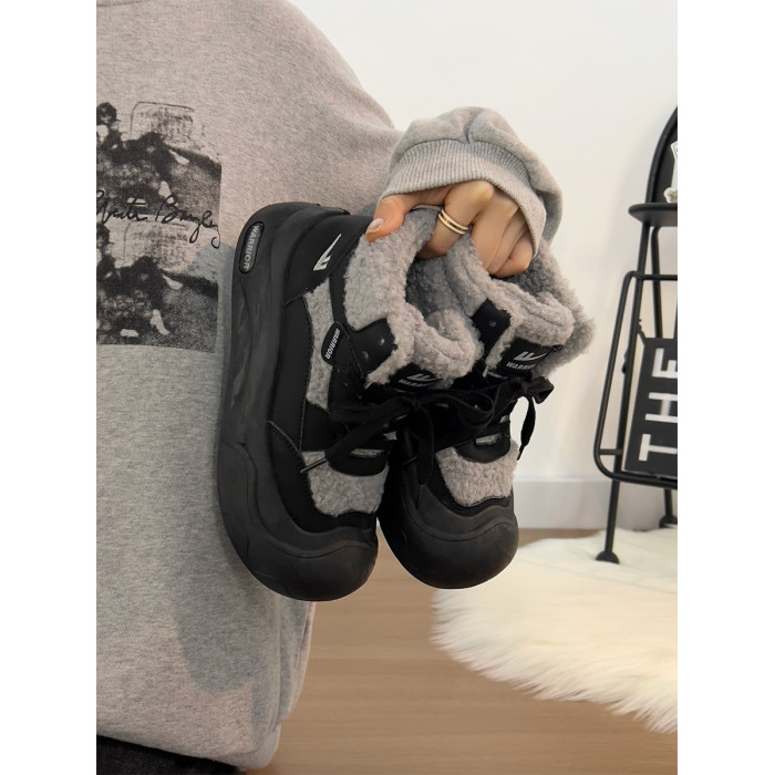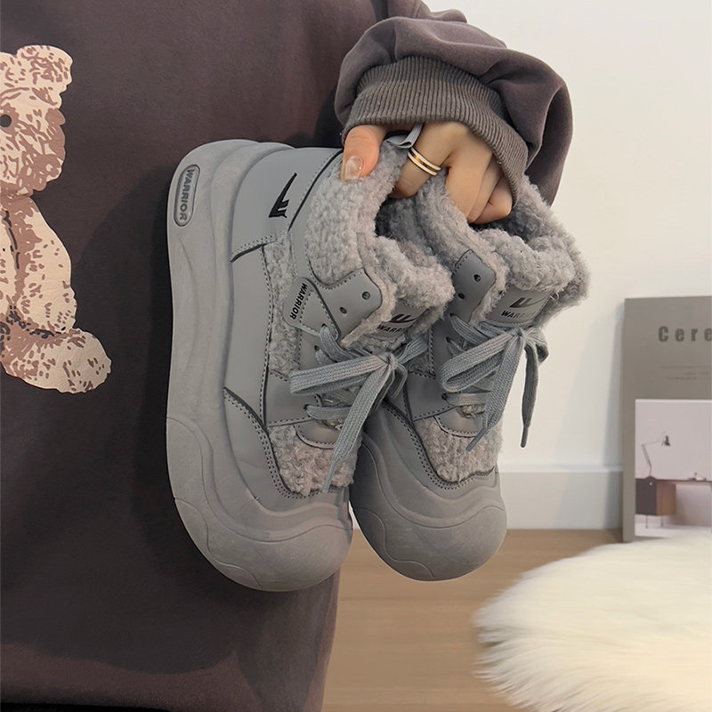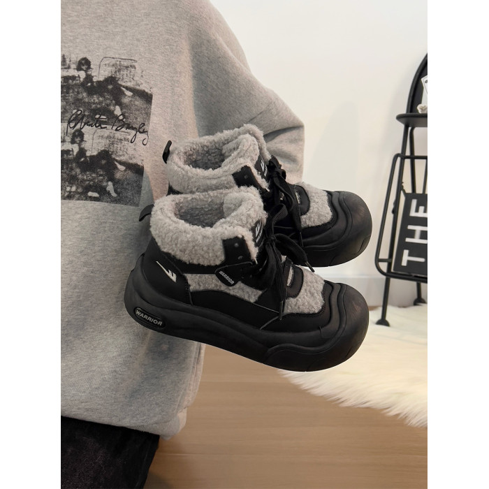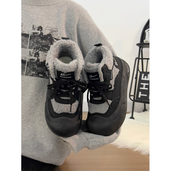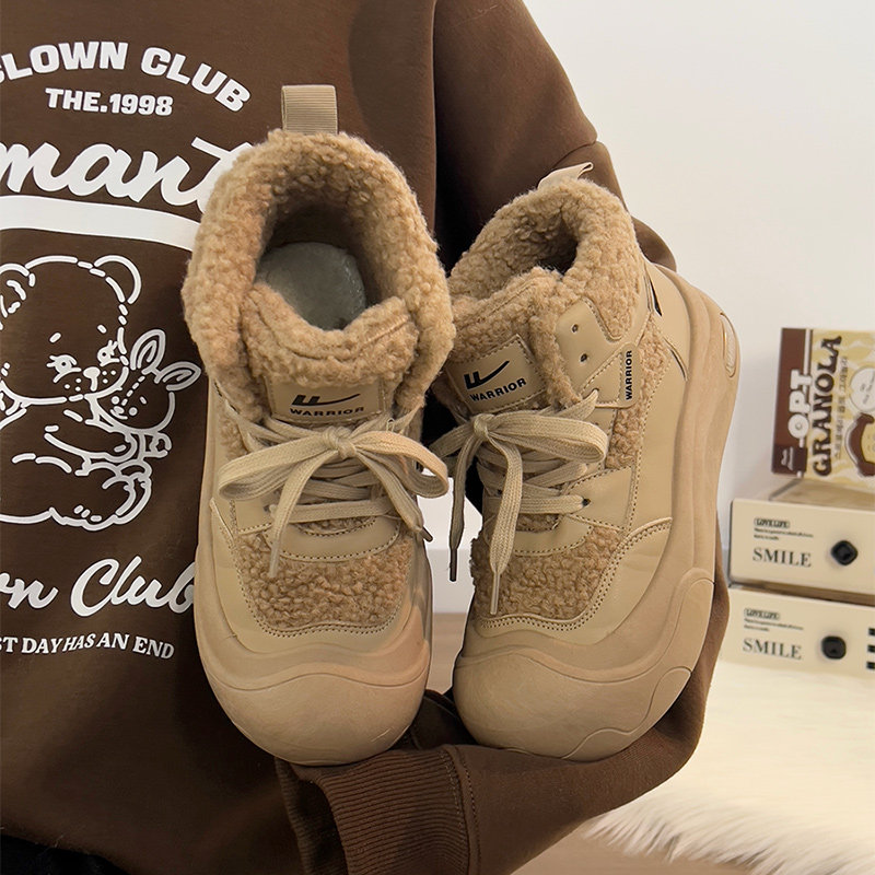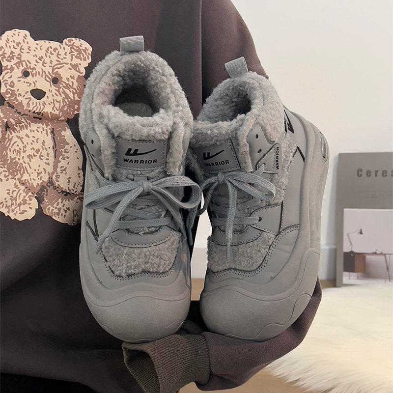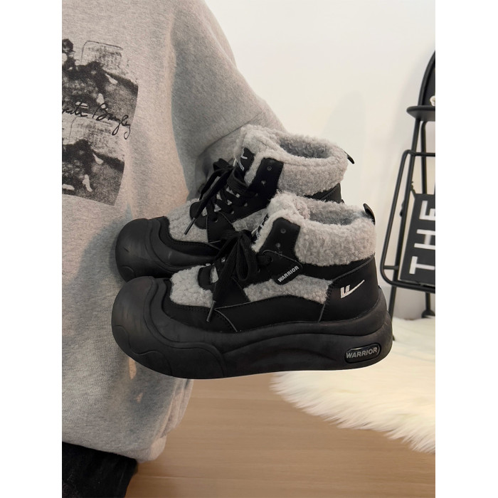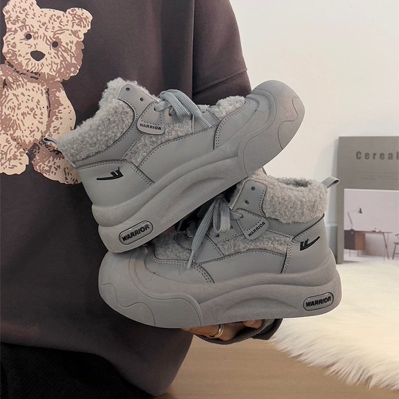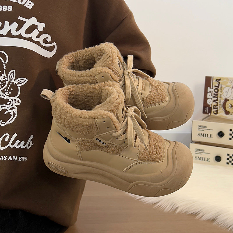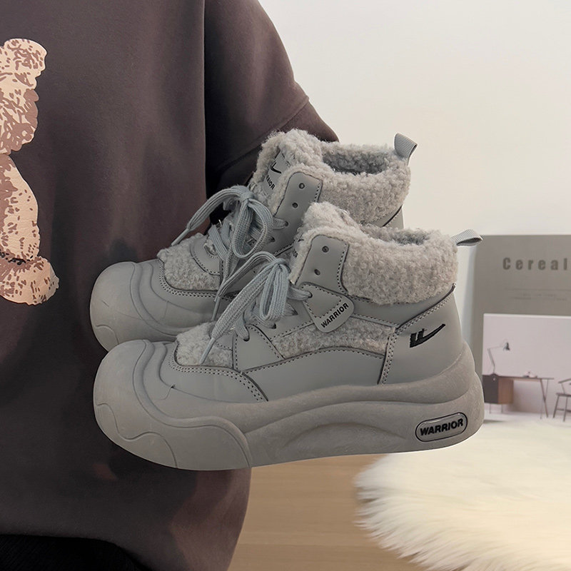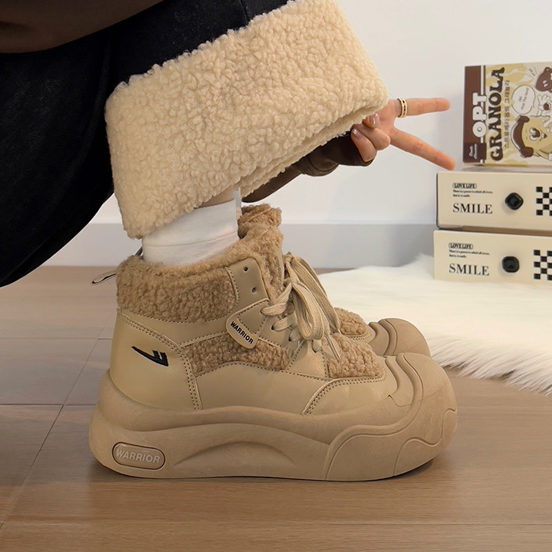 廻力女鞋加絨加厚棉鞋女款2025新款冬季防寒保暖厚底雪地靴毛毛鞋