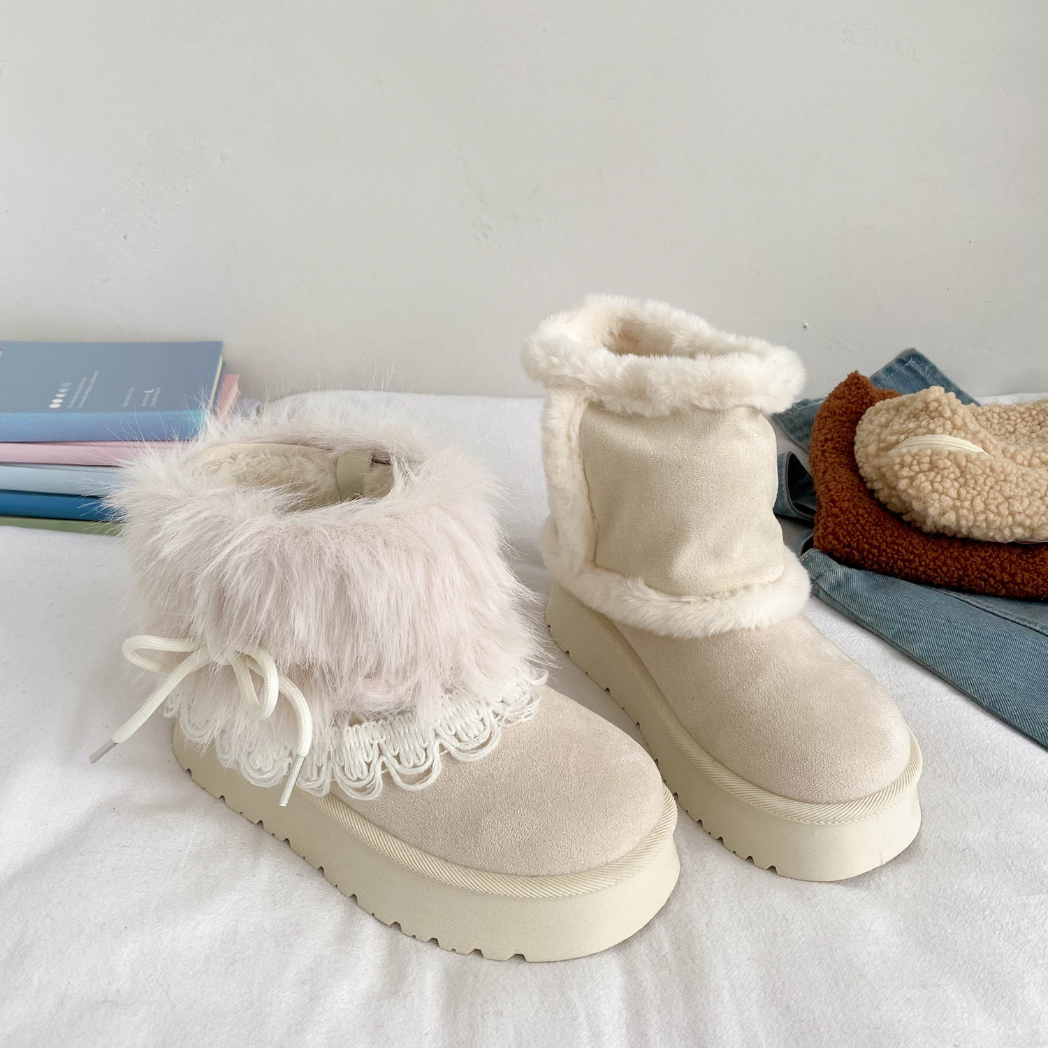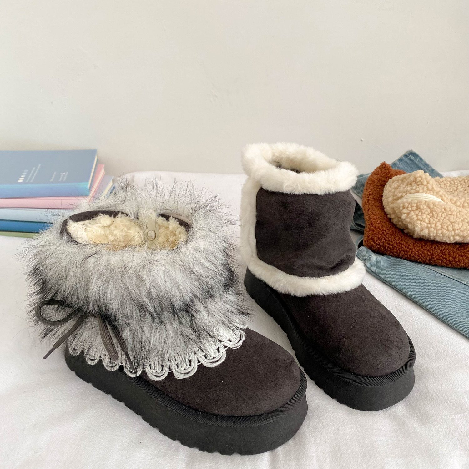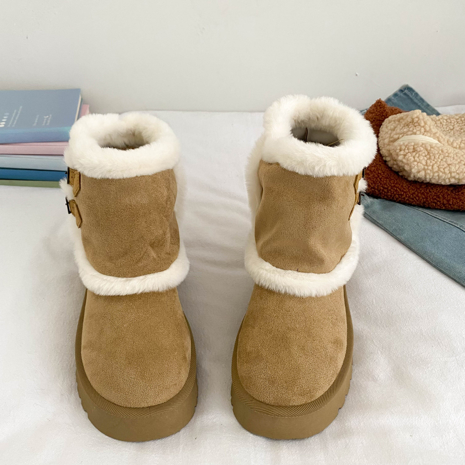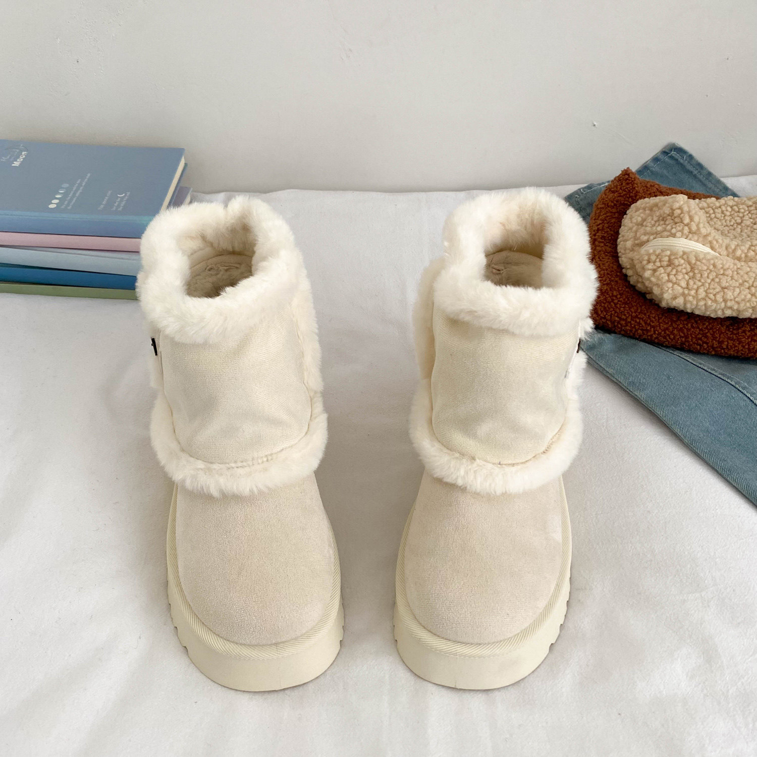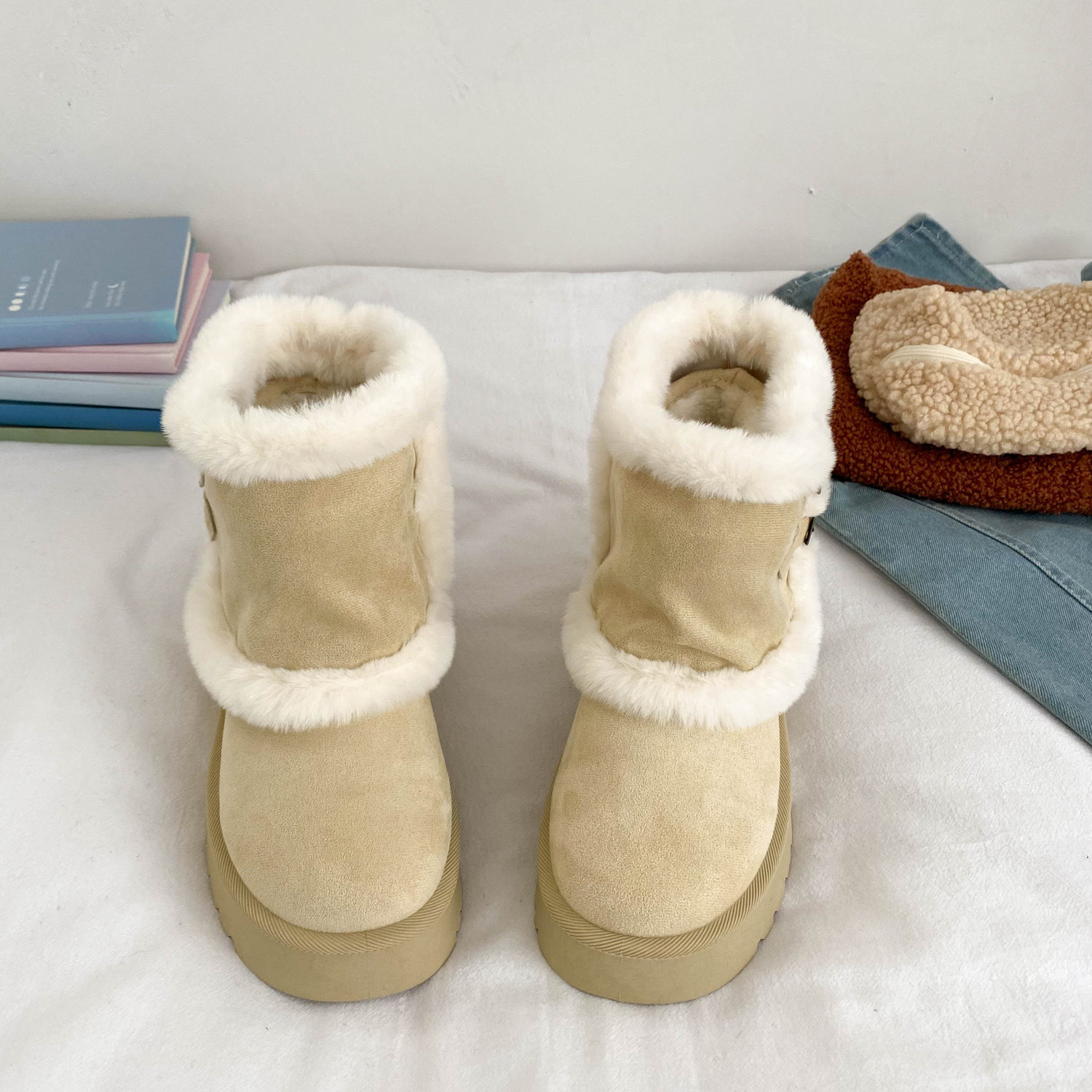 聖誕帽厚底雪地靴女冬季保暖原創小衆加絨加厚短靴百搭費爾島棉鞋