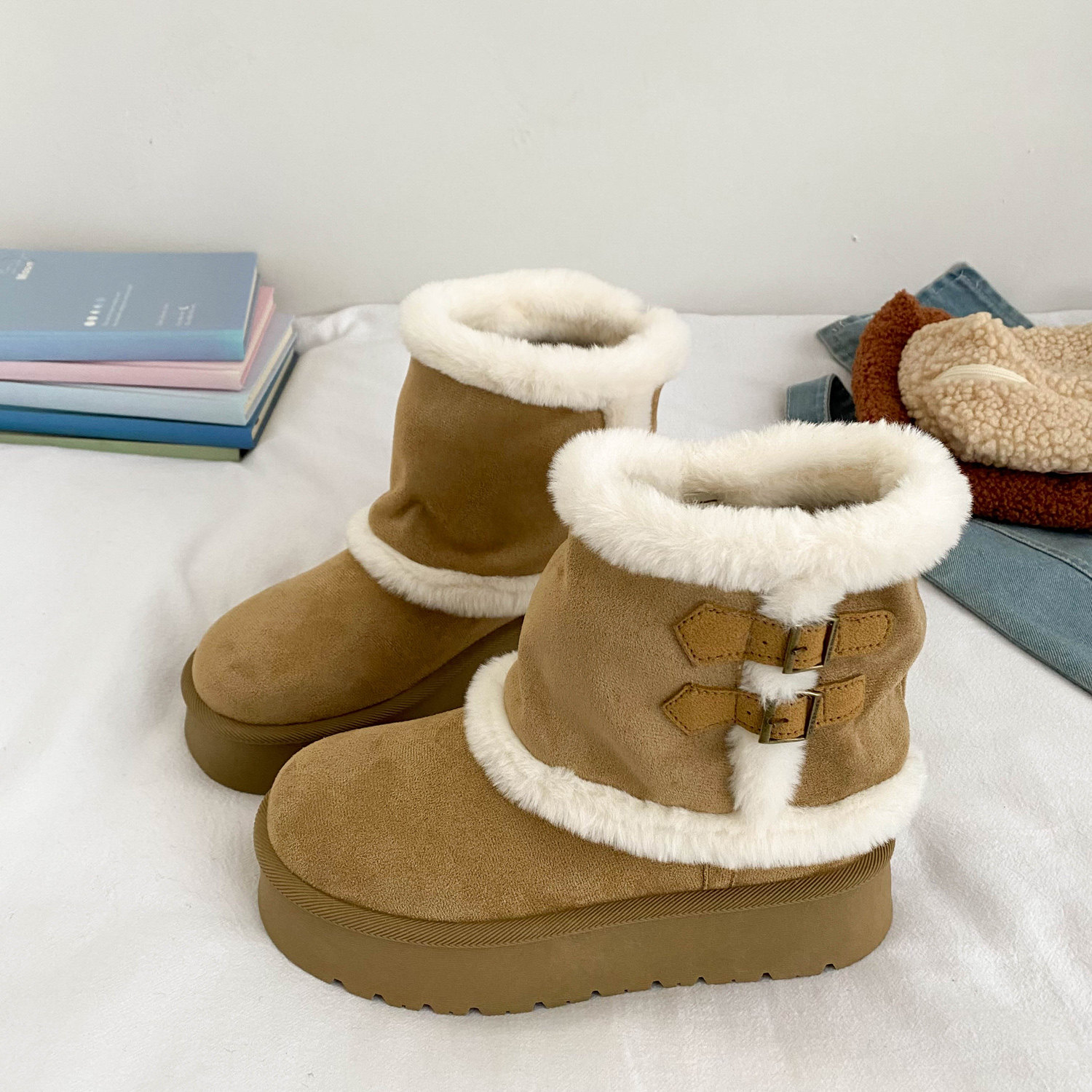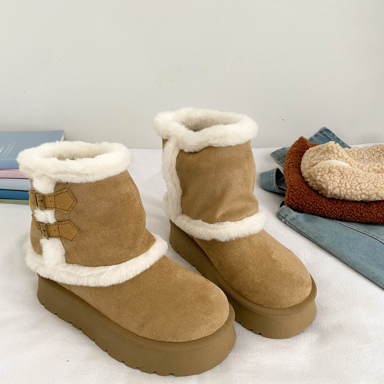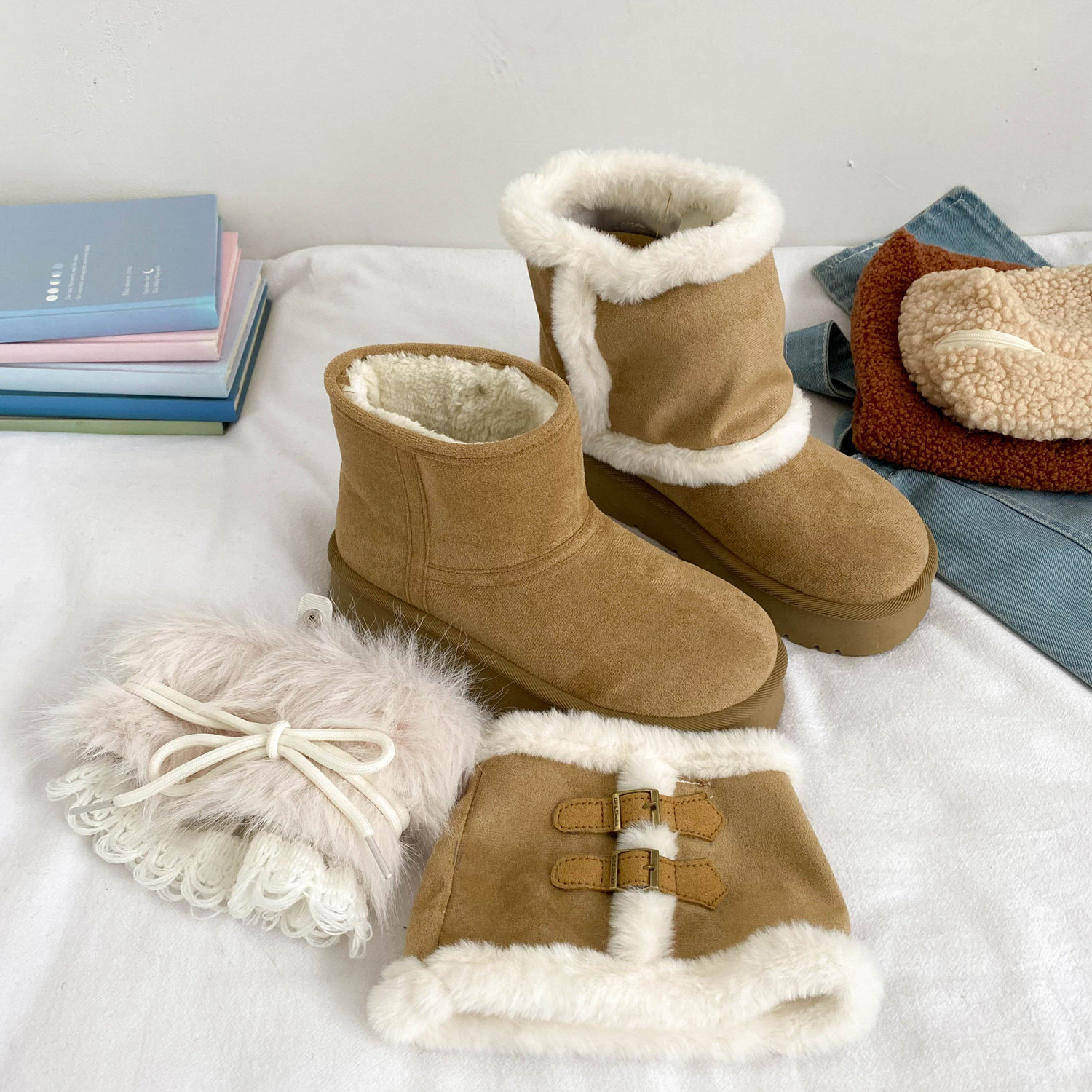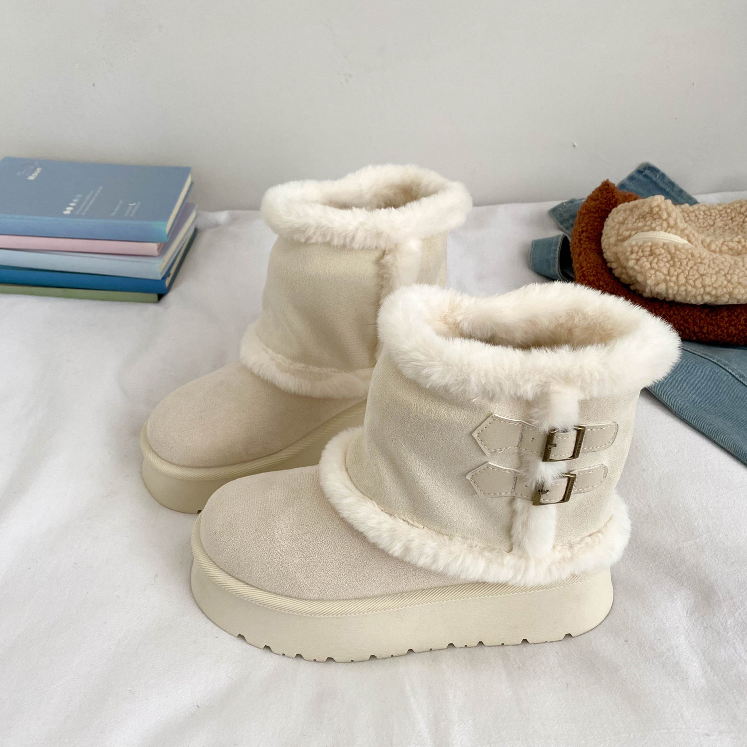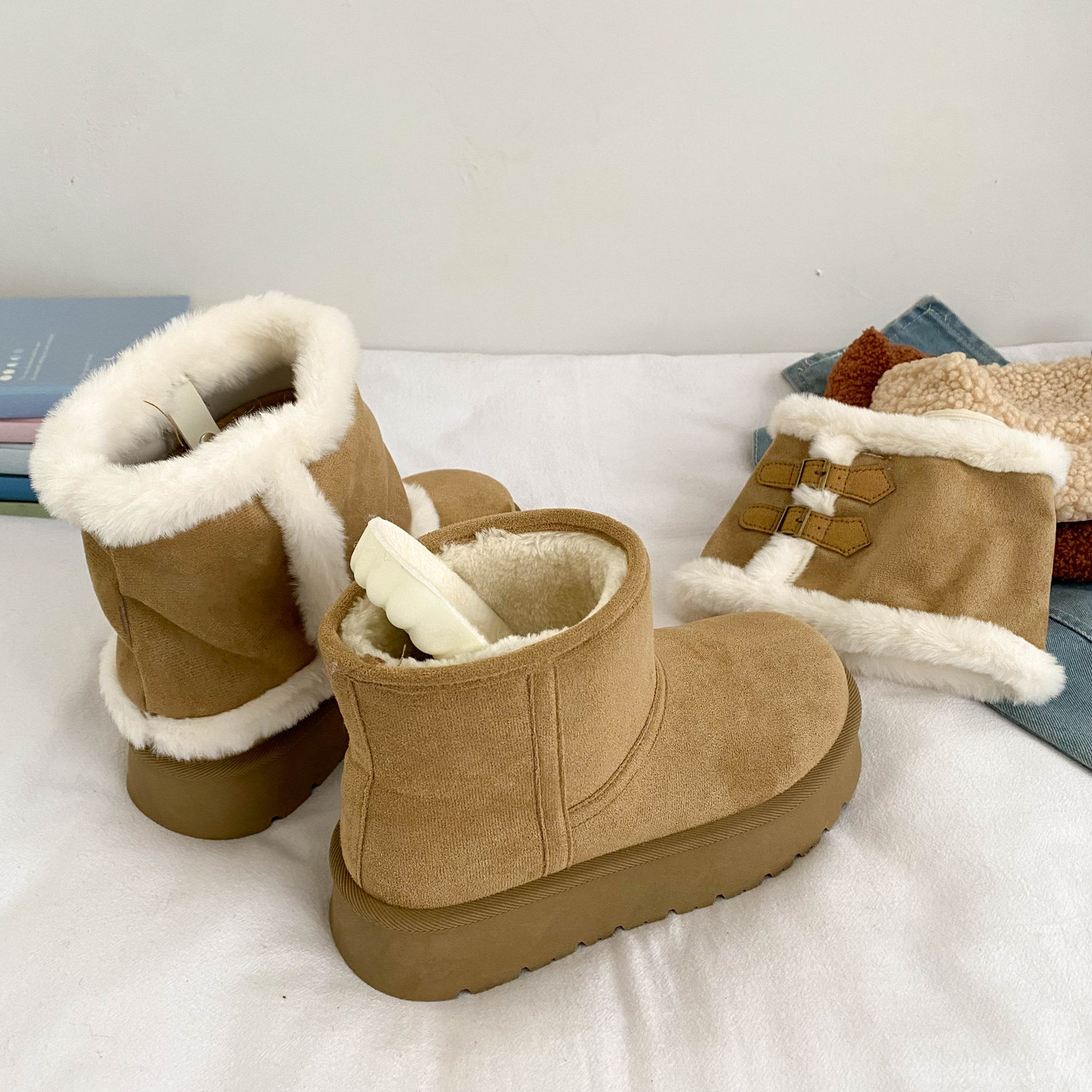 聖誕帽厚底雪地靴女冬季保暖原創小衆加絨加厚短靴百搭費爾島棉鞋