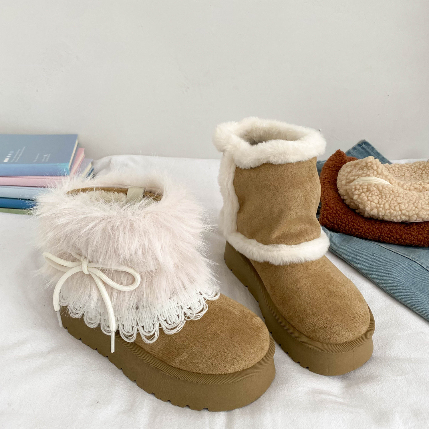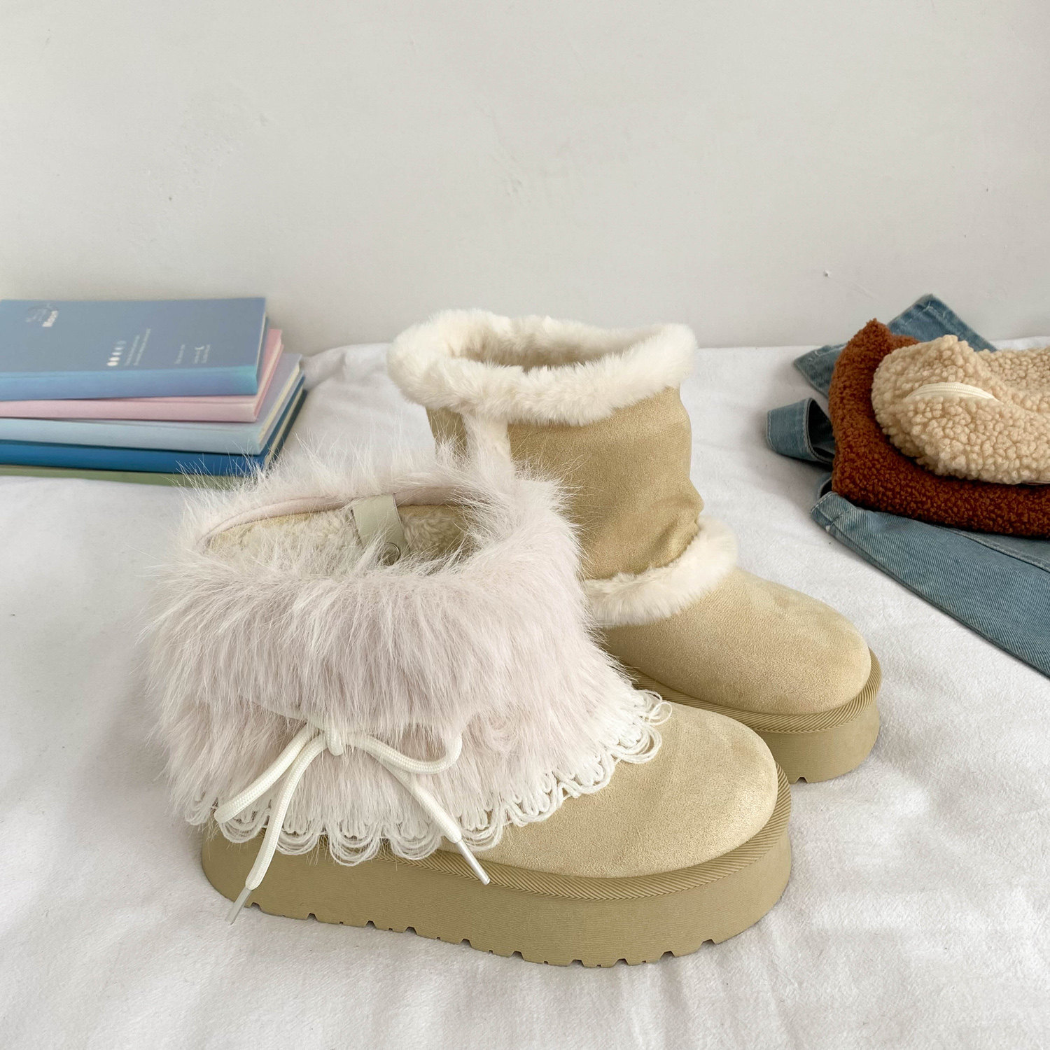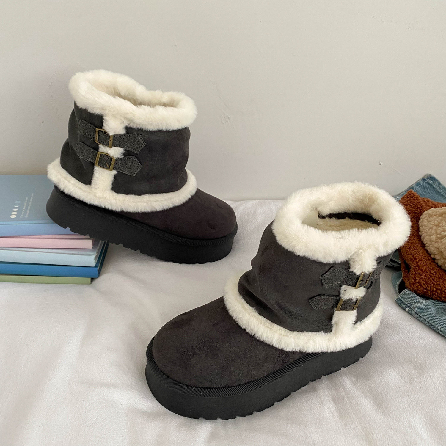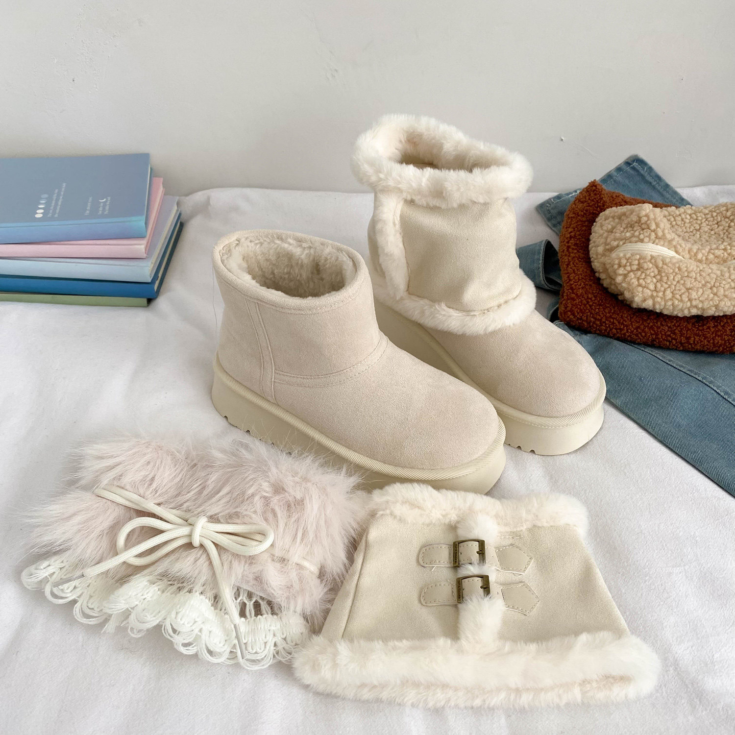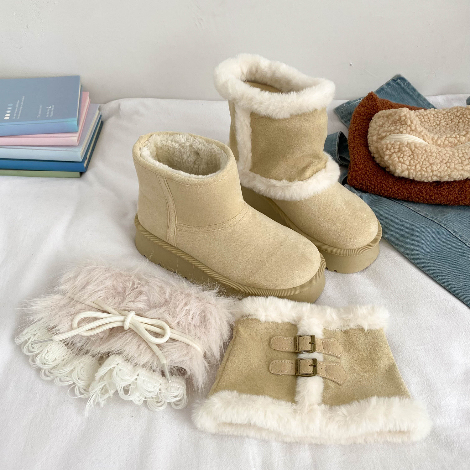 聖誕帽厚底雪地靴女冬季保暖原創小衆加絨加厚短靴百搭費爾島棉鞋