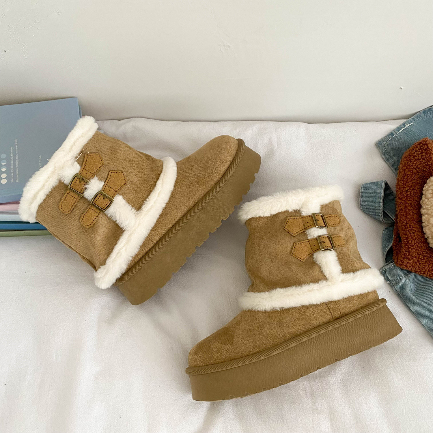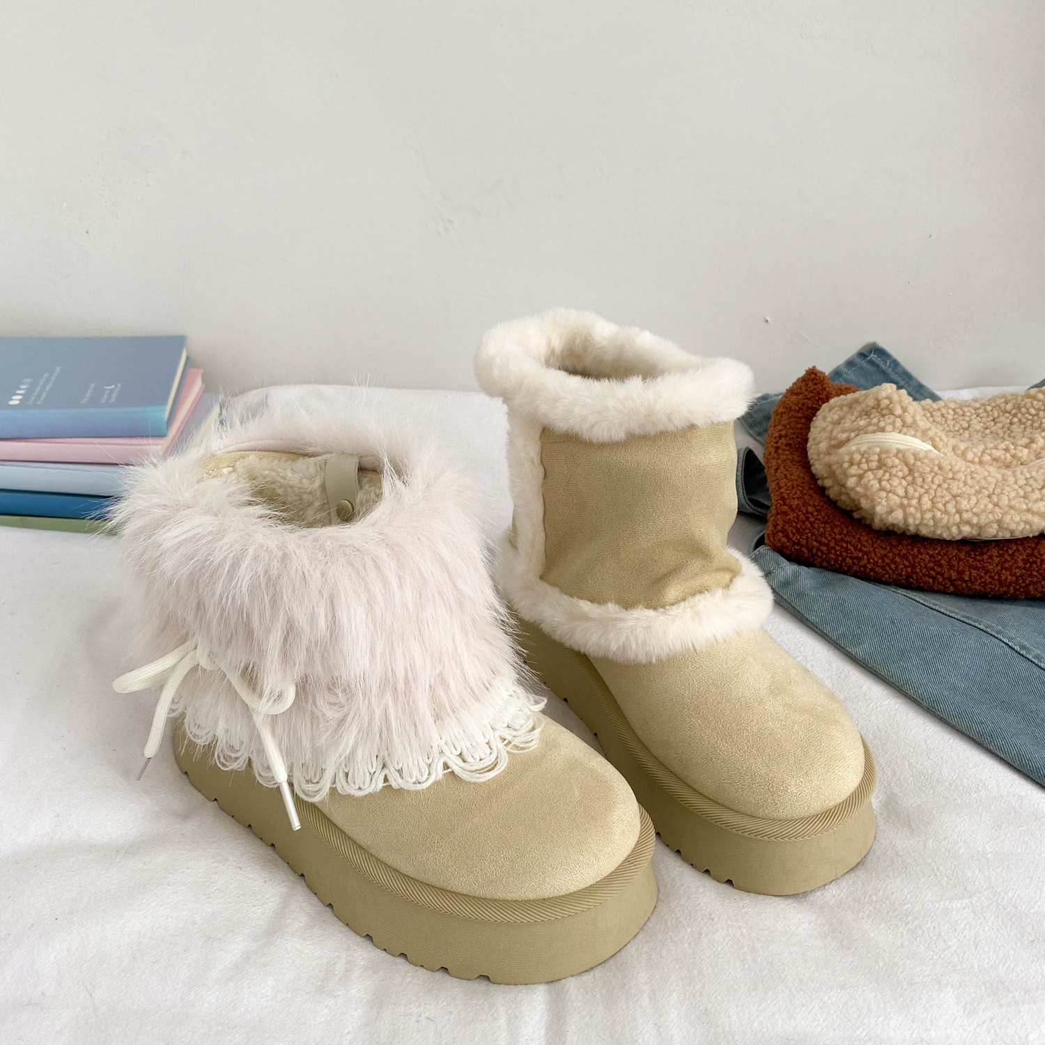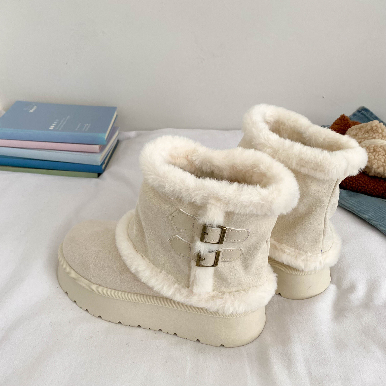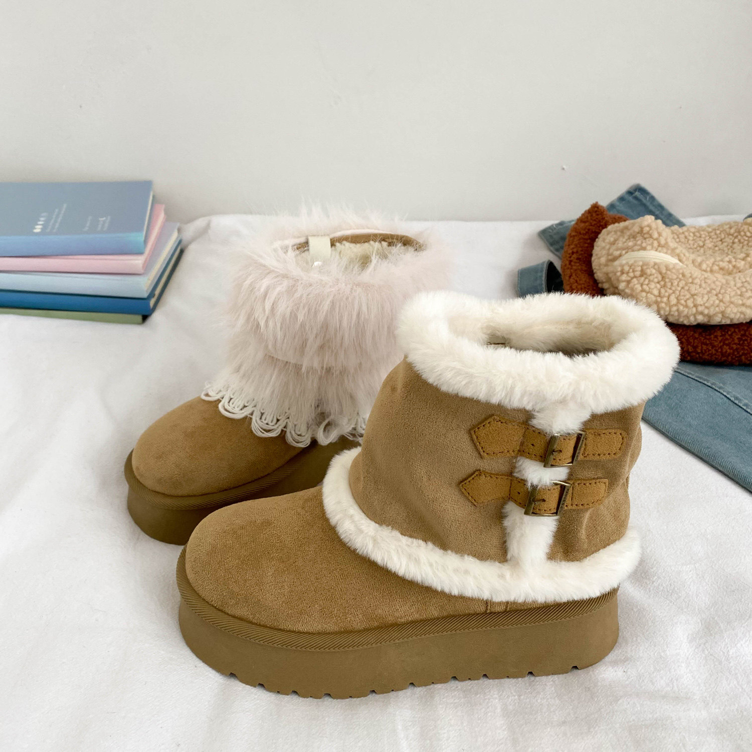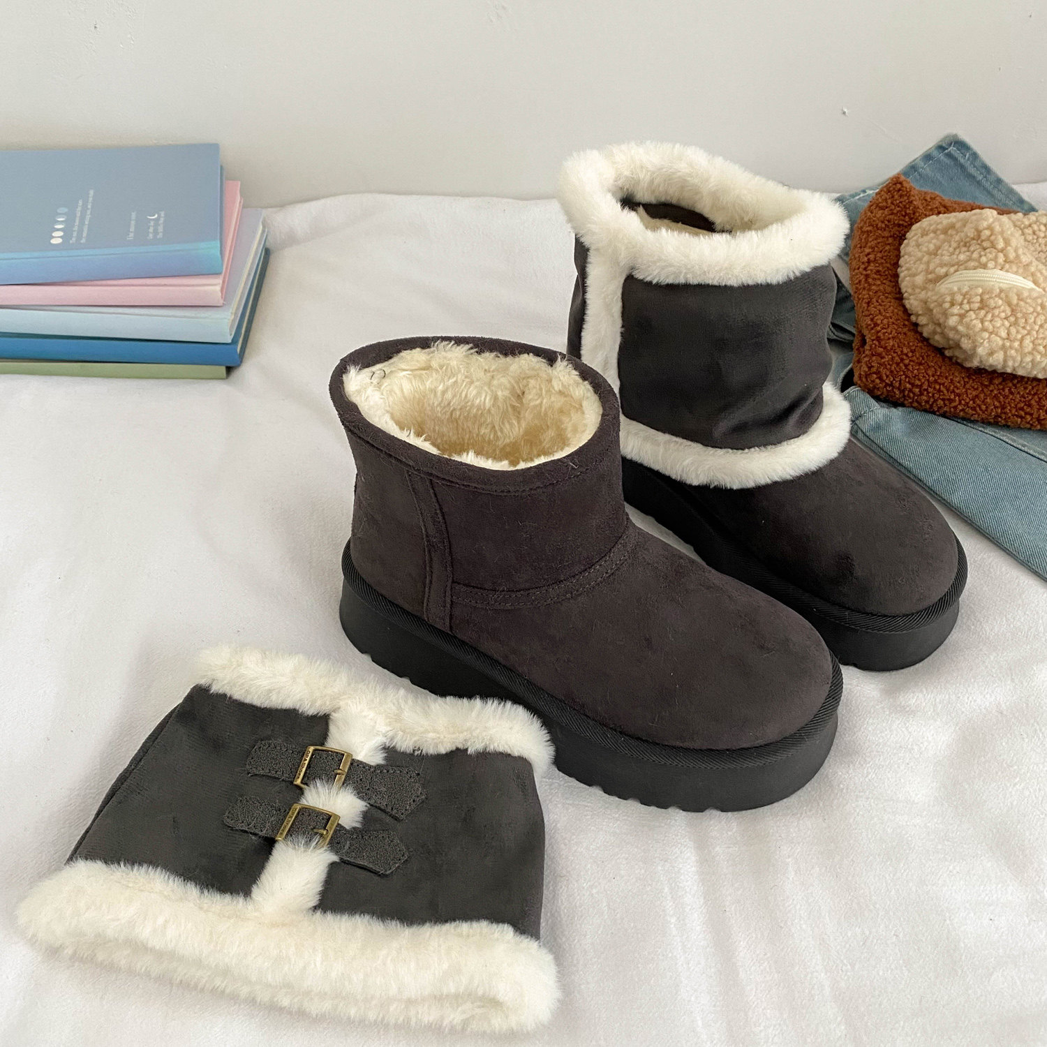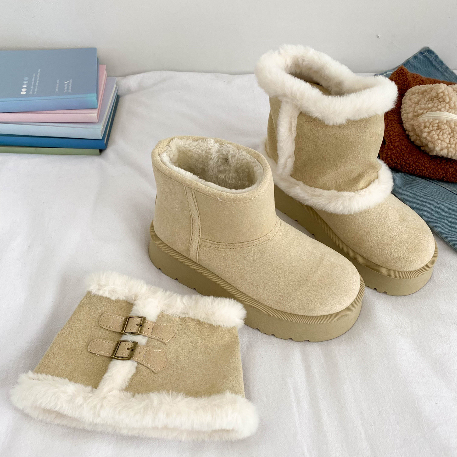 聖誕帽厚底雪地靴女冬季保暖原創小衆加絨加厚短靴百搭費爾島棉鞋