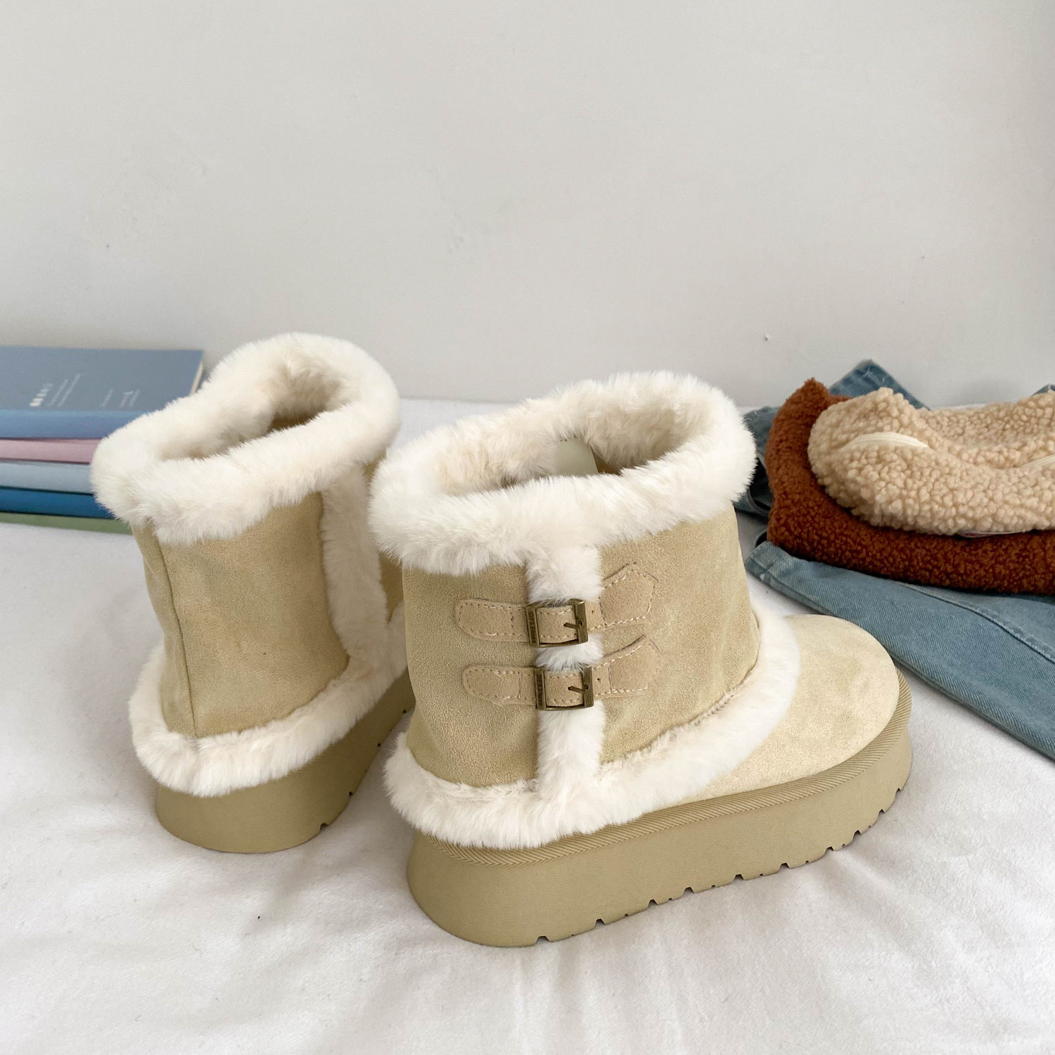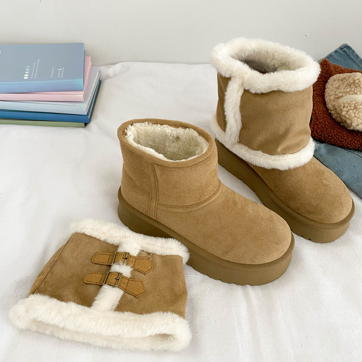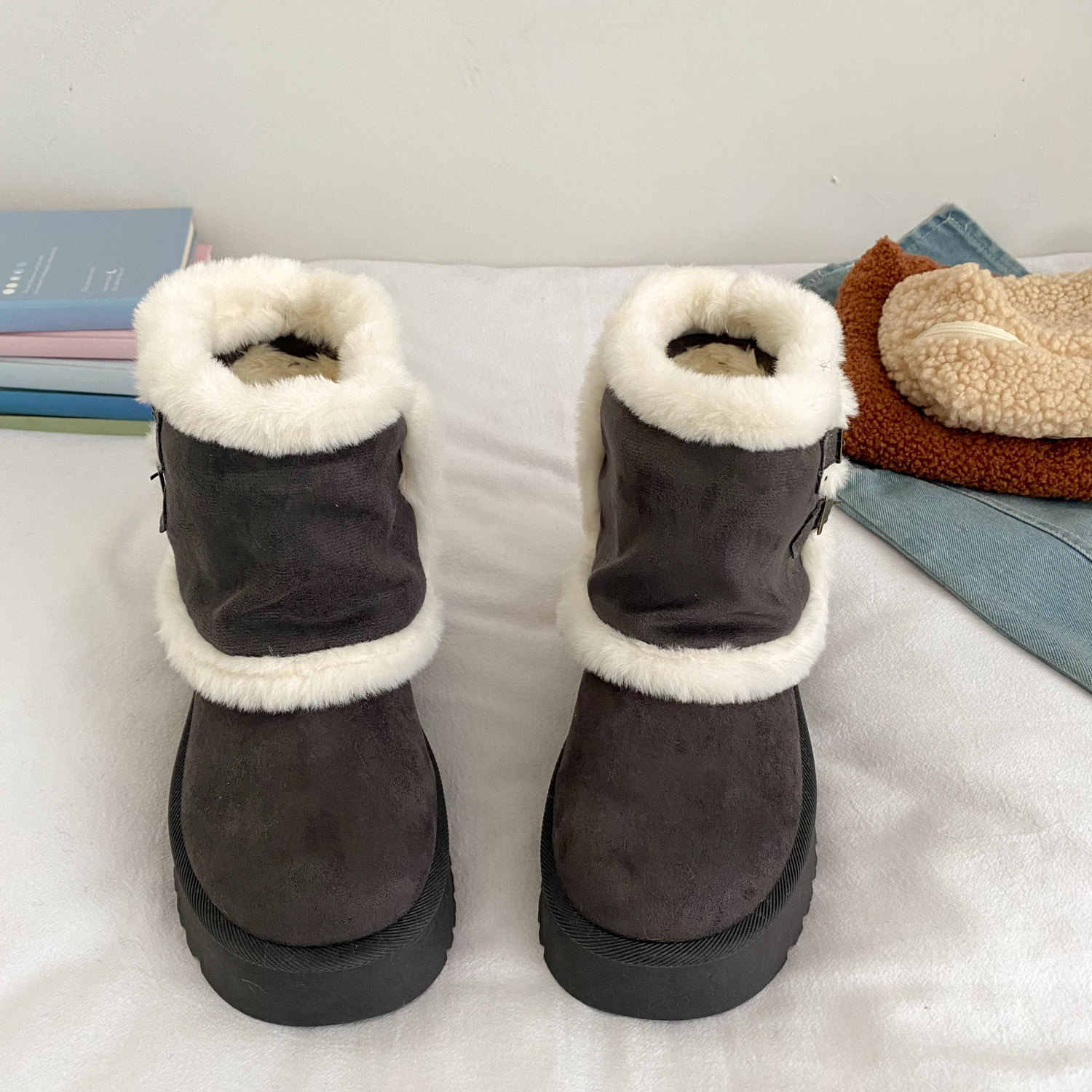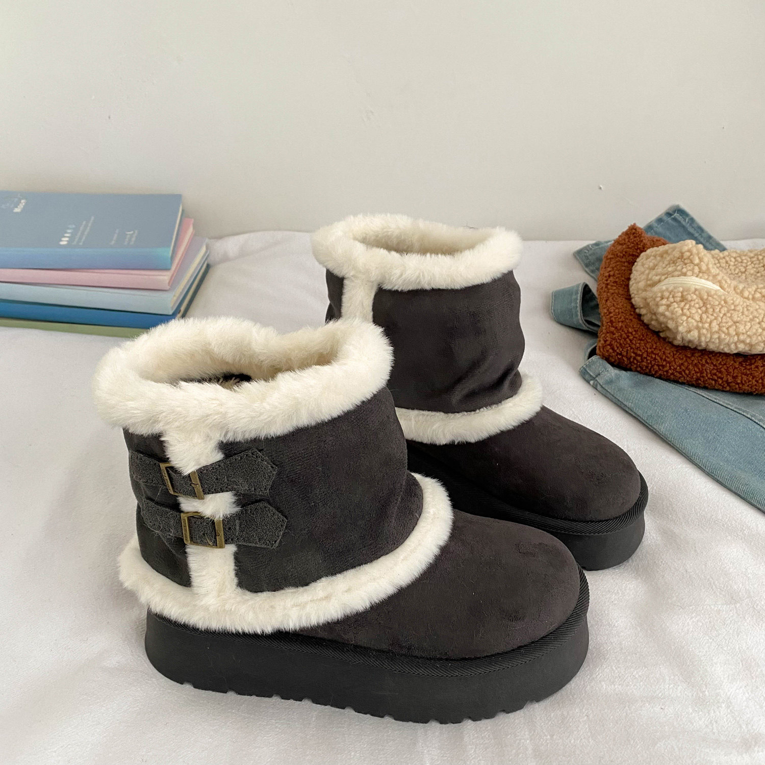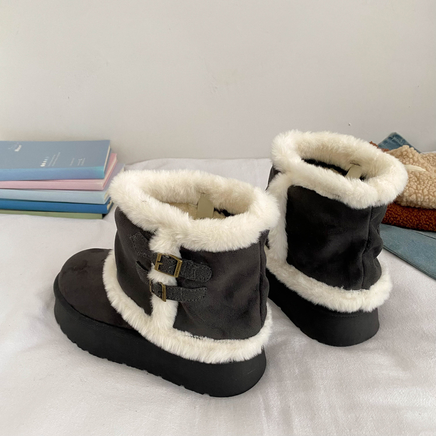 聖誕帽厚底雪地靴女冬季保暖原創小衆加絨加厚短靴百搭費爾島棉鞋