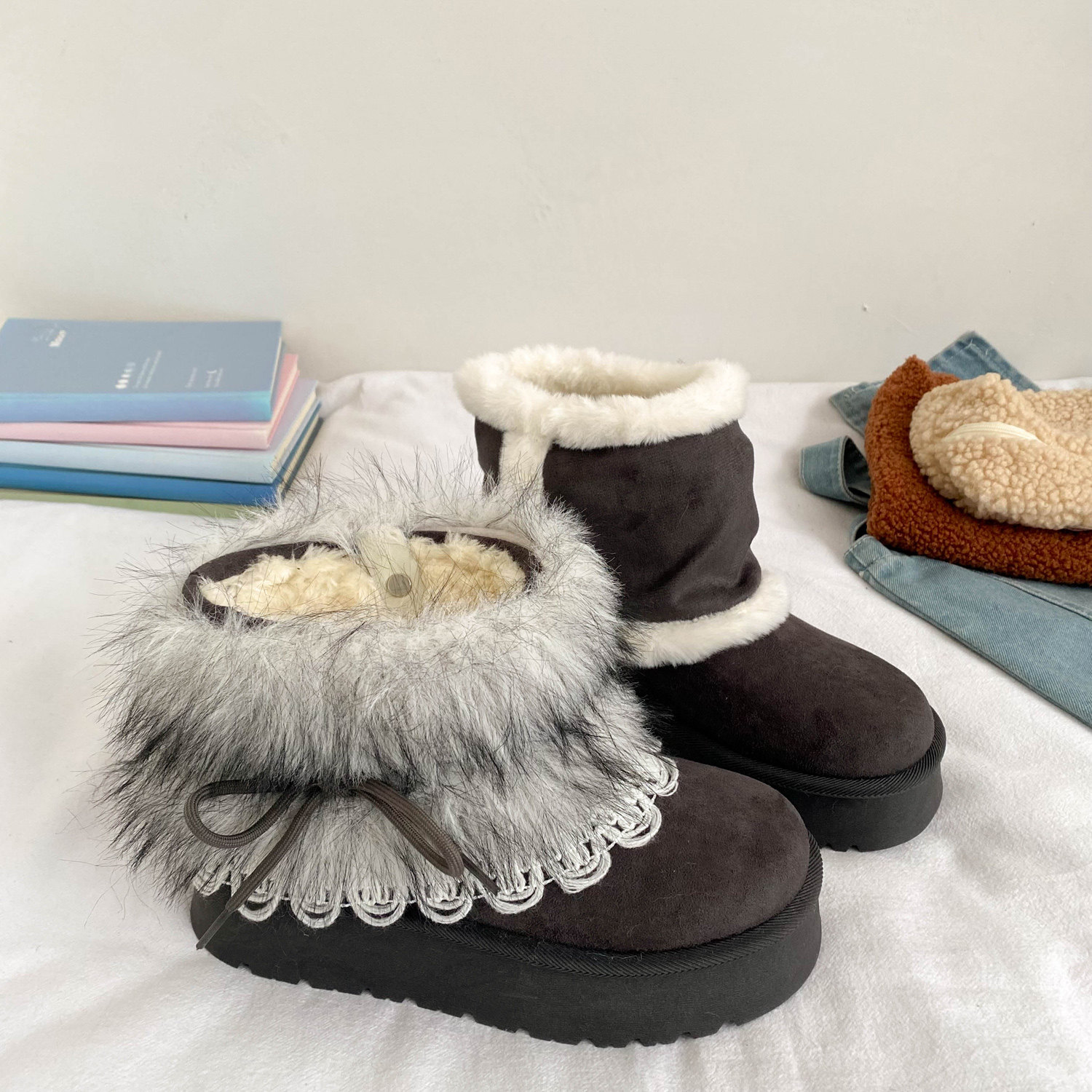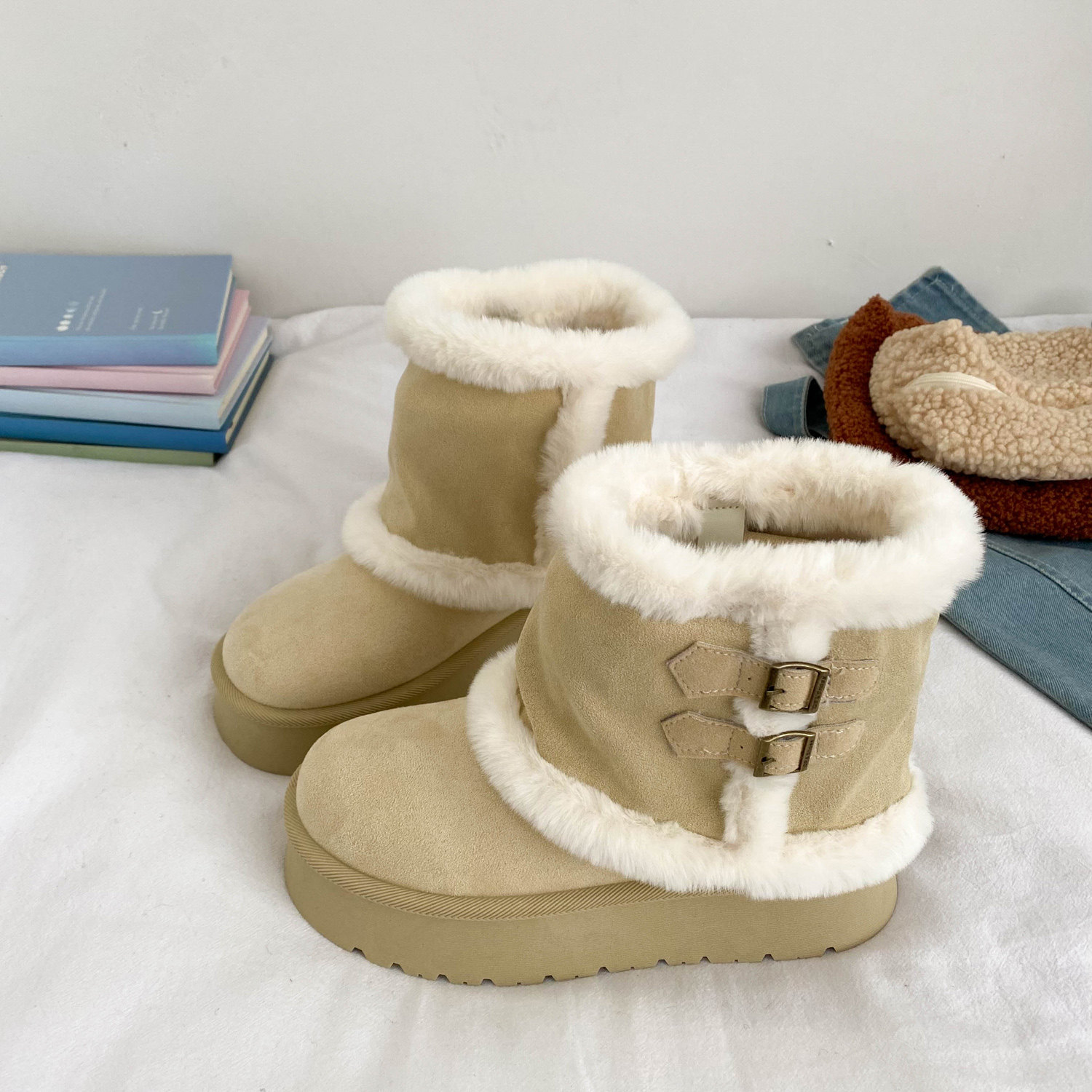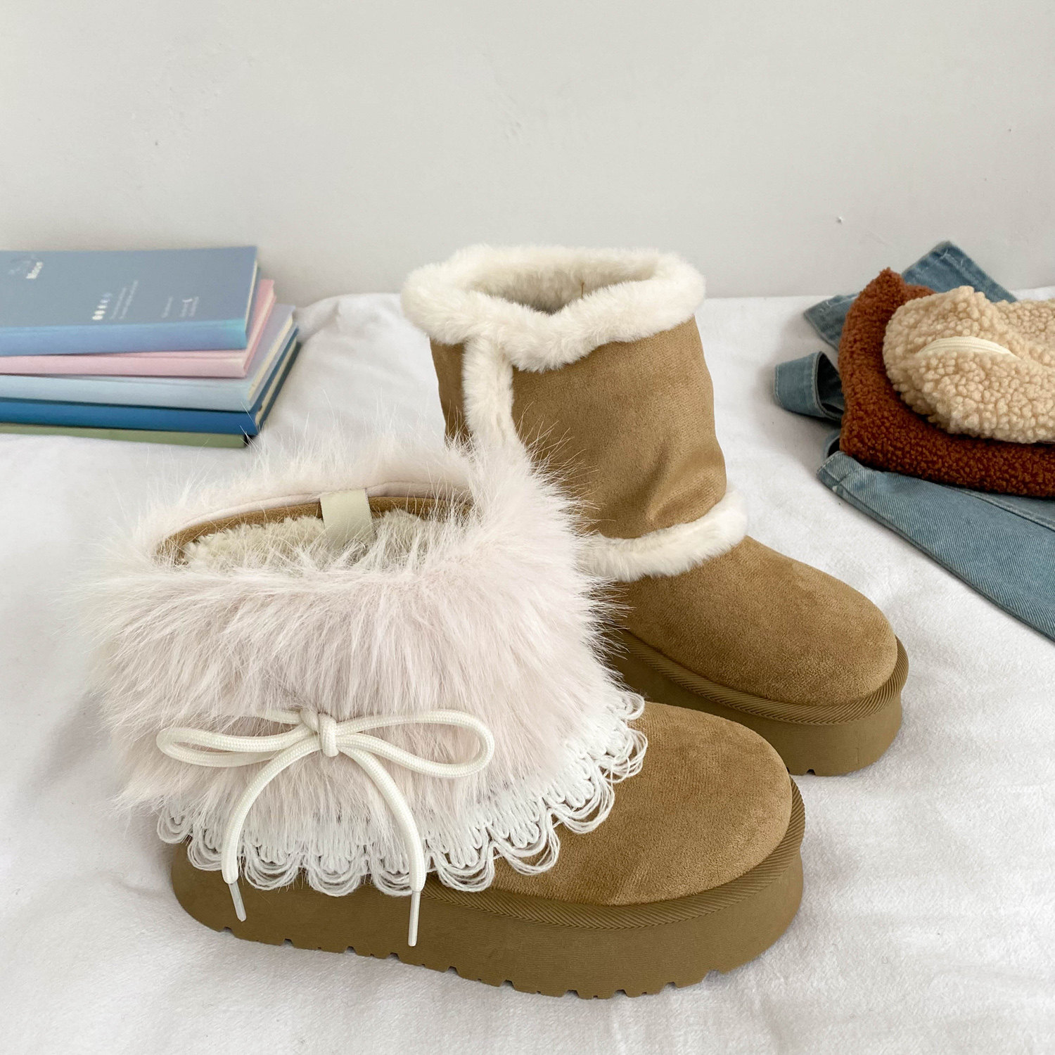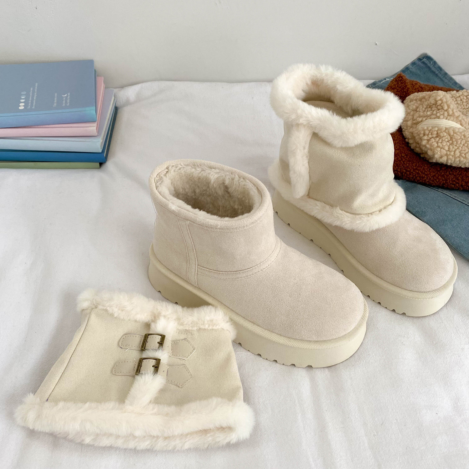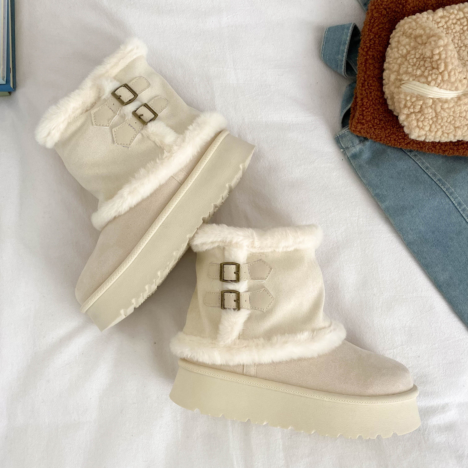 聖誕帽厚底雪地靴女冬季保暖原創小衆加絨加厚短靴百搭費爾島棉鞋