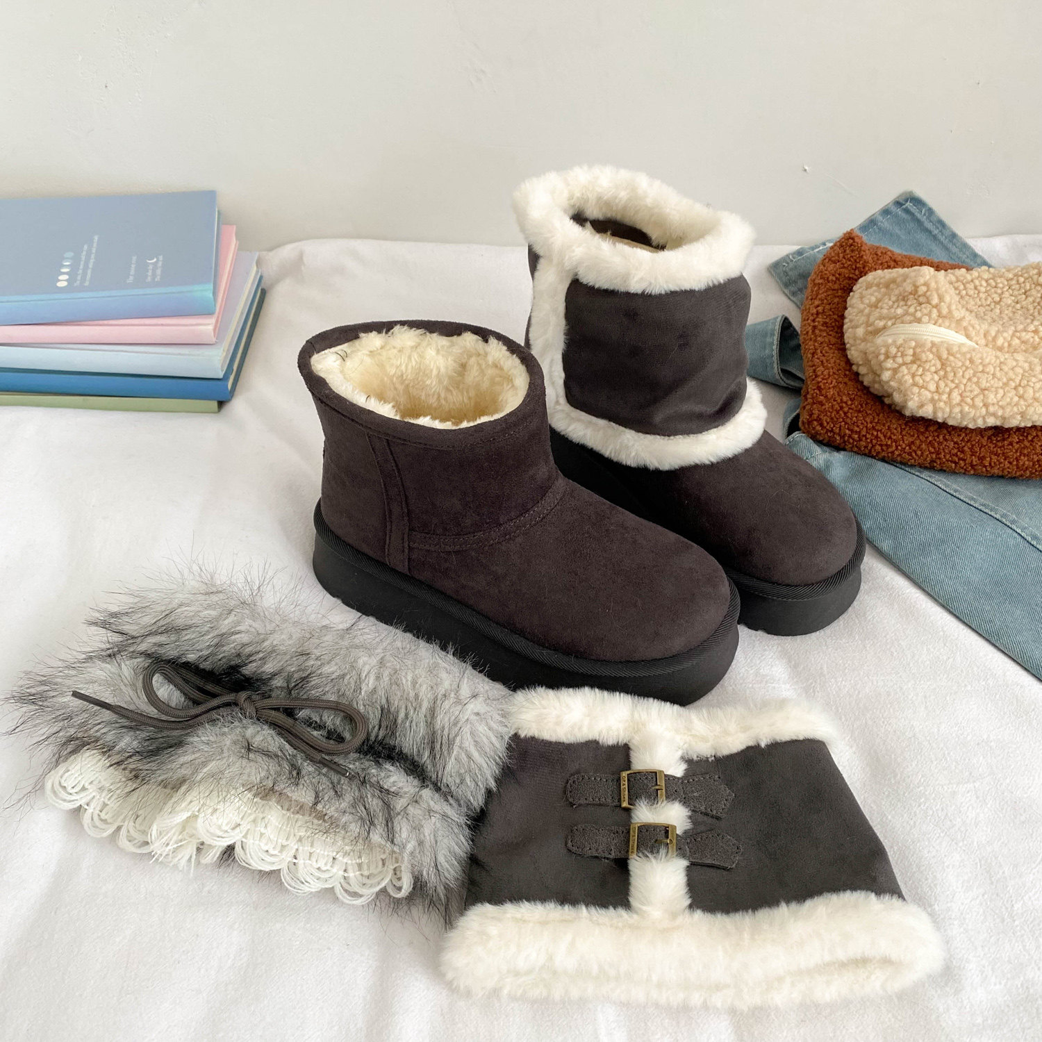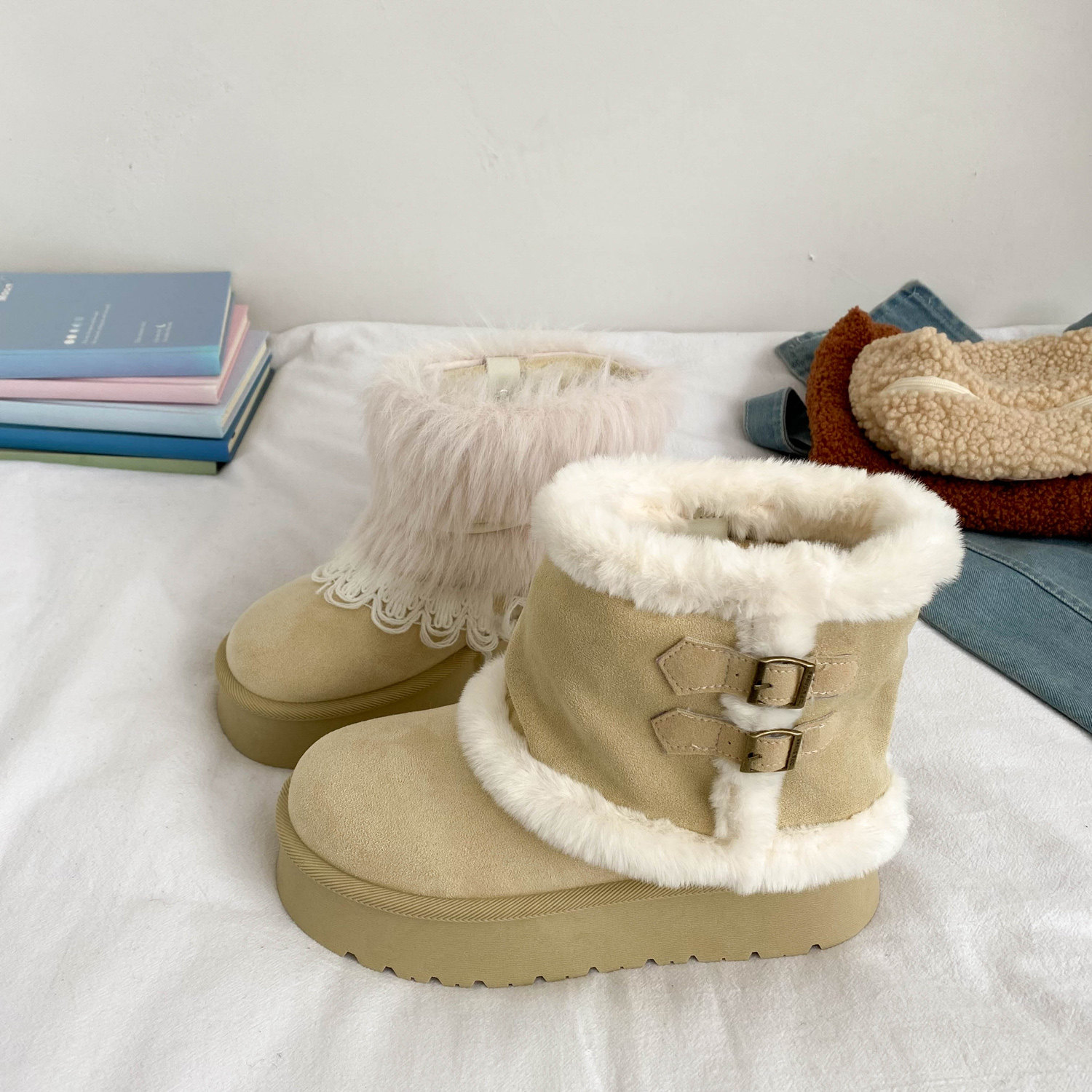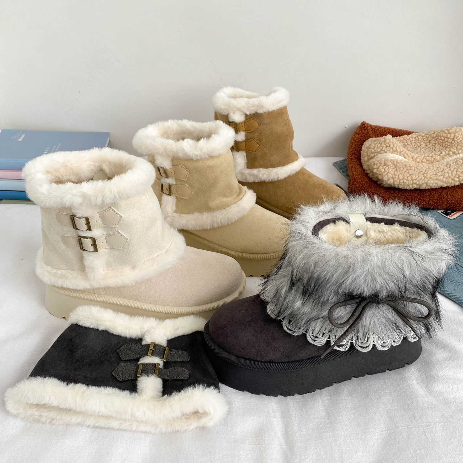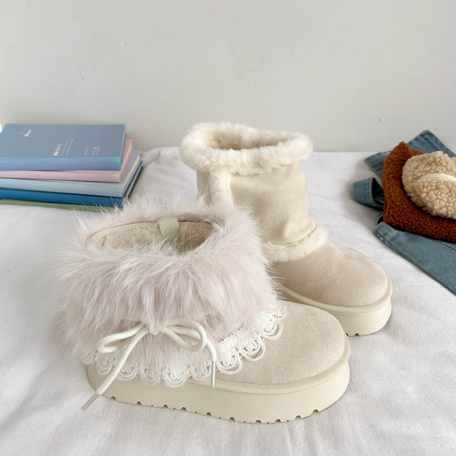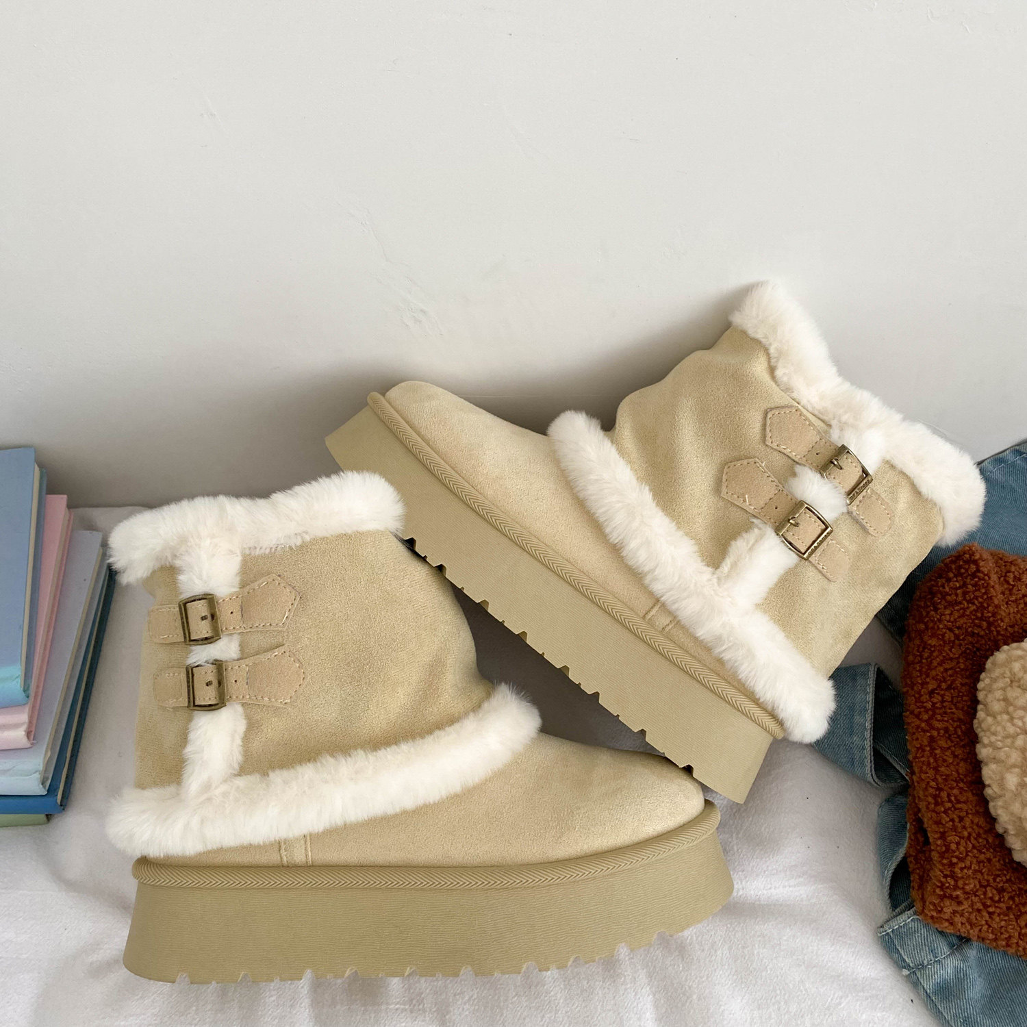 聖誕帽厚底雪地靴女冬季保暖原創小衆加絨加厚短靴百搭費爾島棉鞋