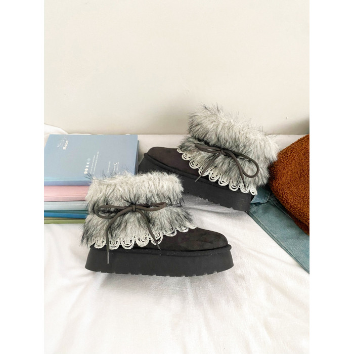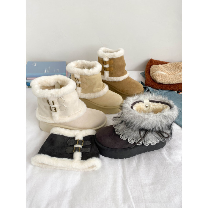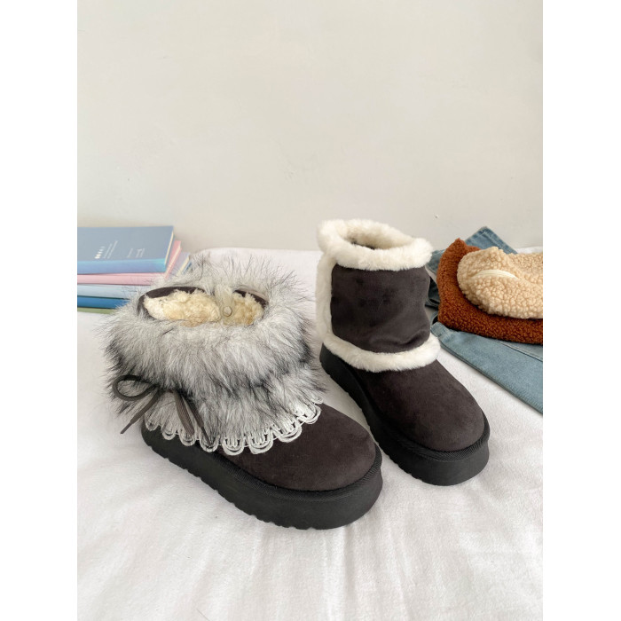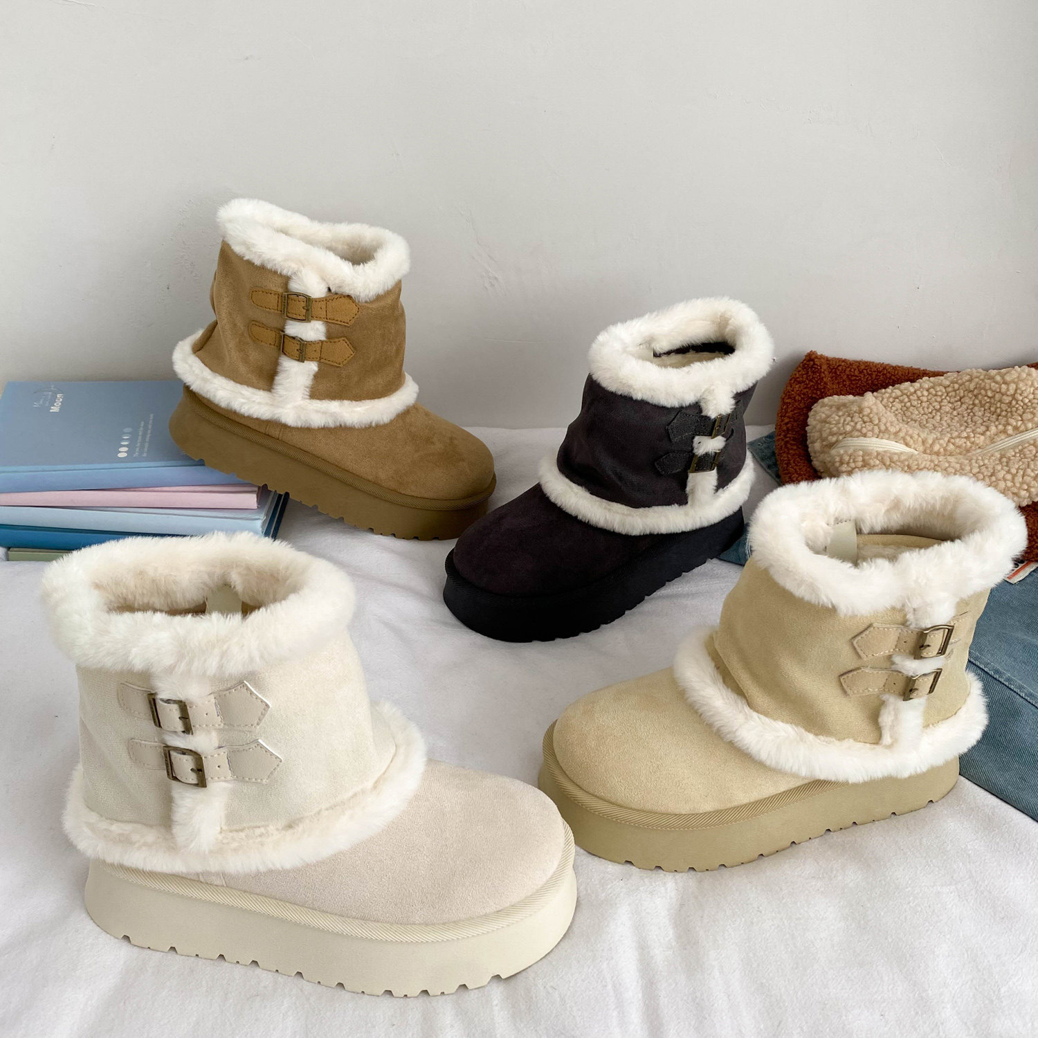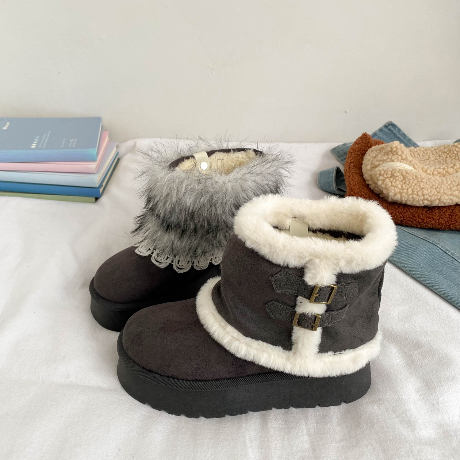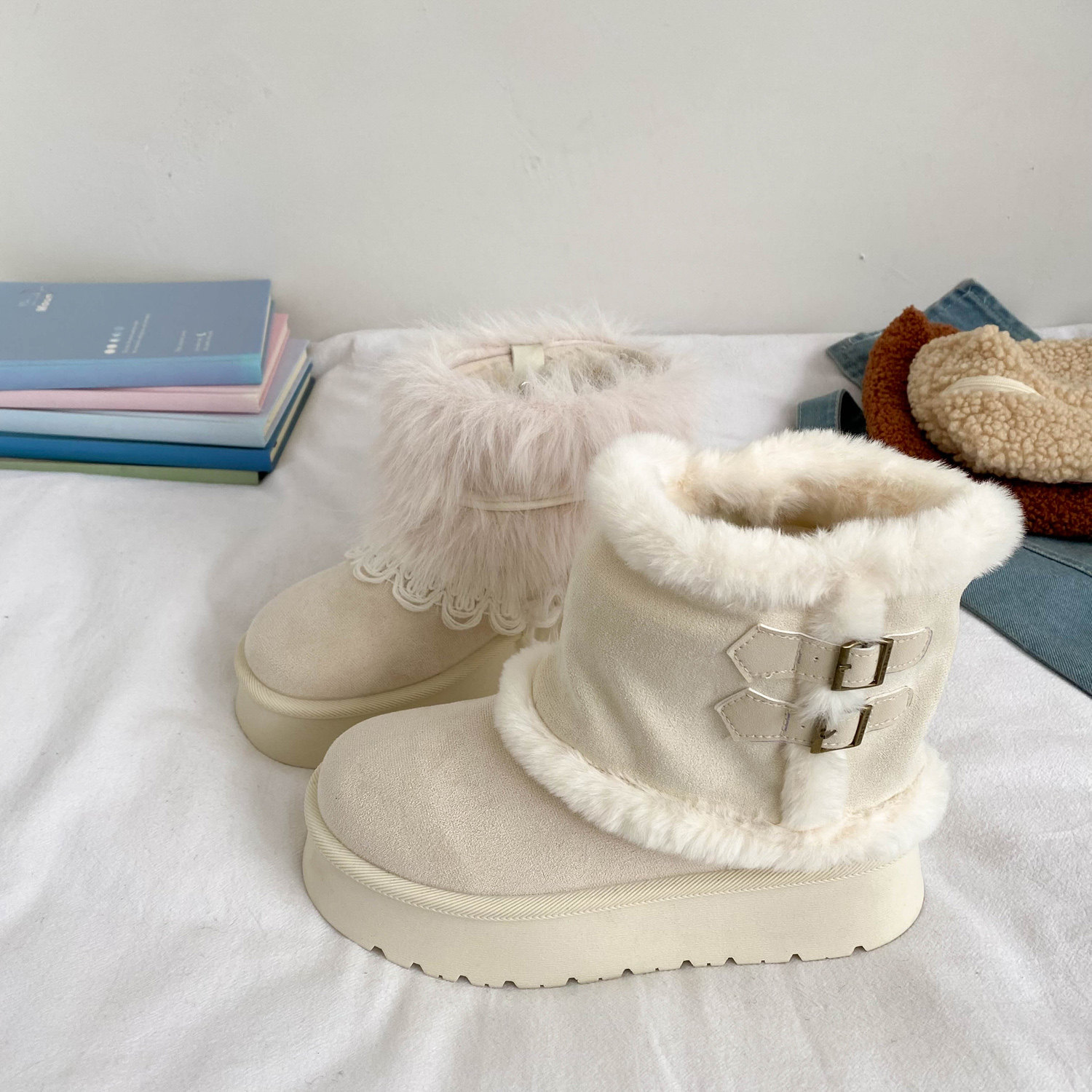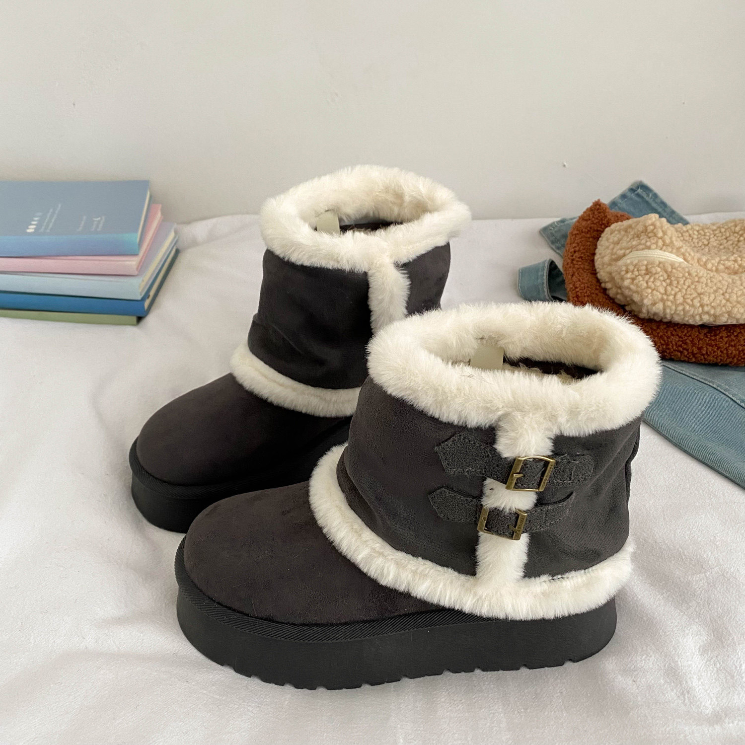 聖誕帽厚底雪地靴女冬季保暖原創小衆加絨加厚短靴百搭費爾島棉鞋