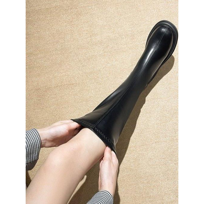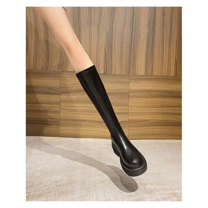 平口長靴女2025新款小腿圍長筒靴包腿瘦瘦靴厚底騎士靴百搭靴子女