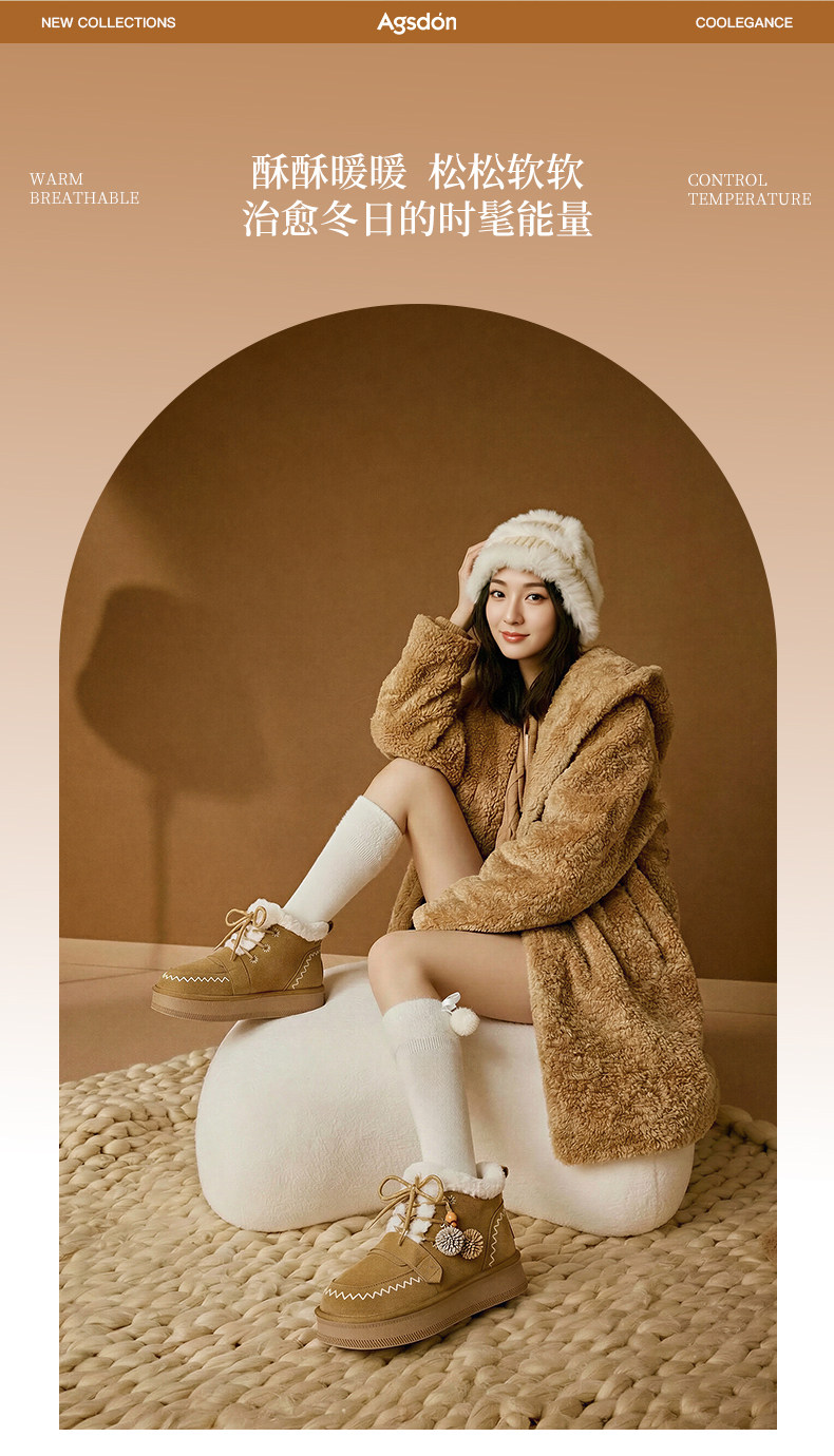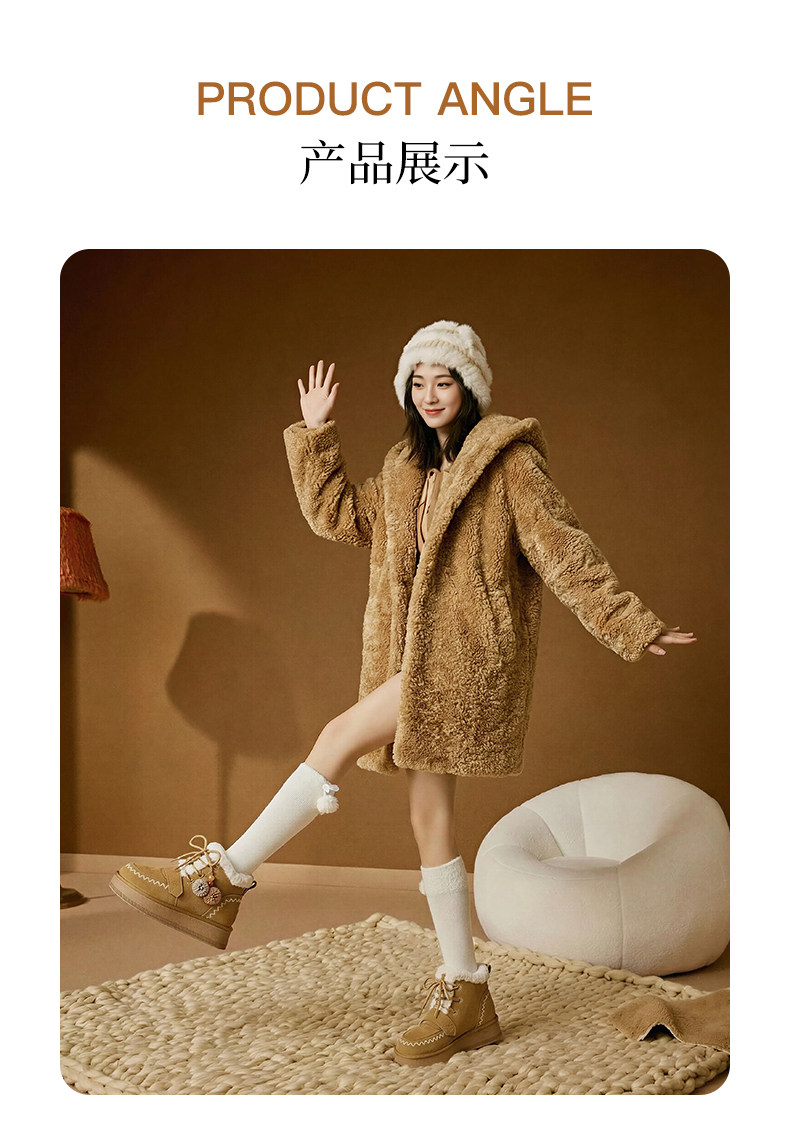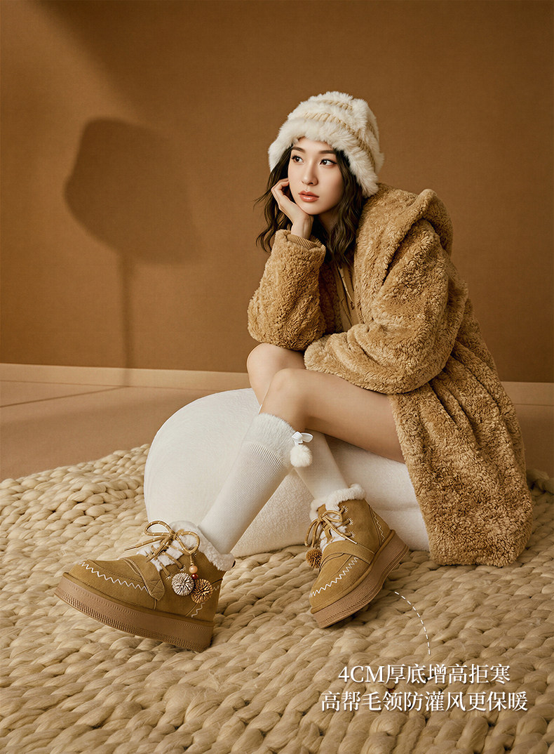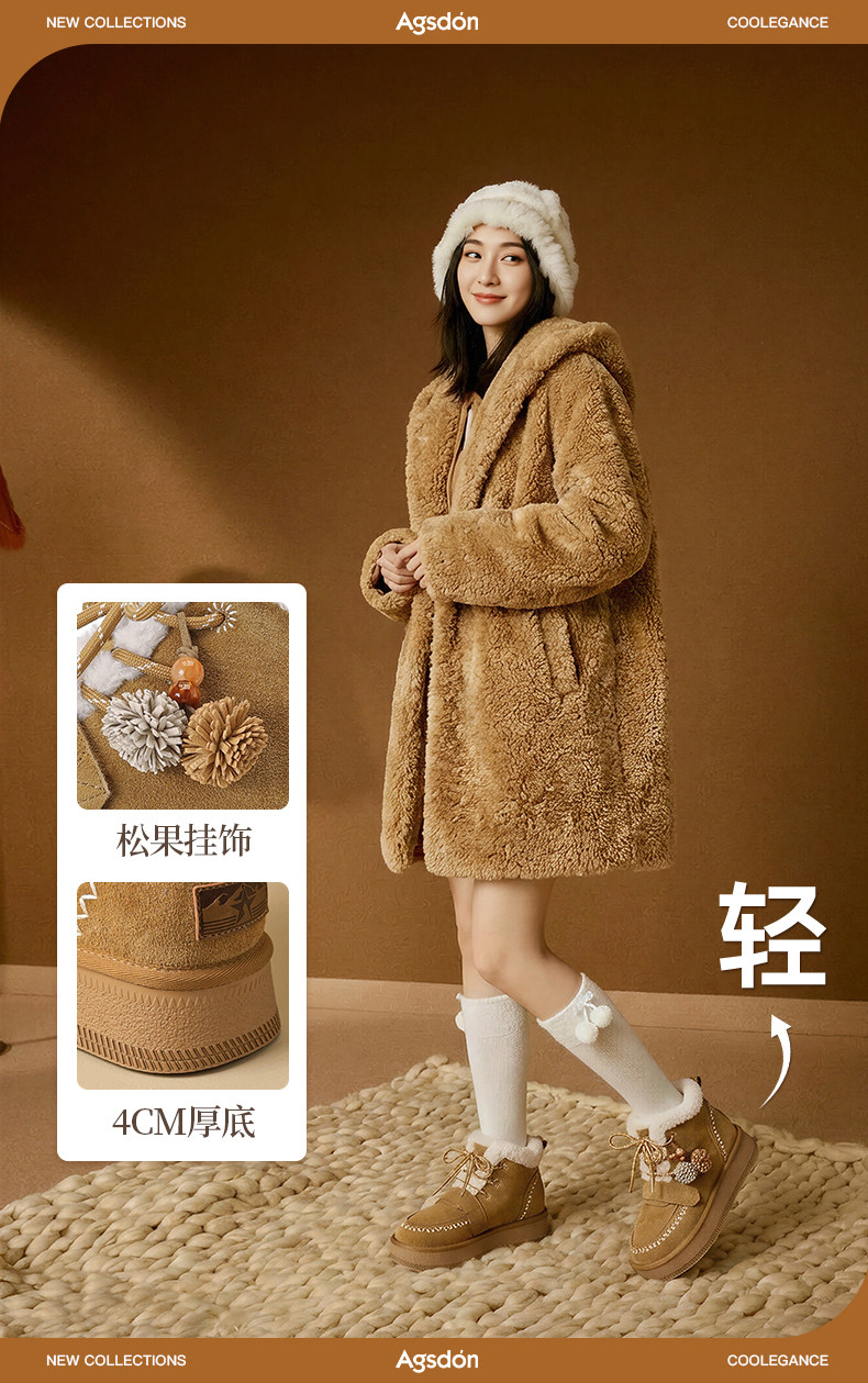 奧古獅登厚底防水防滑雪地靴女款2025新款冬季女鞋加厚棉鞋毛毛靴