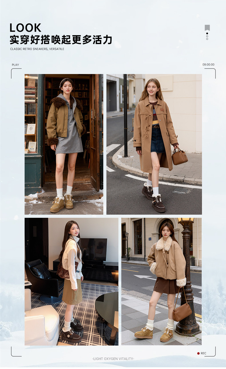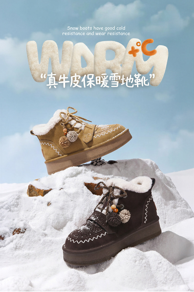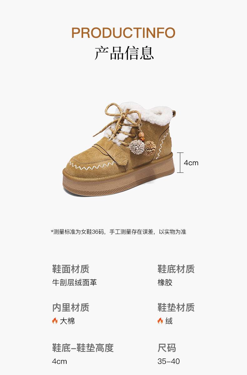 奧古獅登厚底防水防滑雪地靴女款2025新款冬季女鞋加厚棉鞋毛毛靴