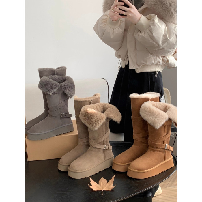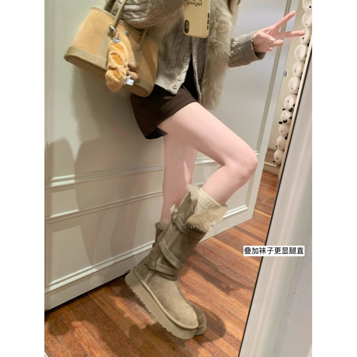 厚底灰色雪地靴女2026冬季新款長筒加絨加厚保暖高筒靴東北大棉鞋